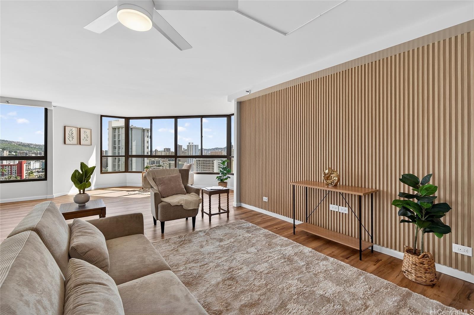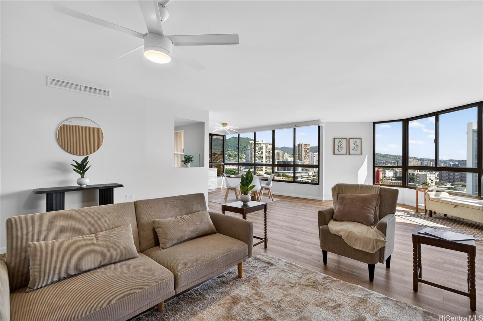 美しく、新しく改装・改修された高層階の住居。息をのむような180度の眺望と優れた間取りを備えています。 この明るく広々とした住戸は、モダンな仕上げが施され、採光・眺望・快適性を最大限に高める設計となっています。 屋根付き駐車スペース2台分に加え、追加の収納スペースもご利用いただけます。非常に珍しく貴重な組み合わせです。 当ビルではリゾートスタイルのアメニティを提供しており、プール、ジャグジー、サウナ、充実したフィットネスセンター、パッティンググリーンなどを備えております。リラクゼーションとアクティブな生活の両方に最適です。 中心部に位置し、ダウンタウン・ホノルル、カカアコ、ワイキキ、ショッピング、飲食店、ビーチ、高速道路へのアクセスが便利です。 ホノルルで最も便利なロケーションの一つに位置する、入居可能な高層階ユニットを所有する絶好の機会です。 .