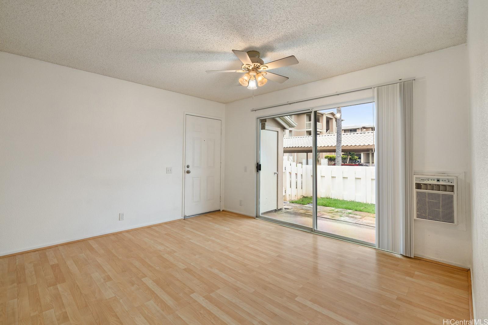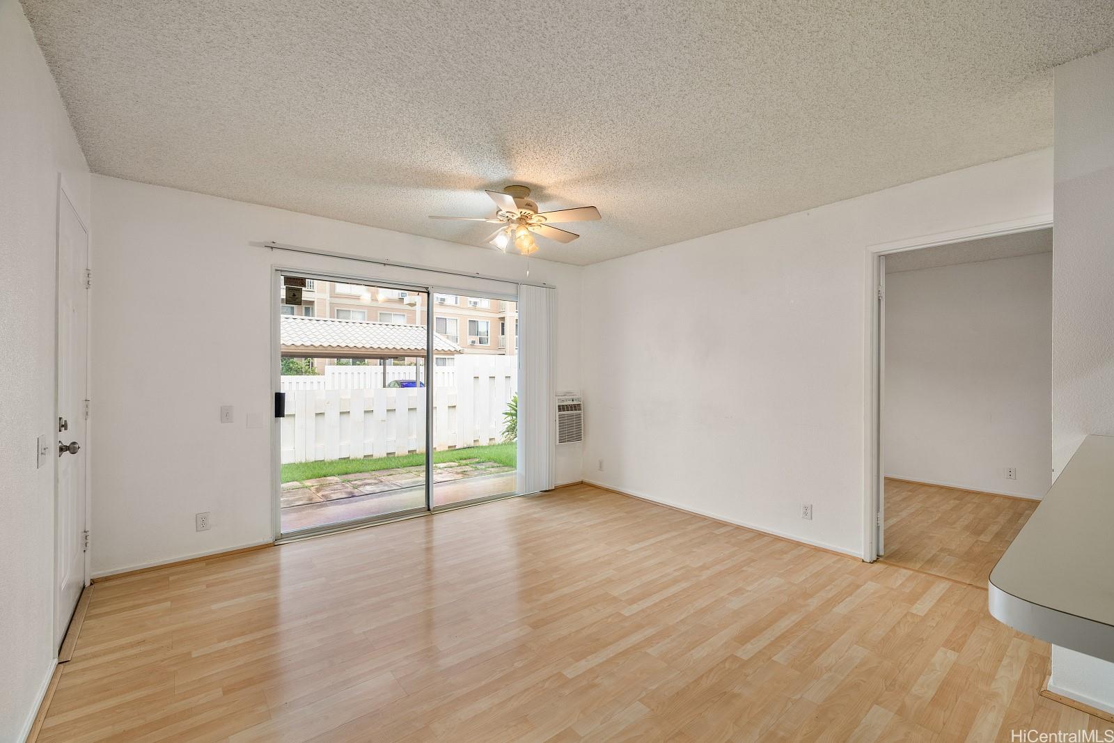 Welcome to Coronado in Ewa by Gentry! This well-maintained 1-bedroom, 1-bath residence features a private yard, providing additional outdoor space for a variety of uses. The single-level layout offers easy access with no interior or exterior stairs, along with an open living area that connects seamlessly to the outdoor space. The kitchen and living areas are designed for everyday functionality, and the bedroom is positioned for added separation and privacy. Additional features include in-unit laundry and assigned covered parking. Located in Ewa Beach with convenient access to shopping, dining, golf courses, and freeway connections. A great opportunity to own a property that offers private outdoor space and single-level living.