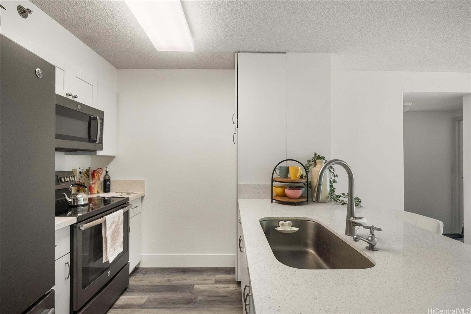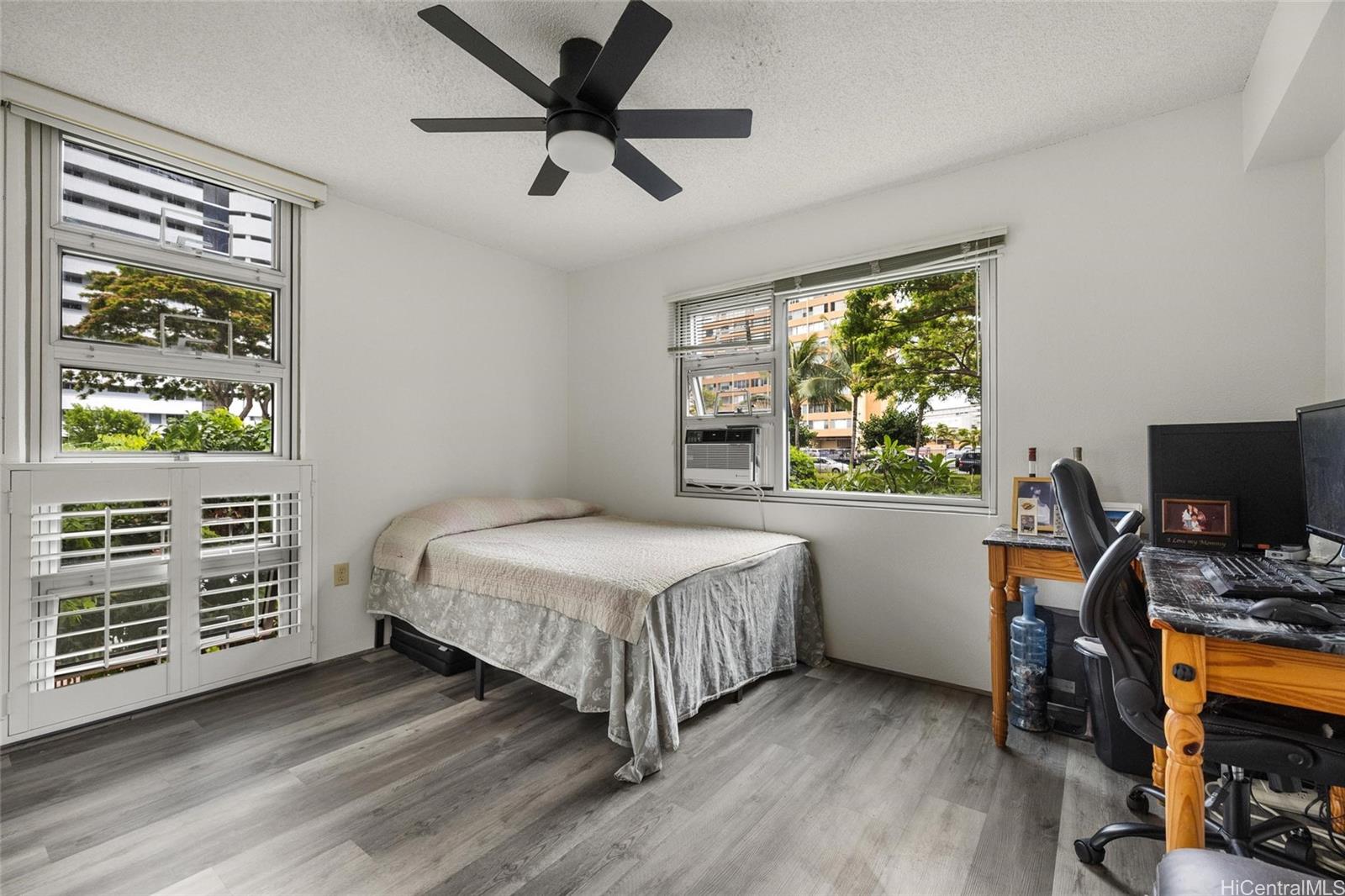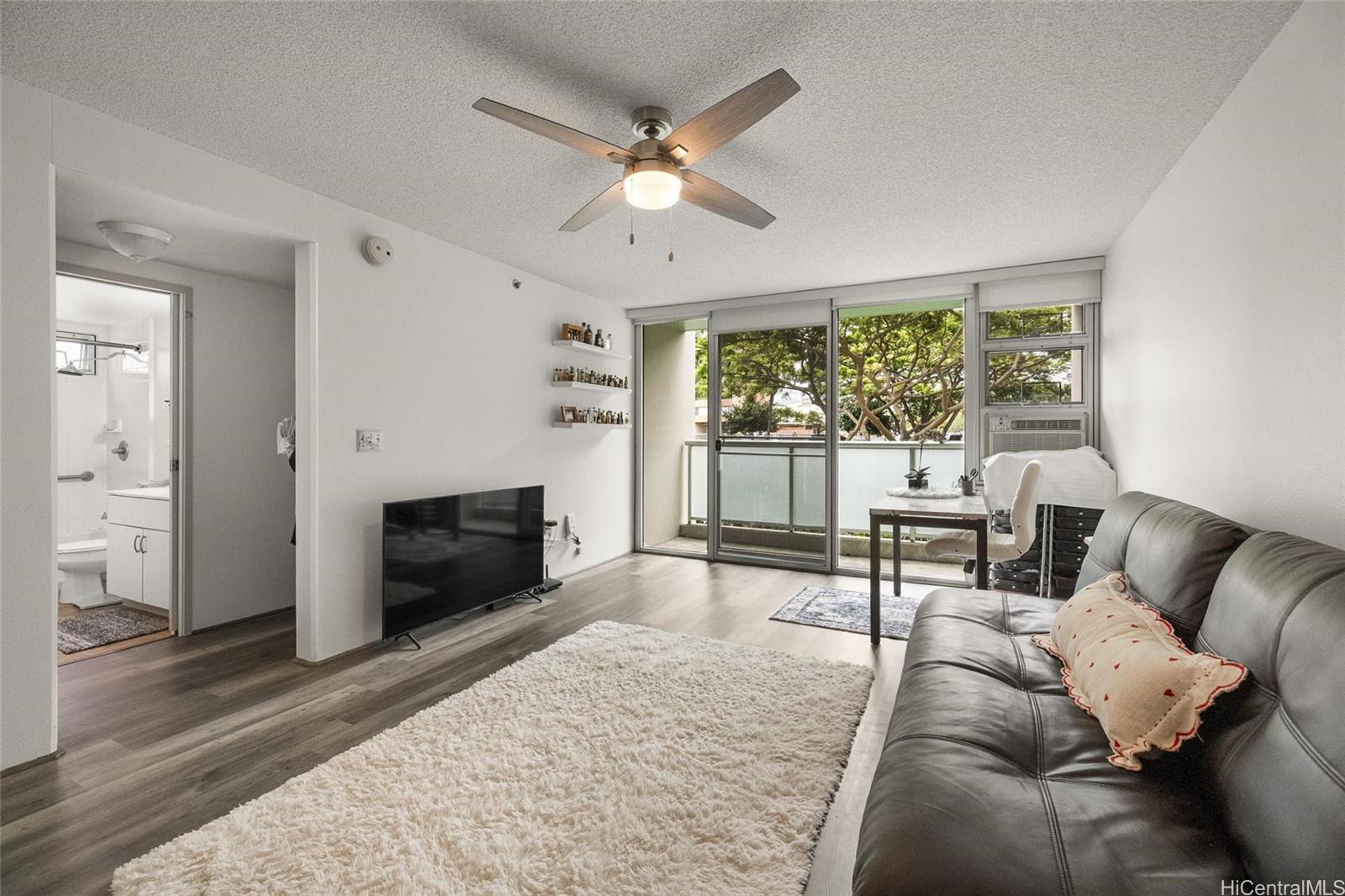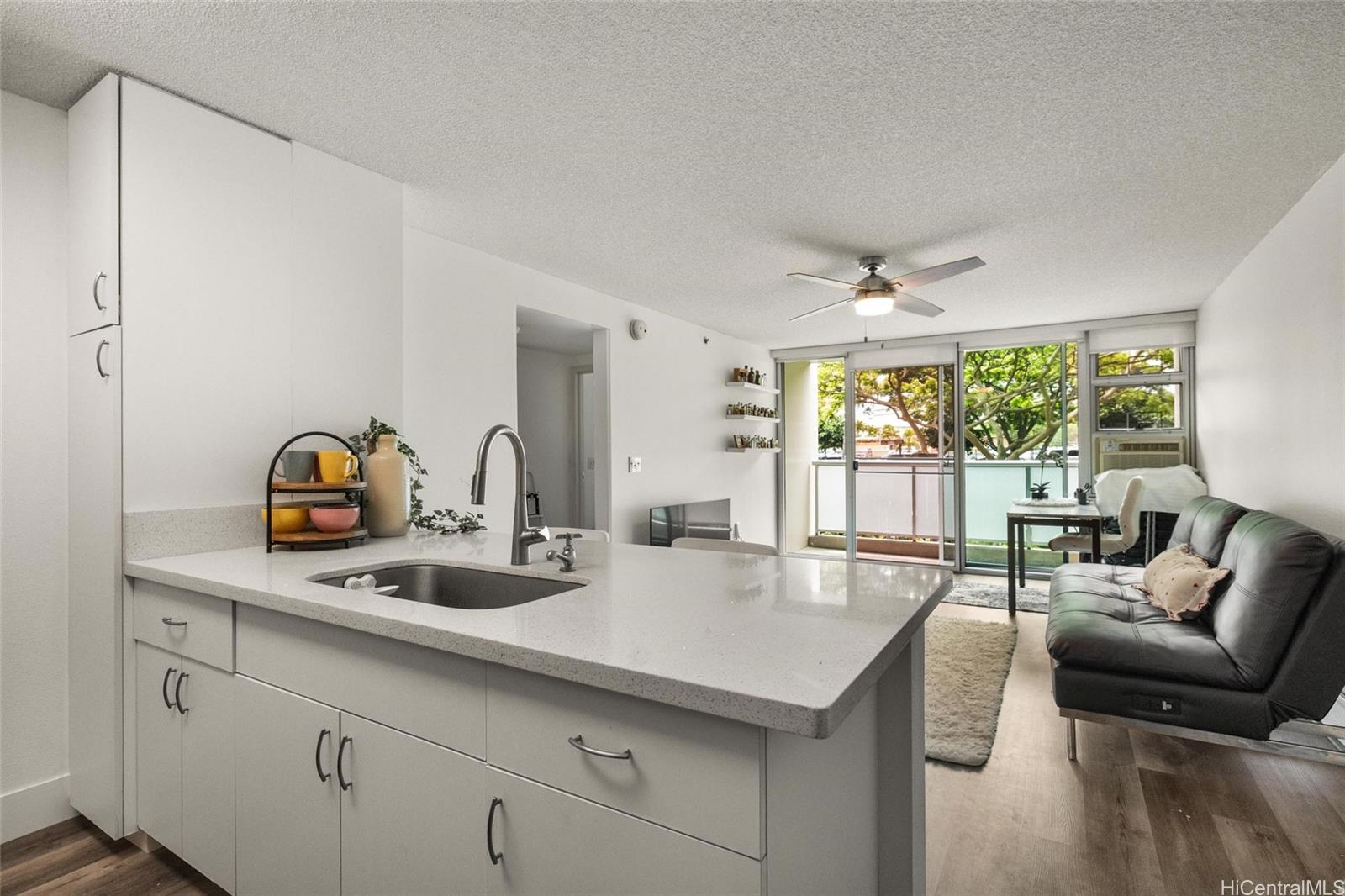 Welcome home to Country Club Village! This lovely home offers a two-bedroom, one-bathroom unit with two unassigned parking spaces and ample guest parking. The home features new Lux vinyl plank flooring, upgraded appliances, remodeled quartz countertops, window air conditioning, ceiling fans, a new water heater, and interior paint. Situated on the cooler side of the building, residents can appreciate the Country Club Village community’s swimming pool, BBQ area, recreation areas, walking paths, and dog park, as well as secured entry, a Security Guard, a Resident Manager, a trash chute, fire sprinklers, and a fence surrounding the property. Near shopping, schools, freeway, Tripler and Kaiser Hospital, and more nearby!