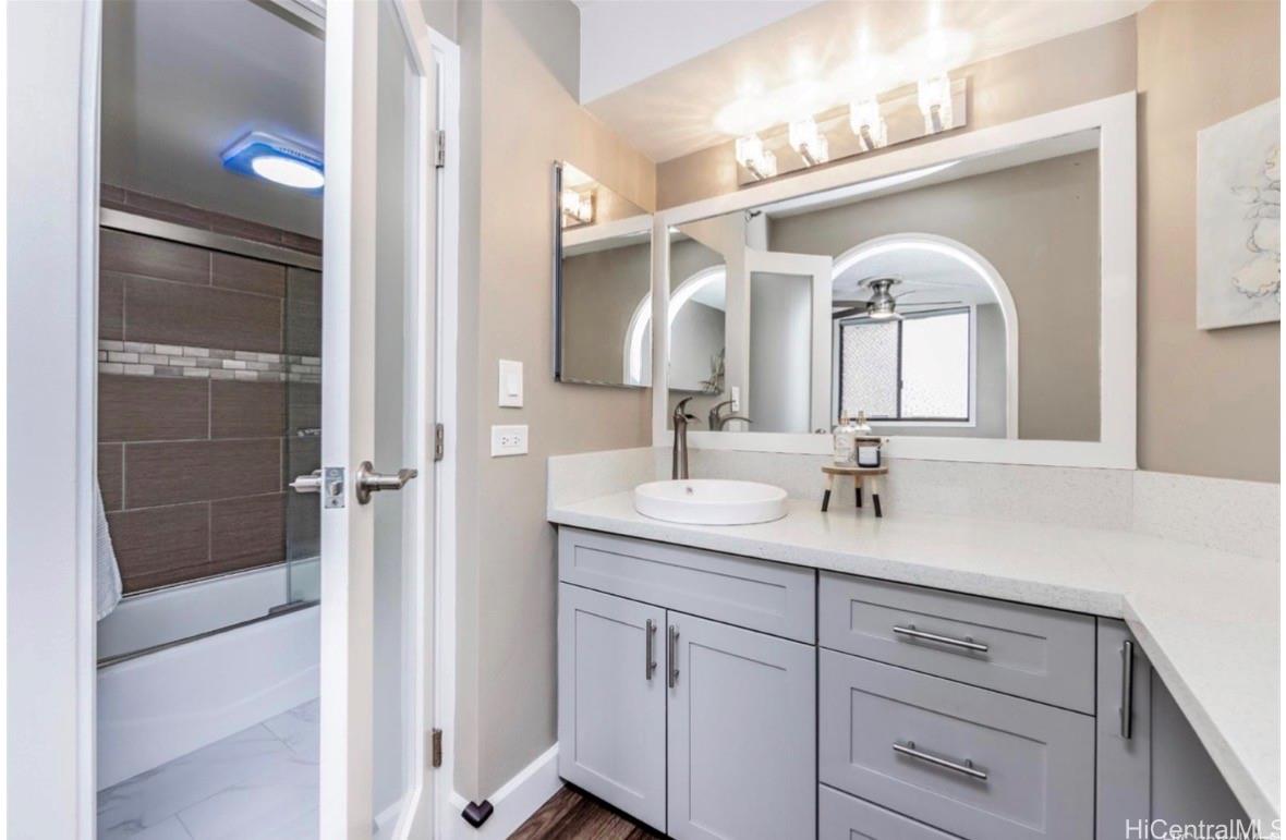 A peaceful island living at cul-de-sac, Country Club Vista offers only two units per floor each with breathtaking panoramic views of the Honolulu Country Club Golf Course. This high-floor 2-bedroom, 2-bath home has been beautifully redesigned with upgraded kitchen and baths, new flooring, modern lighting, and stylish finishes throughout. Sunlight flows through floor-to-ceiling windows, framing stunning green views and creating a bright, inviting space to call home.Special Feature: An assumable VA loan for qualified VA buyer (subject to VA and lender approval) at an INCREDIBLE 2.75% interest rate!Enjoy easy living with resort-style amenities: a large swimming pool, full-size tennis court, BBQ and outdoor lounge areas, a freshly renovated lobby, and secure covered parking. Conveniently located from Downtown Honolulu, Tripler, Ala Moana, schools, restaurants, and freeway access. This home offers both serenity and city convenience!
