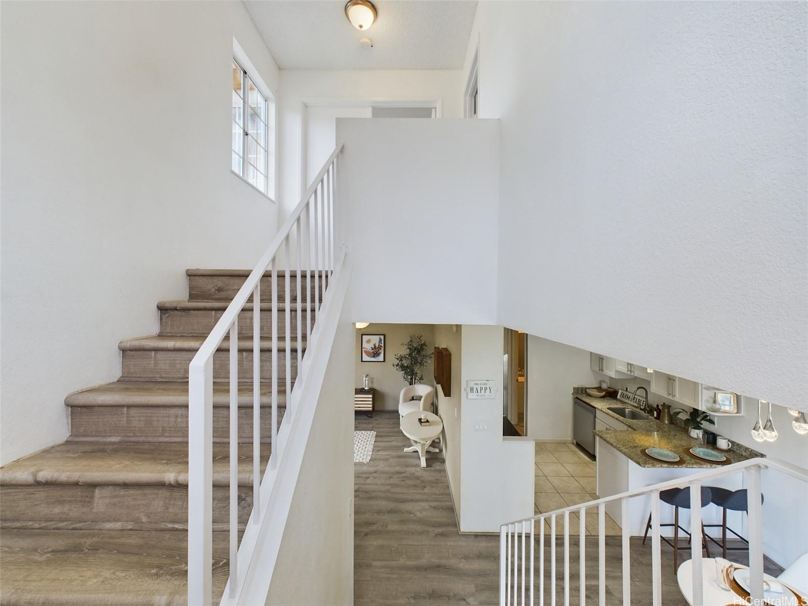 No neighbors above or below. Beautifully renovated. Corner unit AND located in a gated community?? This is the Crosspointe home you have been waiting for! Inside, a bright and open layout is complemented by upgraded flooring and refreshed kitchen cabinetry, creating a clean, modern feel throughout. The kitchen features a newer range, microwave, and dishwasher, with a functional design that connects seamlessly to the living and dining areas. A full-size washer and dryer add everyday convenience, while the covered lanai and private yard offer your own outdoor space for relaxing or hosting. Centrally located with easy freeway access, you stay connected to the entire island from here. Shopping, dining, parks, and schools are all just minutes away. Crosspointe’s gated community also features an EV charging station, pool, recreation area, and security patrol. Well-maintained and move-in ready, this corner unit stands out for its layout, privacy, and location within one of the area’s most desirable communities. Want to see what this home has to offer in person? Call your favorite Realtor to schedule a showing today!
