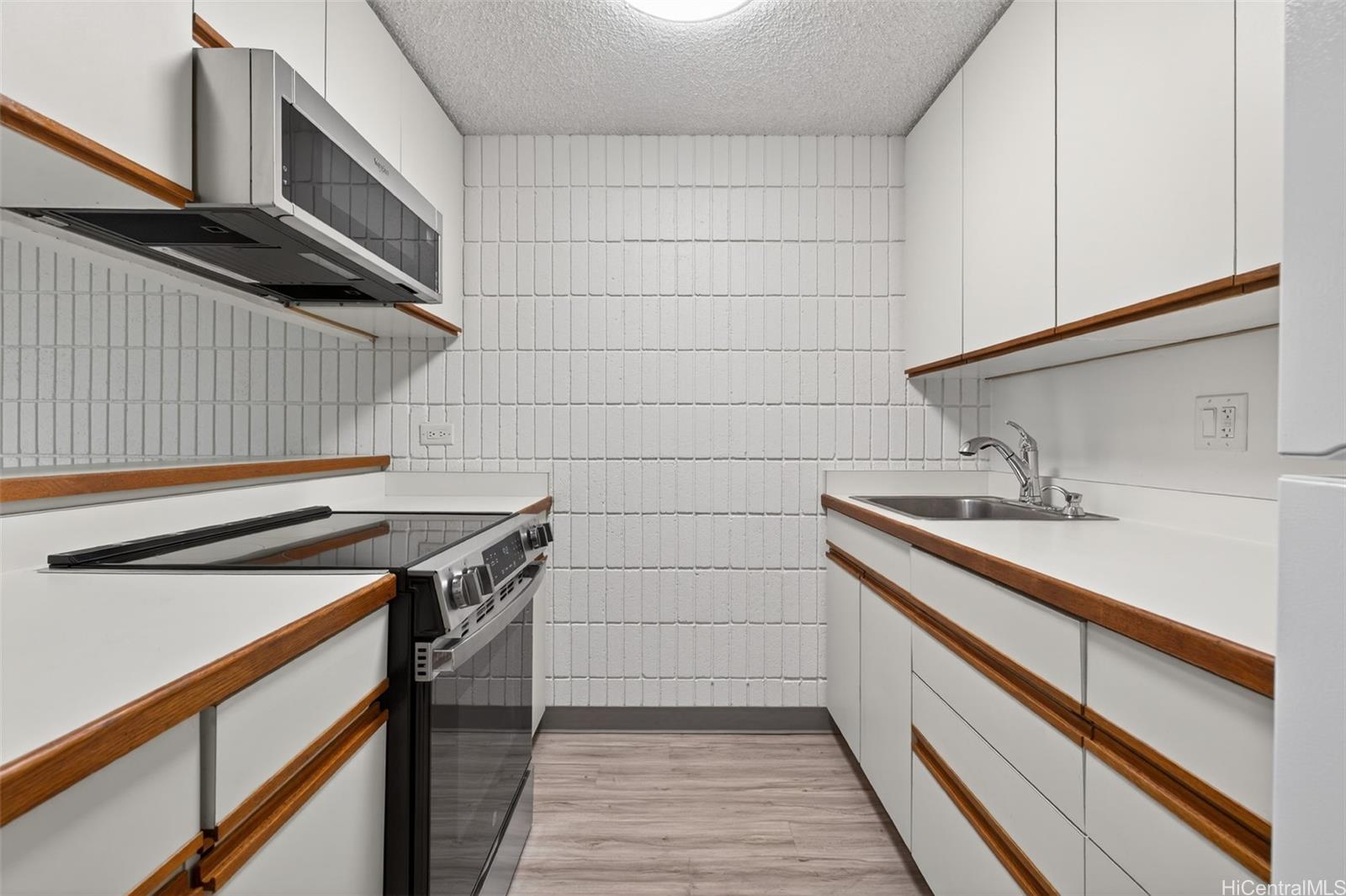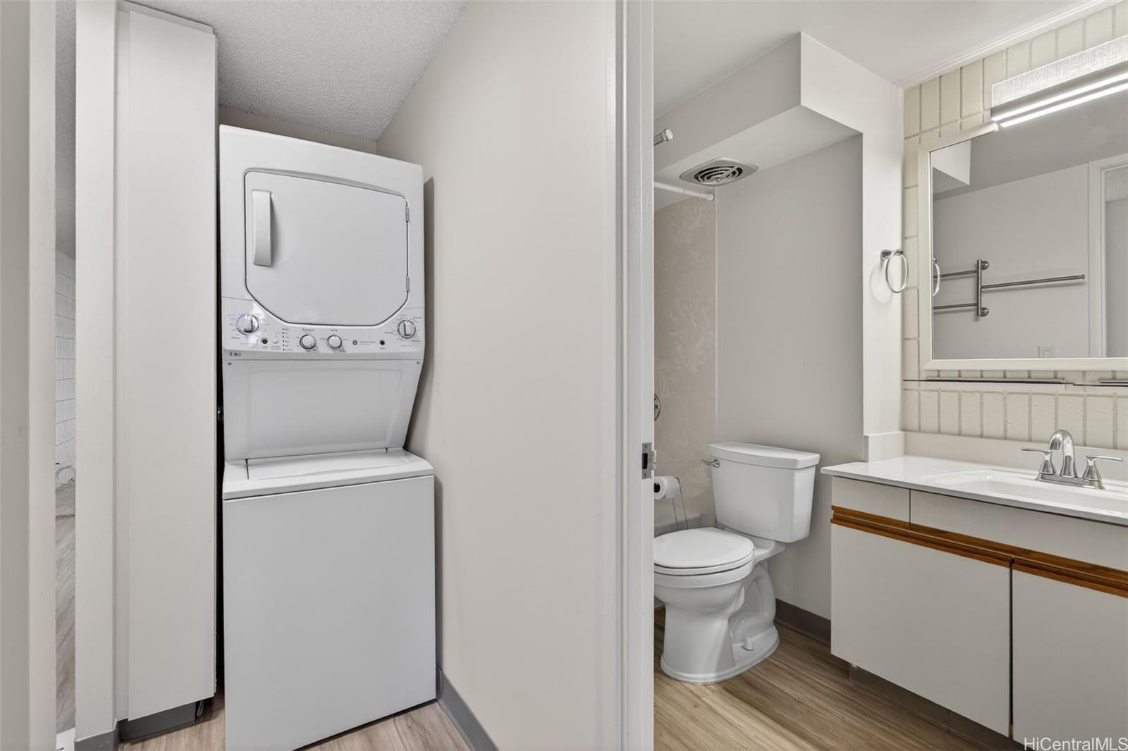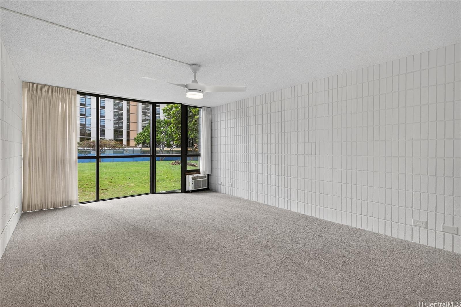 BACK ON THE MARKET. Turnkey and move-in ready. Unit has remained vacant since extensive renovation in late 2024, with new range/oven, refrigerator, microwave hood, stack washer-dryer, w/w stainmaster carpet/padding, vinyl flooring in the kitchen, hallway and bathroom. Interior walls and ceiling have been painted with new toggle light switches and safety outlets installed. All light fixtures have been replaced and ceiling fans installed in the living and bedroom wih LED overhead lights. The bathroom has been refreshed with new toilet, medicine cabinet, solid surface preformed sink basin, new faucet, shower head and towel racks. Shower walls are solid surface complemented with a steel tub. There is a secured covered parking stall. This 6-story boutique building is adjacent to Stadium Park and centrally located near Longs, Moiliili Public Library, Waikiki Health Clinic with restaurants and local eateris nearby. Come home to a relaxing view of a grassy tree-lined park. Please use Lianne Shimabukuro @ First American Title (Kapiolani Br. (808) 286-0680) for escrow services. Include AS IS Addendum and VOF with offer.