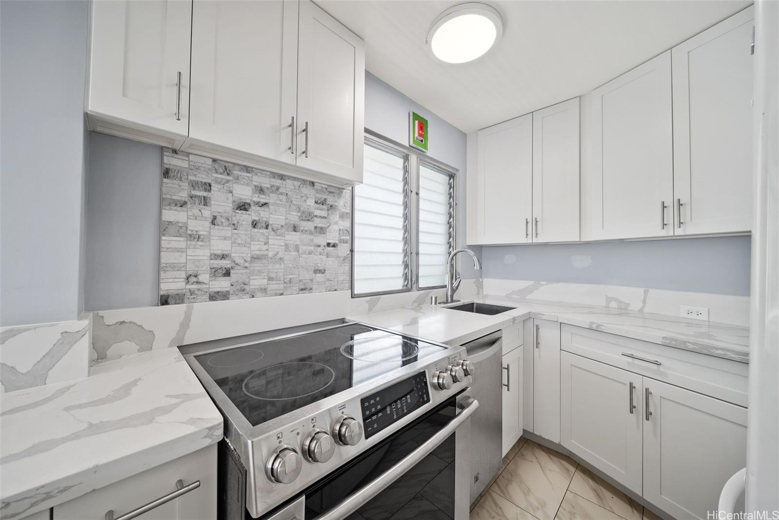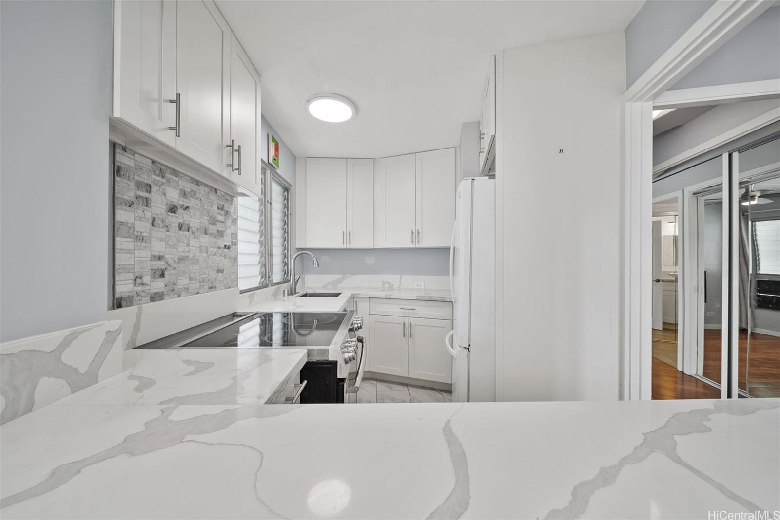 Welcome to Kalihi Gardens. A well maintained 2 bedroom, 1 bath unit offers ceramic tile flooring throughout, renova ...