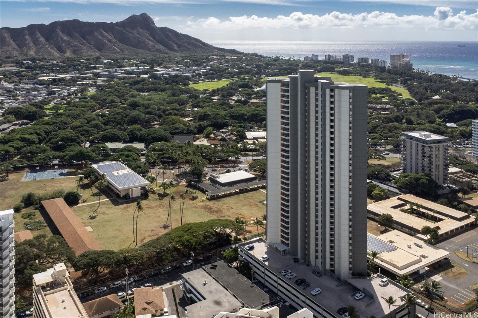 Located on the East side of Waikiki, just short walk away from beaches and parks, and with many restaurants and shops steps away, Diamond Head Vista is a well-maintained building. Enclosed lanai, this unit has two parking spaces. The maintenance fee covers electricity, basic cable and internet. First open house 12/21, 2-5 pm.