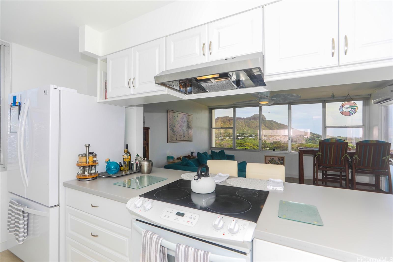 Welcome home to Diamond Head Vista! This rarely available and highly desirable corner unit boasts panoramic, unobstructed views of the iconic Diamond Head, the ocean, and the prestigious Gold Coast. Elegantly renovated, this 2-bed, 2-bath home features contemporary finishes including stylish laminate floors, high-end Dekton countertops, and split AC throughout. The expansive lanai invites you to relax with sunrise views, sunset skies, and refreshing cross breezes. Benefit from the ease of an in-unit washer and dryer, along with the rarity of two assigned parking stalls (one covered, one open) in the heart of Waikiki. Located on the peaceful, residential end of Waikiki, you’re just blocks away from world-famous beaches, restaurants, shopping, and the Honolulu Zoo. Diamond Head Vista is a secure building offering premium amenities including a swimming pool, guest parking, on-site resident manager, and 24-hour security. Don’t miss this opportunity to live in one of Waikiki’s most desirable buildings with some of the best views on O‘ahu!