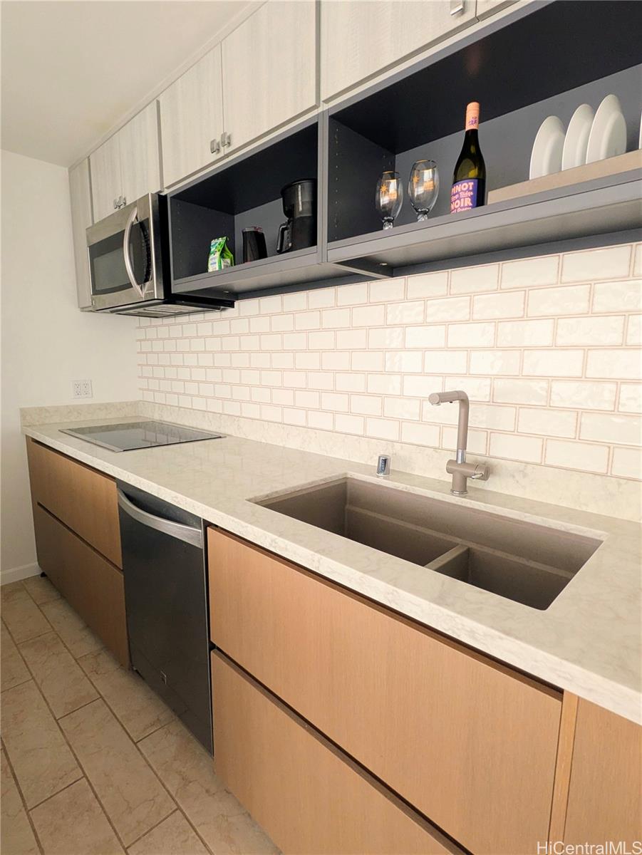 Perfectly renovated to modern Japanese style kitchen and bathroom, Introducing a beautifully renovated 1-bedroom, 1-bathroom condo at Discovery Bay. This unit, updated in 2019, showcases modern finishes and sleek appeal, and includes the rare convenience of an assigned parking stall—an exceptional feature in Waikiki. This near-complete ownership structure enhances the appeal, long-term equity, and financing flexibility. Perched in a secure, amenity-rich high-rise—complete with pool, sauna, fitness center, BBQ areas, and on-site resident management—the condo enjoys an ideal location close to Ala Moana Center, beaches, public transit, and world-class shopping and dining.The unit is 96.893% fee simple and 3.107% leasehold at $13.96/mo.There is an increase of 2% in maintenance fees for 2026. New Maintenance fee effective January 1, 2026 is $1,190/mo.