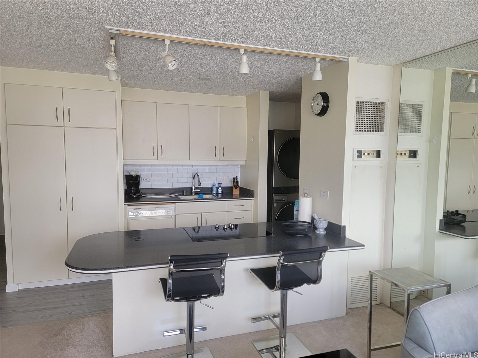 Nicely remodeled studio apartment with recently updated bathroom, flooring, new washer/dryer. Assigned parking 7-133. Discovery Bay is located on the west end of Waikiki, a 5 minute walk to Ala Moana Shopping Center and Magic Island. Across the street from the white sandy beaches of the famous Duke Kahamamoku Beach. Amenities: Security, BBQ’s, heated pool, sauna, gym, large jacuzzi & basketball hoop. At this time, Discovery Bay requires a 30 minimum monthly lease. Seller’s have already purchased the 96.893% fee for this unit. “The unit is 96.893% fee simple and 3.107% leasehold ($7.61/mo). The AOAO has right to purchase the remaining leased fee interest before the lease ends on 12/31/2039. The lease rent for the last 10 years of the lease is known, and the method to establish the price of the remaining leased fee interest has been agreed upon”. See Discovery Bay’s website.