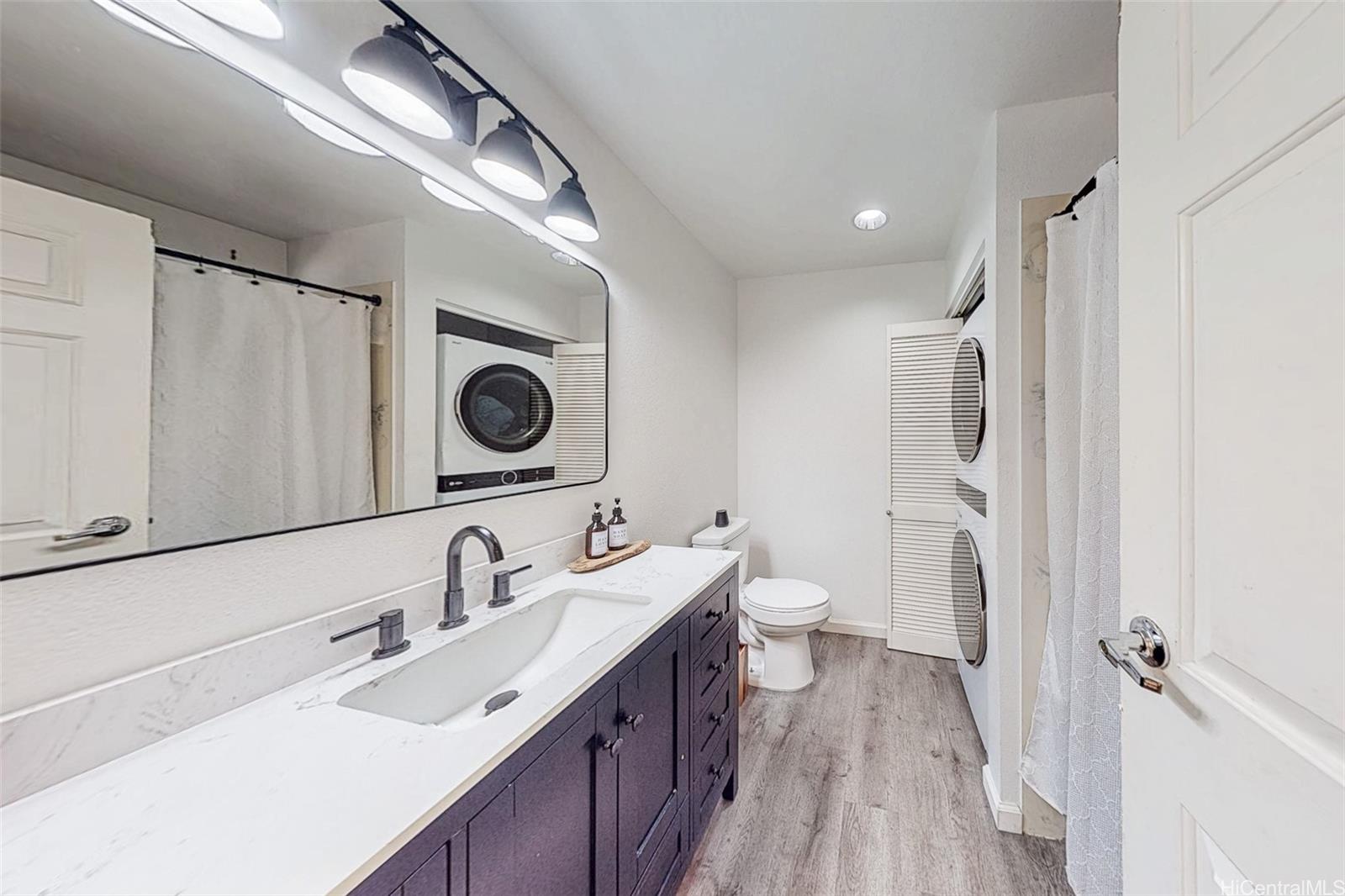 OPEN HOUSE on SUN, March 1st from 2-5pm. SHORT SALE APPROVED Discover this bright 2-bed, 2-bath Mililani gem at Evergreen Terrace! Fall for the freshly upgraded kitchen featuring elegant soft close cabinets and a show-stopping custom penny tile floor – pure character underfoot. Host movie nightseffortlessly in the spacious living room, pre-wired for surround sound. Unwind morning or evening on your coveredlanai, soaking up those legendary cool Mililani breezes and lush views. Enjoy ultimate convenience with TWOassigned parking stalls – no more circling! Dive into the sparkling resort-style community pool just steps away.You’re perfectly positioned near schools, popular dining spots, and shopping hubs – urban convenience meetsisland serenity. This is your chance to own in the sought-after Evergreen Terrace! Embrace low-maintenance livingwrapped in style and comfort. Schedule your showing today, your Mililani haven is waiting!
