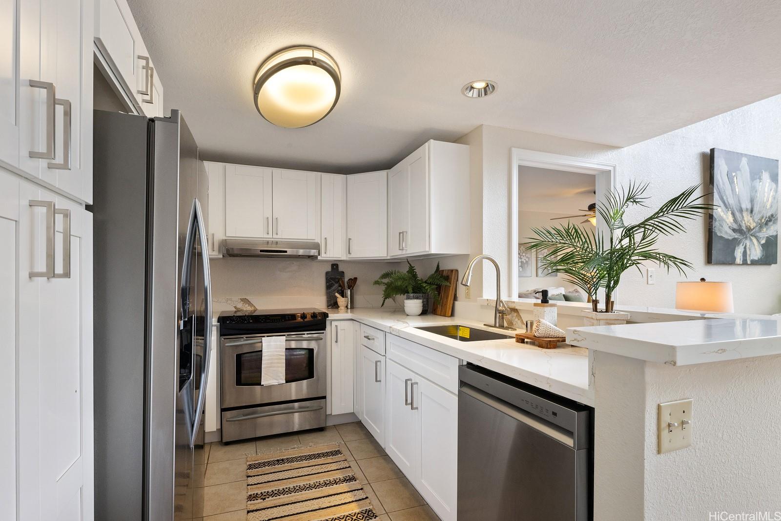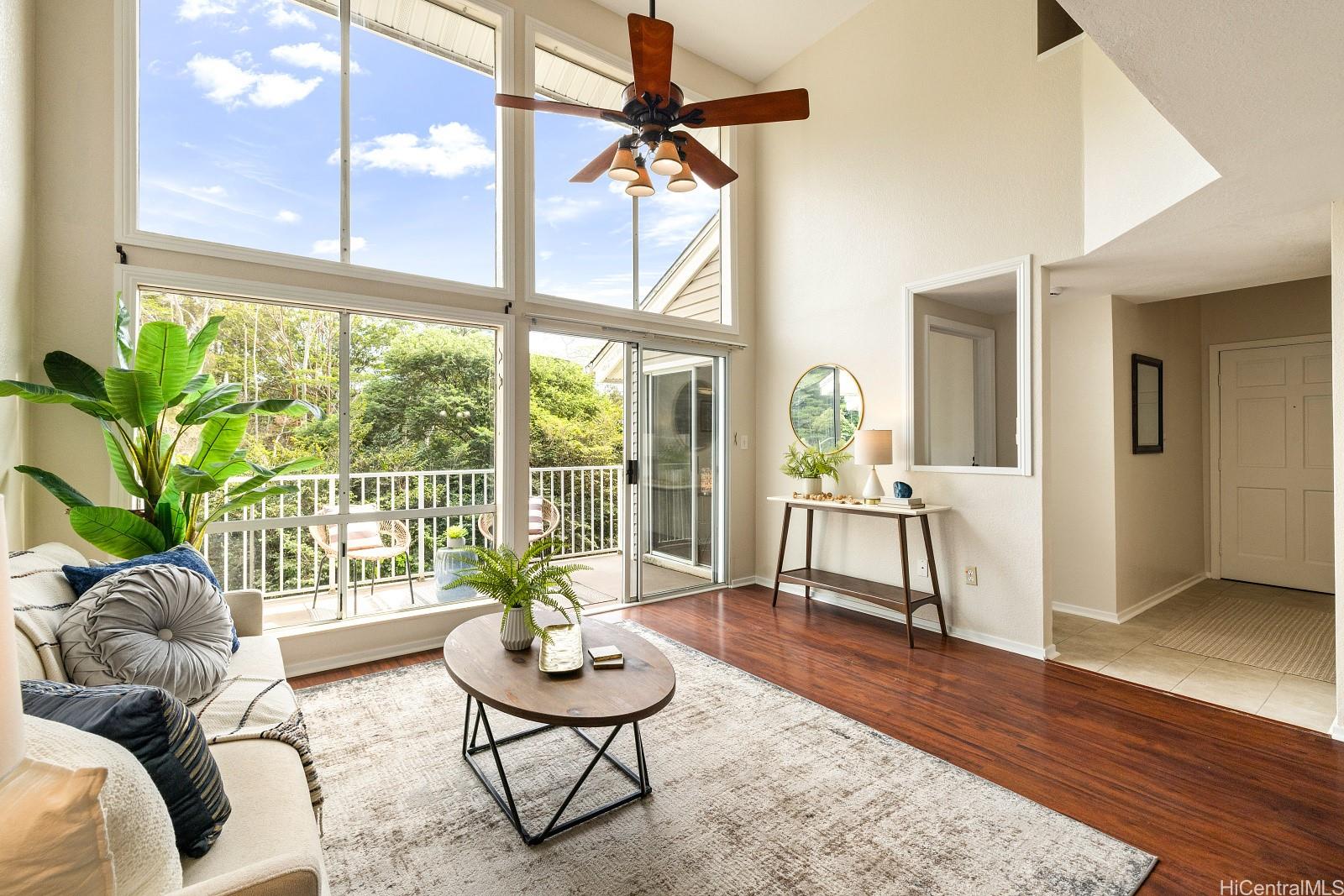 This updated 3-bedroom, 2 1/2-bath townhome offers nearly 1,300 sq. ft. of living space plus a private lanai for outdoor enjoyment. The interior features fresh paint, new waterproof luxury vinyl flooring in all bedrooms, and new kitchen and bathroom cabinets with Quartz countertops. Move-in ready and easy to maintain, this home has no carpet, durable finishes, and an open layout that provides plenty of space and functionality. Two parking stalls and extra storage add to your everyday convenience. Residents can enjoy community amenities such as a pool, hot tub, and BBQ area, all within the peaceful Waikalani community. Conveniently located near the freeway, and close to the North Shore.