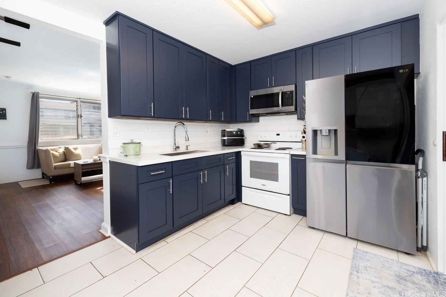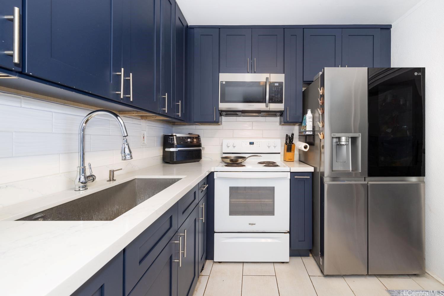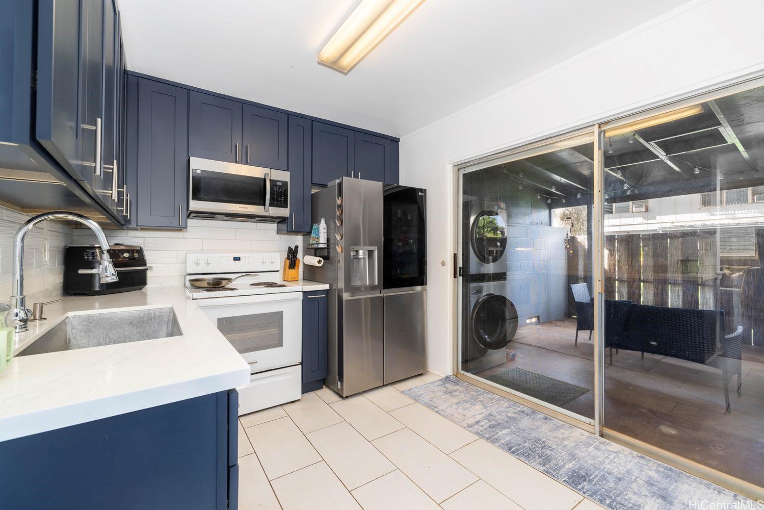 Beautifully maintained 2-bedroom, 1-bathroom townhome in desirable Ewa Beach, offered at an attractive price point and excellent value for the area with low HOA fees. This move-in-ready home features a bright, open layout with seamless flow between the living, dining, and kitchen areas—ideal for everyday living and entertaining. Enjoy generously sized bedrooms, including a spacious primary suite that offers a comfortable retreat with room to unwind. Upgrades include custom flooring throughout and charming wainscoting details that add warmth and character. Pride of ownership shines with clean, well-kept interiors and thoughtful finishes. The updated kitchen is equipped with a farm sink, tile backsplash, and a full-size washer and dryer for added convenience. Relax on the covered lanai—perfect for entertaining or additional storage. Pet-friendly community with a grassy area just behind the home. Conveniently located near shopping, dining, golf courses, beaches, and with easy access to main roadways. A fantastic opportunity for first-time buyers or an excellent investment opportunity for those looking to enter the market or expand their portfolio while enjoying the Ewa lifestyle.