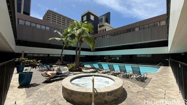 This unit is located at the Business District of Downtown Honolulu that is zoned as BMX-4 Business Mix Use Condo/Hotel-Rental Pool building. Short-term rentals are allowed according to the Building Management. Owner has option to join the Hotel Rental Pool of the building. The Fee is also available to purchase along with the closing of this unit. Bathroom has been recently upgraded. Furniture inside the unit comes with the sale. One assigned parking stall with brand new gate system. Features Central AC, 24-hour security. Closed to Hawaii Pacific University and all sorts of gourmet restaurants nearby. Walking distance to wet market in Chinatown . Bus-lines stop is right outside of the building. It is priced for absolutely “As Is” condition. Serious buyers are welcome to make any offer.