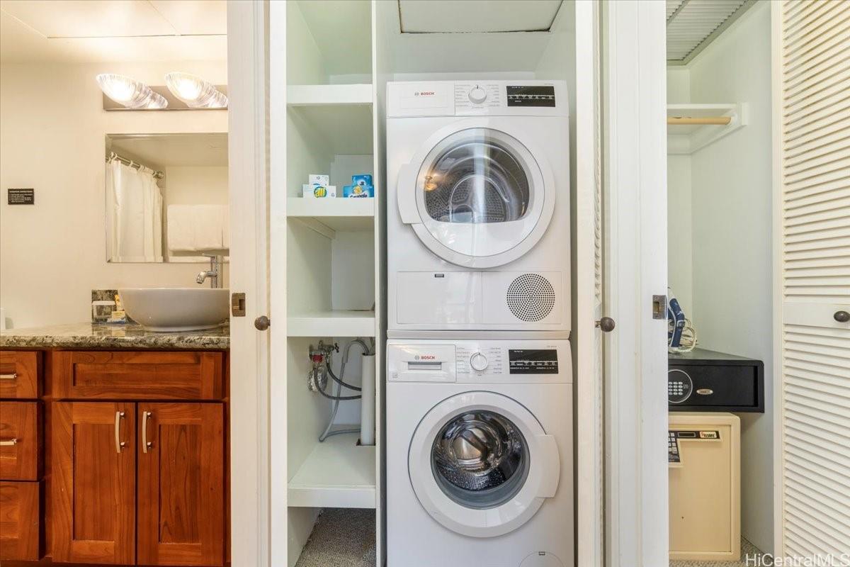 THE ONLY LEGAL SHORT-TERM DAILY RENTAL CONDO-HOTEL in the heart of the downtown Honolulu district. This tower suite largest 1-bedroom/1-bath floorplan offers a separate foyer entrance, floor-to-ceiling glass windows, upgraded full kitchen and bath, washer/dryer, central AC, and comes fully furnished including 1 assigned covered parking stall. Enjoy the high floor views of the Honolulu harbor, coastline, ocean and the brilliant colors of city lights. Great flexible mix use as rental and/or enjoy as a vacation or primary home and/or simply as a office living suite. Executive Centre is a reputable mixed use condo-hotel/office building conveniently located in short distances to offices, Hawaii Pacific University, eateries, art galleries, night market festivals, historic Chinatown, medical facilities, shopping centers, bus-lines, freeway access & many more essentials of the Honolulu’s Downtown district. Maintenance fee includes cable TV, internet, (hot) water, sewer, common area expenses and capital reserves.