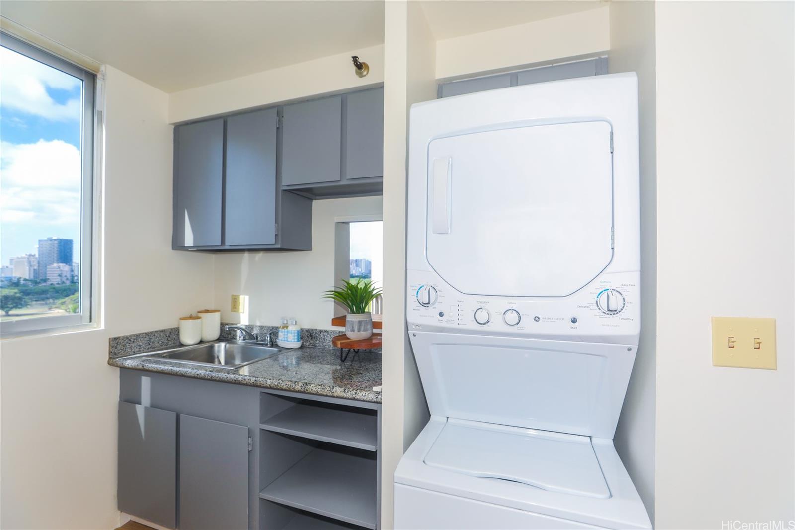Enjoy views of Diamond Head, Ala Wai Golf Course, and the Waikiki Skyline right from your lanai! Welcome to Fairway House, a secure and pet friendly building that provides an abundance of amenities like a swimming pool, spa, BBQ area, Dog park, and tennis court. Conveniently located in the heart of Honolulu you have access to all of what town has to offer. You are minutes from the Ala Moana area, Waikiki, UH Manoa, grocery stores, restaurants and more! This 2 bedroom 2 bath unit features new carpet throughout, fresh paint, and an in unit washer & dryer. Unique layout with both bedrooms having their own bathroom. Unit also comes with 1 parking stall that is partially covered.
