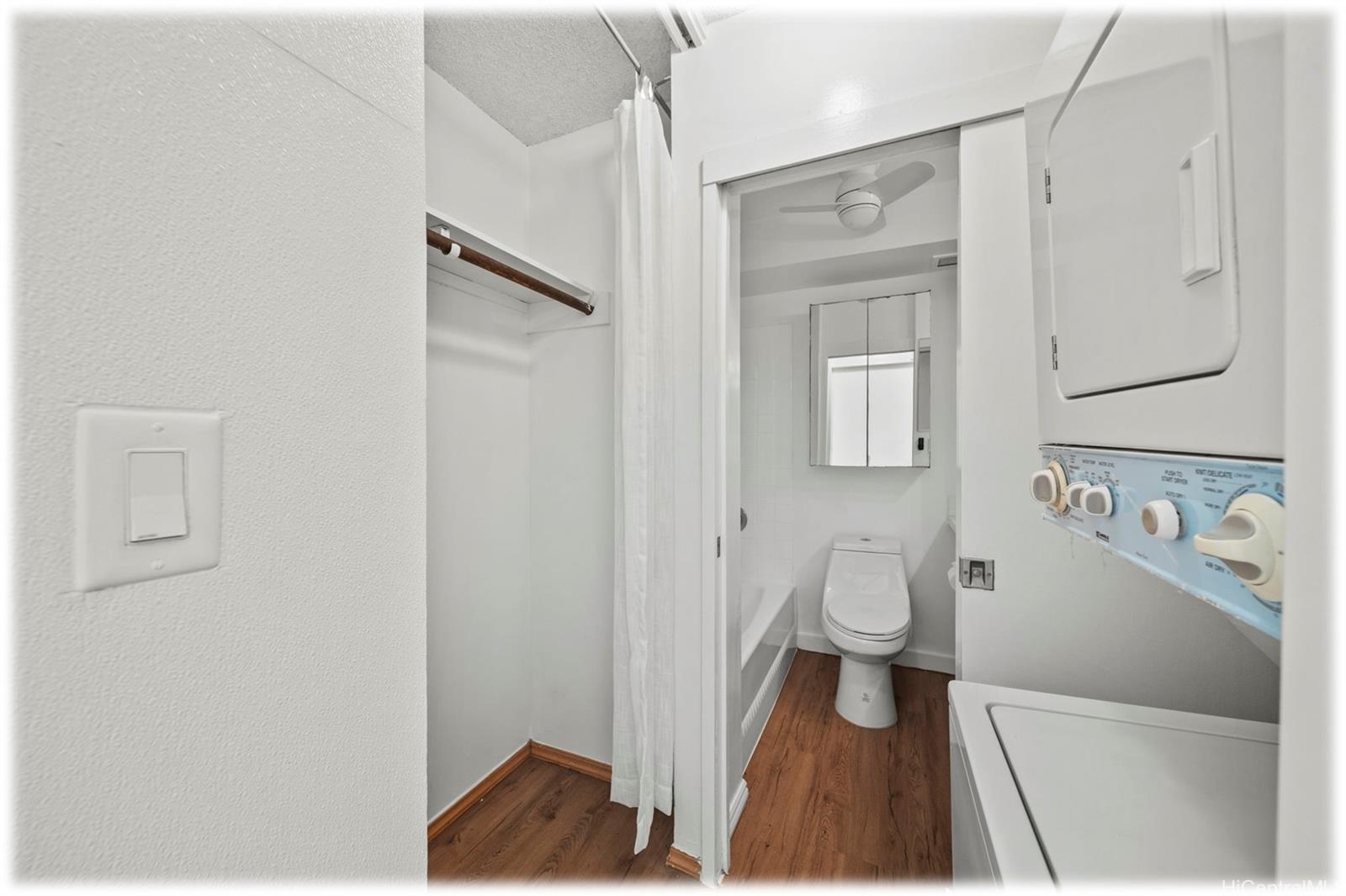 Studio Unit with Golf Course and Cityscape Views! Conveniently located in Waikiki’s coveted and secure Fairway Villa building, this 364sqft residence offers an upscale lifestyle with access to desirable amenities, such as a rooftop pool, firepit, BBQ, covered lounge areas, and a sauna. Situated on a high-floor, the sundrenched unit immediately charms with wood flooring, kitchen with stainless-steel appliances, in-unit washer and dryer, and a large living space with sliding glass doors to the private balcony. The balcony comes with motorized storm shutters and remote control. Perfect for relaxation, the outdoor space boasts scenic views of the ocean, the golf course, and the glittering cityscape. Sized for versatility, the unit may be creatively arranged to accommodate both weekend entertaining and daily living. Set-up a cute bistro table for dining and create a media area with a wall storage unit. Other features include covered, assigned parking (secured), near shopping, restaurants, and much more! Call for a private tour! $109 for Special Assessment until the end of 2043 is for the completed waste waterline replacement project. $62 is for the cable and internet.