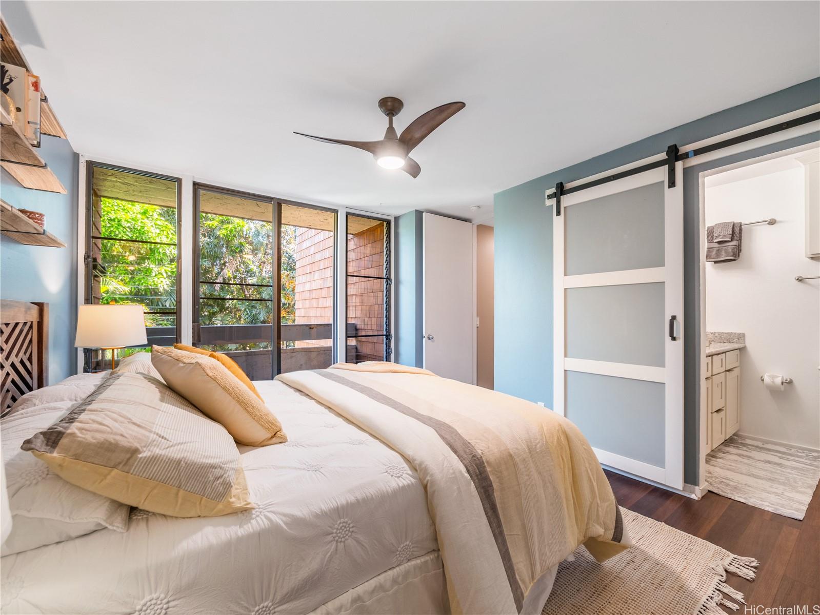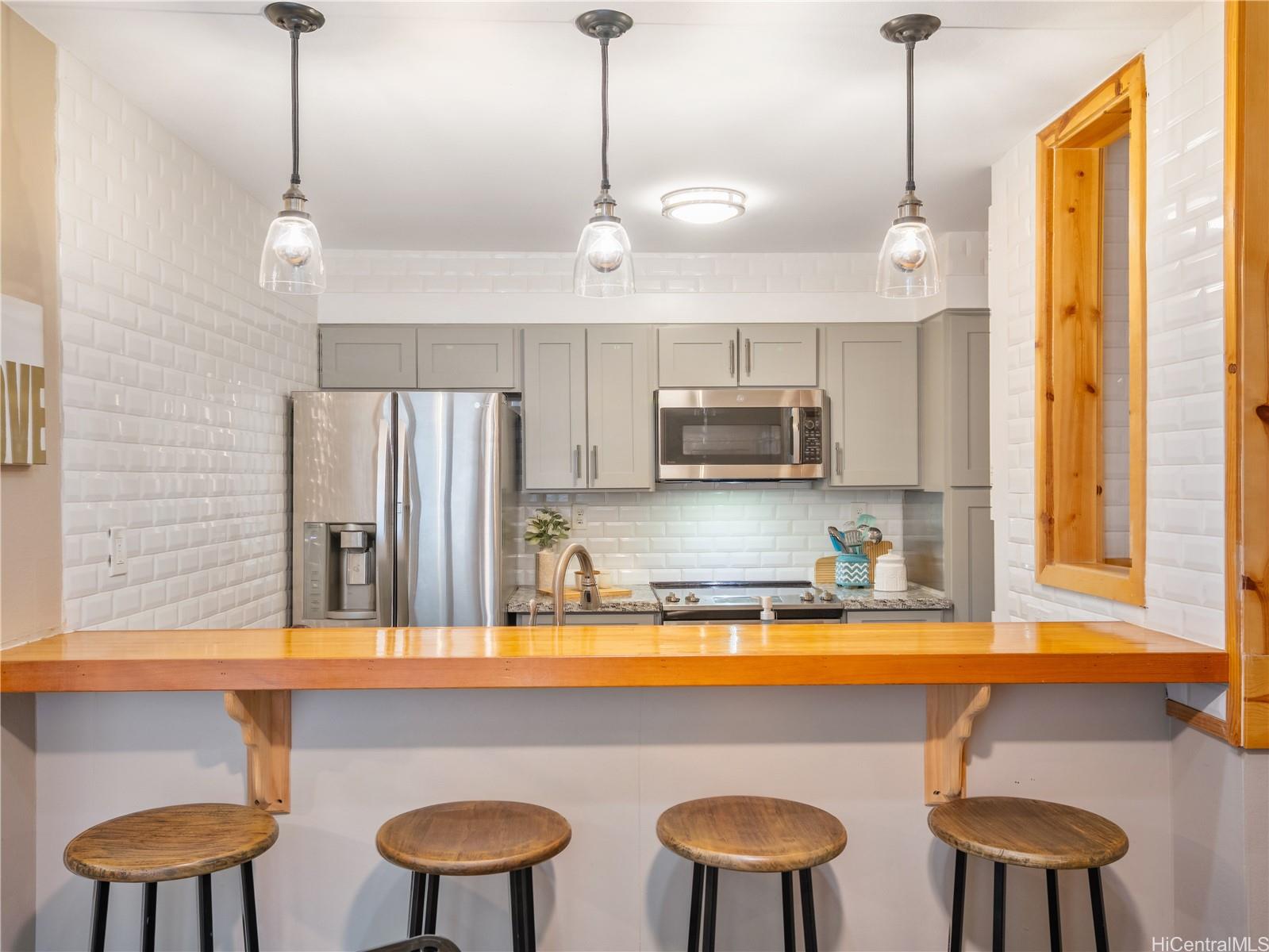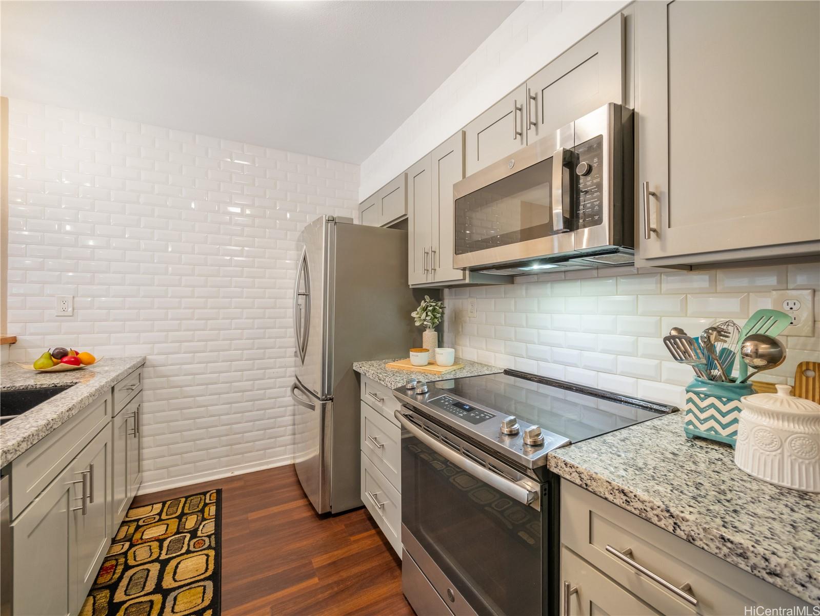 VA assumable loan at 2.75%! Nestled in the heart of Kailua, this beautifully remodeled end-unit offers a prime location within the complex. Conveniently situated near the elevators and covered parking stalls, this single-level home features a highly sought-after floor plan with no stairs—perfect for easy living. Inside, you’ll find modern upgrades including sleek granite countertops, durable vinyl flooring, and a built-in wine fridge, ideal for entertaining or relaxing in style. The spacious living room opens to a private lanai where you can enjoy morning coffee and gentle island breezes surrounded by peaceful treetop views. The primary bedroom also features its own lanai, creating a quiet retreat to unwind. Just minutes away are Kailua’s iconic beaches with soft white sand and turquoise water, along with boutique shops, trendy cafes, and local farmers’ markets. Whether paddleboarding at Kailua Beach, exploring nearby hiking trails, or enjoying the laid-back island lifestyle, this location truly offers it all. Don’t miss this rare opportunity to own a move-in-ready gem in one of Oahu’s most desirable communities.
