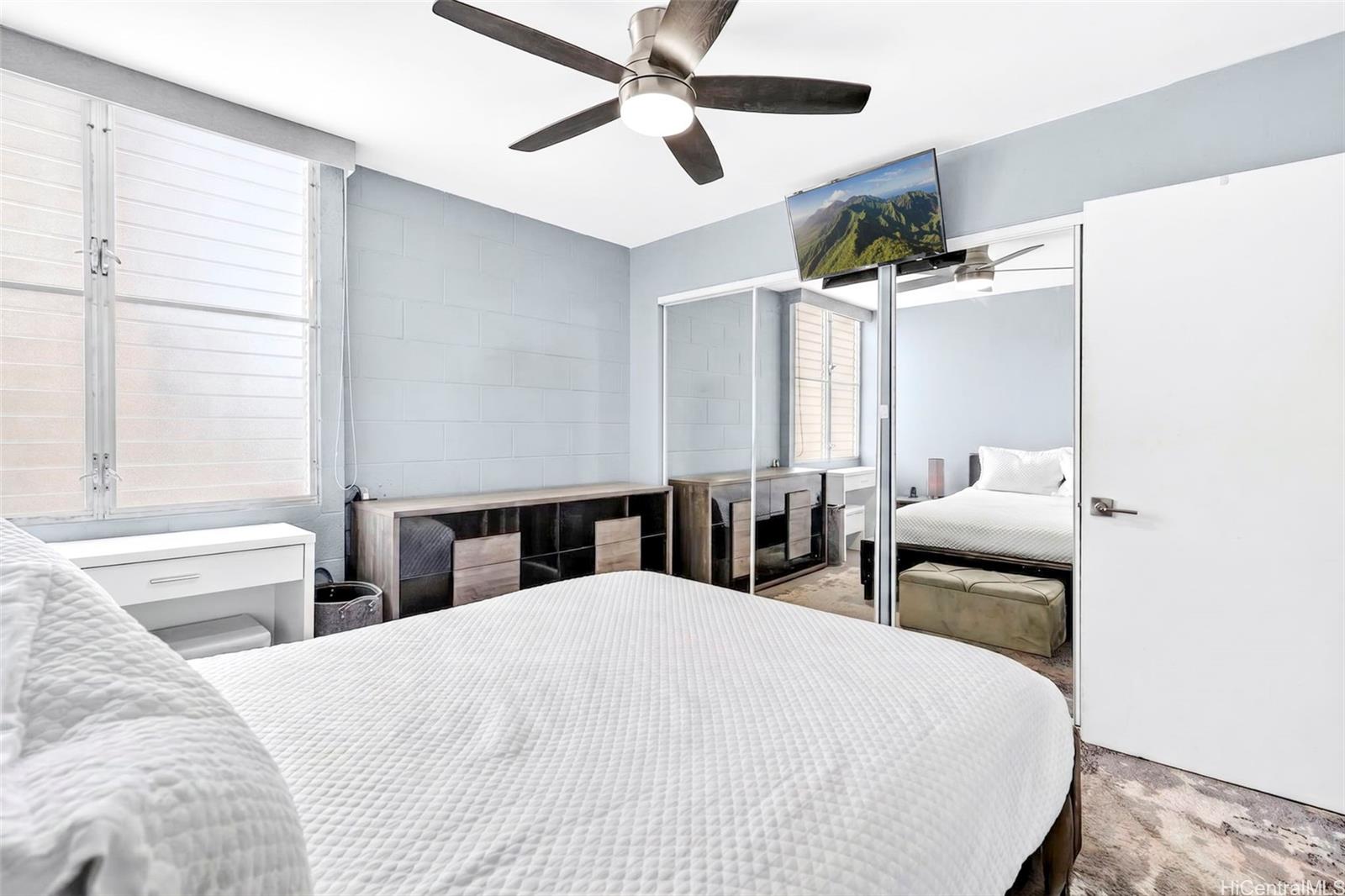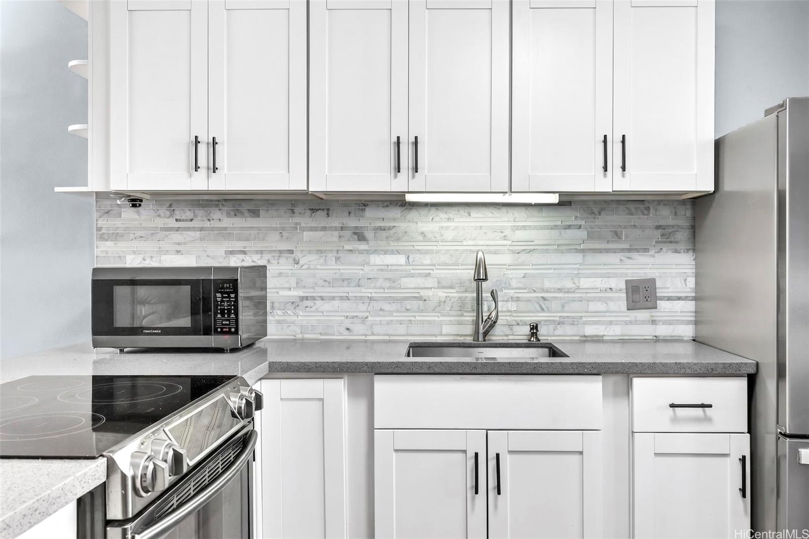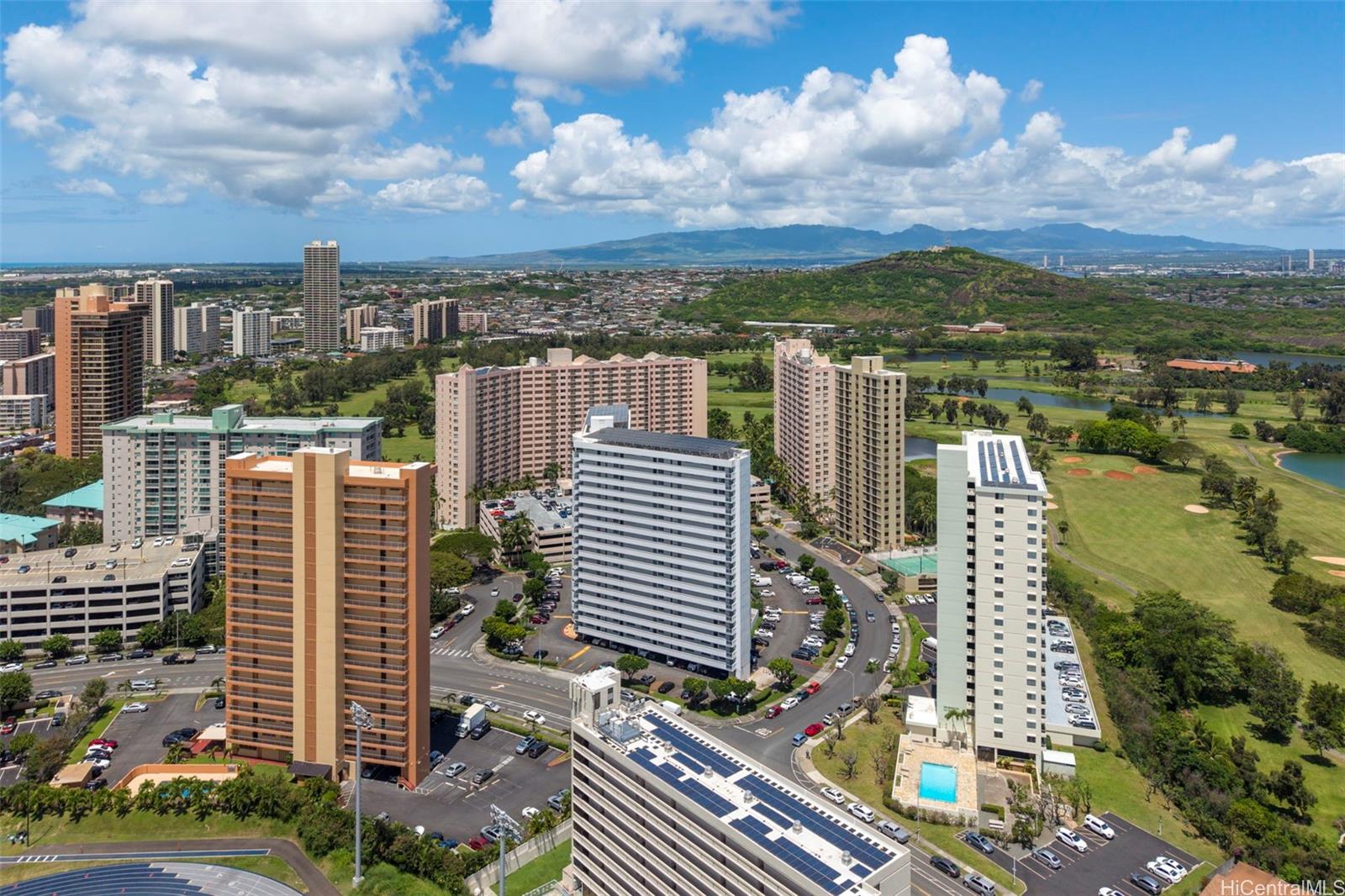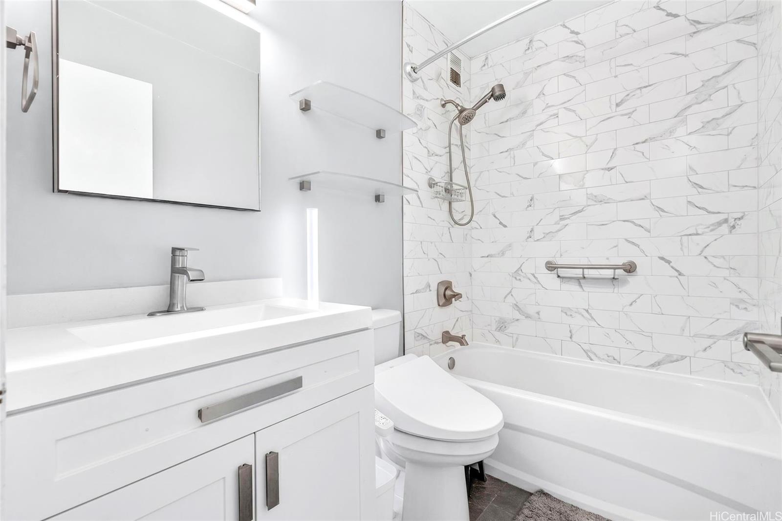 Beautifully renovated 1-bedroom condo in Salt Lake with 1 assigned parking stall and the convenience of an in-unit washer and dryer while you enjoy relaxing golf course views from both your living room and private lanai. The home showcases upgrades throughout including modern shaker cabinets, sleek quartz countertops, durable tile flooring, and a smooth, popcorn-free ceiling. The fully remodeled bathroom features contemporary finishes and a washlet for added comfort. You’ll also appreciate the abundant storage, rare for a 1-bedroom unit with ample cabinetry and well-designed spaces to keep everything organized. The Greenwood is a well-maintained building with all utilities included in the HOA dues and conveniently located just minutes from shopping, dining, freeway access, and Daniel K. Inouye International Airport.