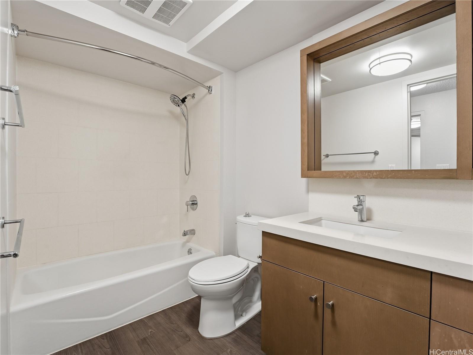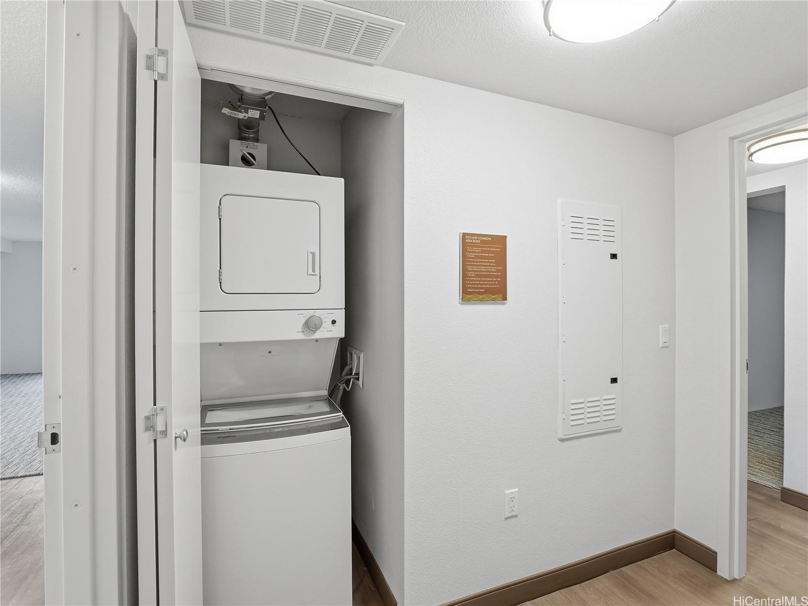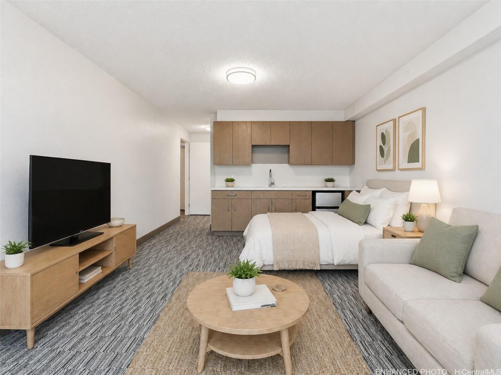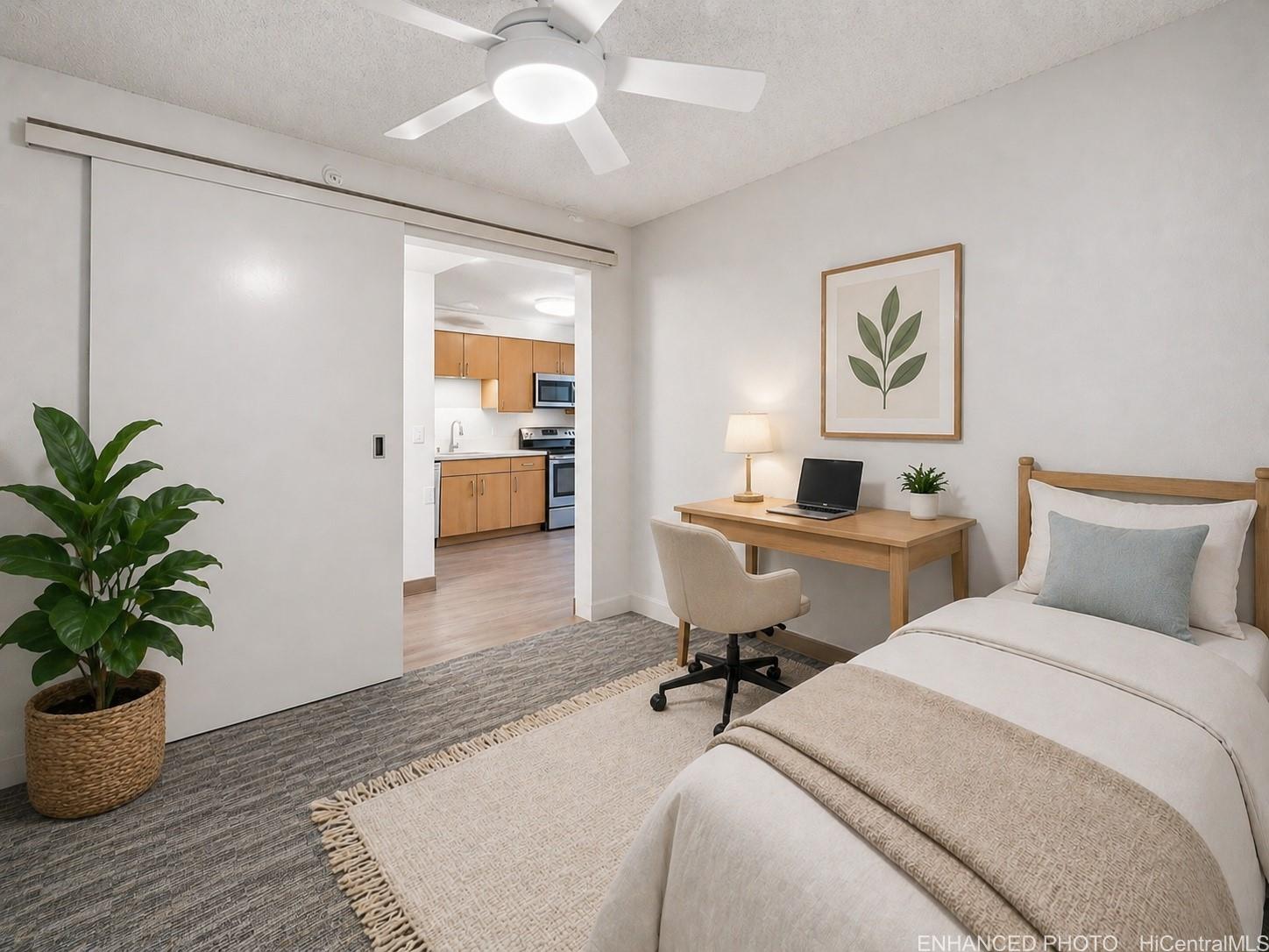 OWNERS & INVESTORS alike can appreciate the HALE KA LAE – FLEX unit opportunity! Live in one side and rent the other with this versatile layout designed for privacy and rental income potential. The main living area features a comfortable 2-bedroom, 1-bath floor plan with a full kitchen and inviting living space. A separate private suite includes its own entrance, full bathroom, and convenient wet bar—ideal for extended family, guests, or rental use. Thoughtfully designed for flexibility and functionality, this home offers multiple living options to fit your lifestyle. Whether you’re seeking a multi-generational layout, income potential, or a smart investment opportunity, this property offers exceptional value in the desirable Hale Ka Lae community. Unit is freshy painted and awaiting its new owners; the outdoor amenities include a pool, spa, pergolas, cabanas, BBQ areas, a park, and a dog park. Inside indulge in a gym, movie theatre, rec room, meeting rooms, and a dog spa.