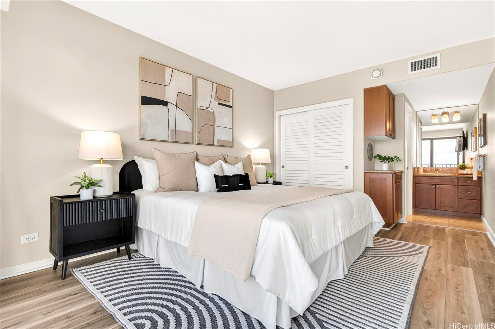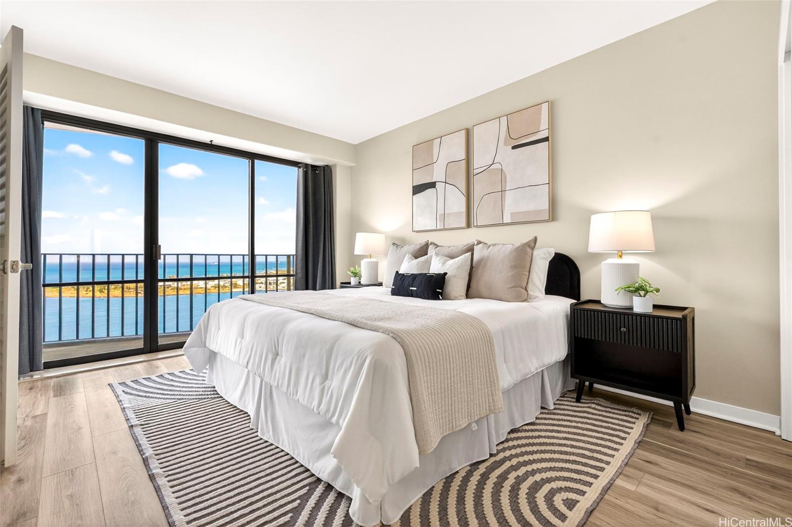 広々としたリビングルームと2つのベッドルームから、港ときらめく海の息をのむような遮るもののない広角の眺め!目覚めもくつろぎも、島暮らしを真に象徴するパノラマの海の景色と共に。 この手入れの行き届いた住宅は、ビニール床材が全室に敷かれ、浴室にはトラバーチンタイルが使用されており、清潔で時代を超えた仕上げとなっています。 リビングルームは、ショーケース壁照明と埋め込み式天井によって引き立てられ、温かみのある優雅な雰囲気を醸し出している。 キッチンには花崗岩のカウンタートップ、ステンレス製の家電製品、ワインクーラーが備わっています。 セントラル空調は一年中快適な環境を提供します。 管理費には電気、ケーブルテレビ、インターネット、水道、下水道、ごみ処理が含まれており、非常に優れた価値と利便性を提供します。 屋根付き駐車スペース1台分が含まれます。 ハーバースクエアには、プールとバーベキューエリアを備えた6階のレクリエーションデッキがあります。 レストラン、ショップ、ビジネス施設、そしてダウンタウン・ホノルルの近くに位置しています。 .