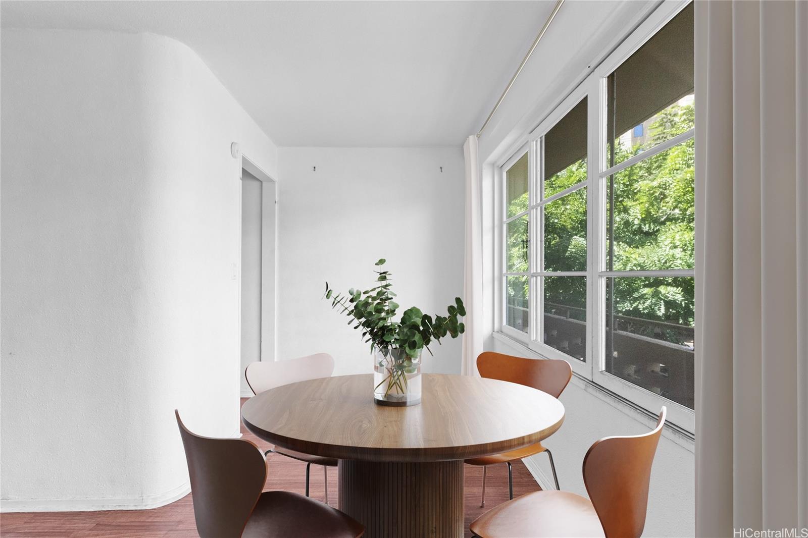 Excellent value and exceptional location! Step into this 1-bed, 1-bath unit at Hawaiiana Gardens in Waikiki. Offering a 445 sqft interior and functional layout, this property is a blank canvas ready for your personal touch. Enjoy the convenience of on-site community laundry and a site manager. The best part? The unbeatable location! Nestled at the peaceful southwestern edge of Waikiki, you’re just minutes from the buzz of the main strip, while being a short distance from Ala Moana Beach Park and Ala Moana Shopping Center. The owner is renting a parking stall for $150.00/month. Priced right for those looking to start their homeownership journey or an investor looking for steady rental income. Here’s your chance to experience the timeless charm of retro Waikiki. *Photos virtually enhanced/staged, taken prior to the current tenant’s occupancy.*