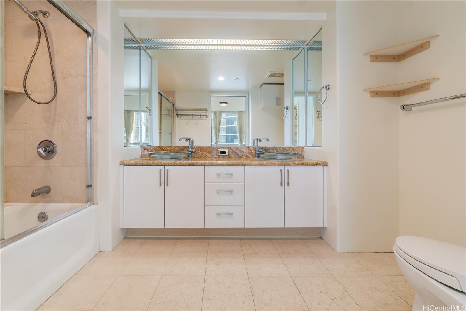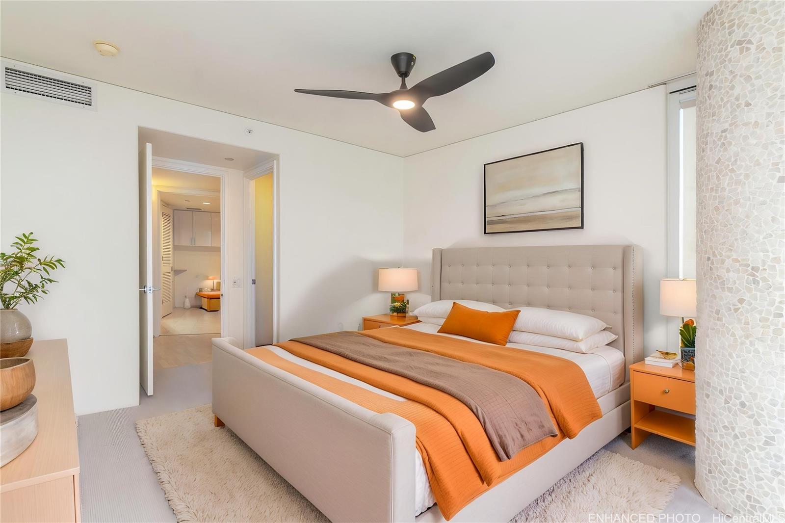 New Price! Seller wants it sold! Rarely available and highly sought after double unit featuring 2 large primary suites in the prestigious Hawaiki Tower. Beautiful corner end unit with spectacular ocean & city views from every room with the floor to ceiling windows that let in lots of natural light. Enjoy lots of space with this open floorplan totaling over 2000 SF. THREE parking stalls which all have storage cabinets above each stall. Upgrades include new flooring throughout the living, dining, kitchen and bedrooms, interior is freshly painted, and new cabinet doors in the kitchen and bath. Relish in luxury amenities including the heated pool, whirlpool, tennis court, putting green, play area, library & more or head to the sandy beaches at Ala Moana Beach Park across the street. Roam the neighborhood full of shopping, restaurants, coffee shops, Ala Moana Shopping Center, Ward Center and world-famous Waikiki just a mile away. Pet-friendly building known for low maintenance fees. One or more photos have been enhanced.