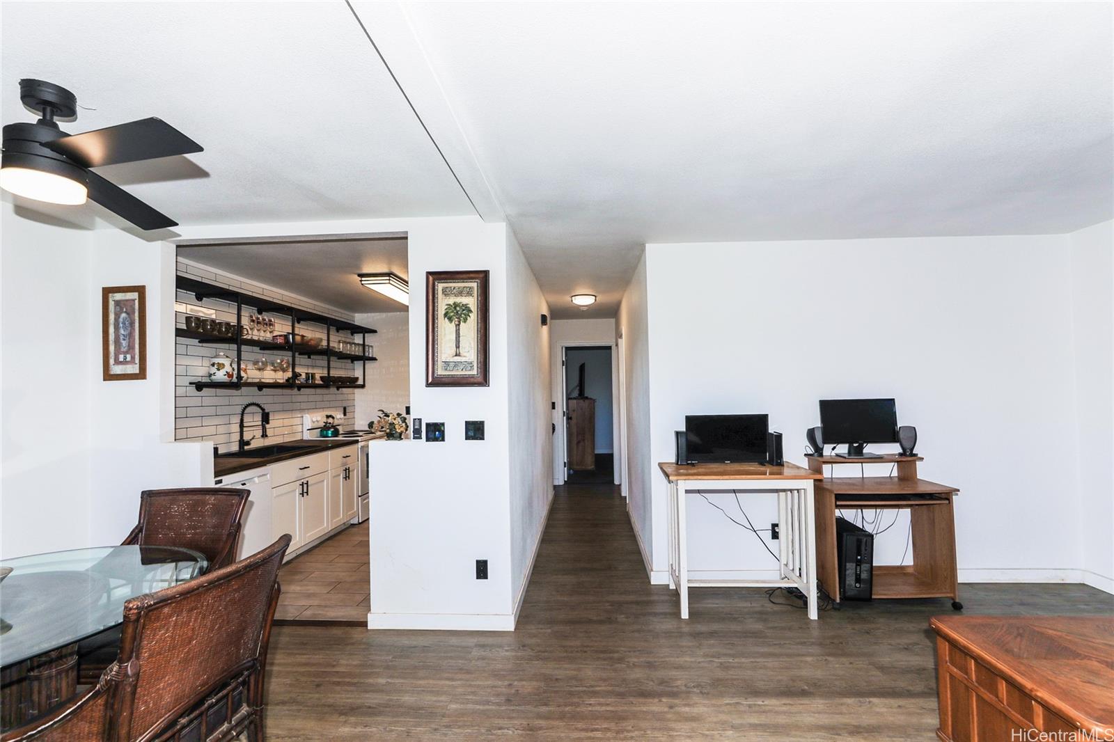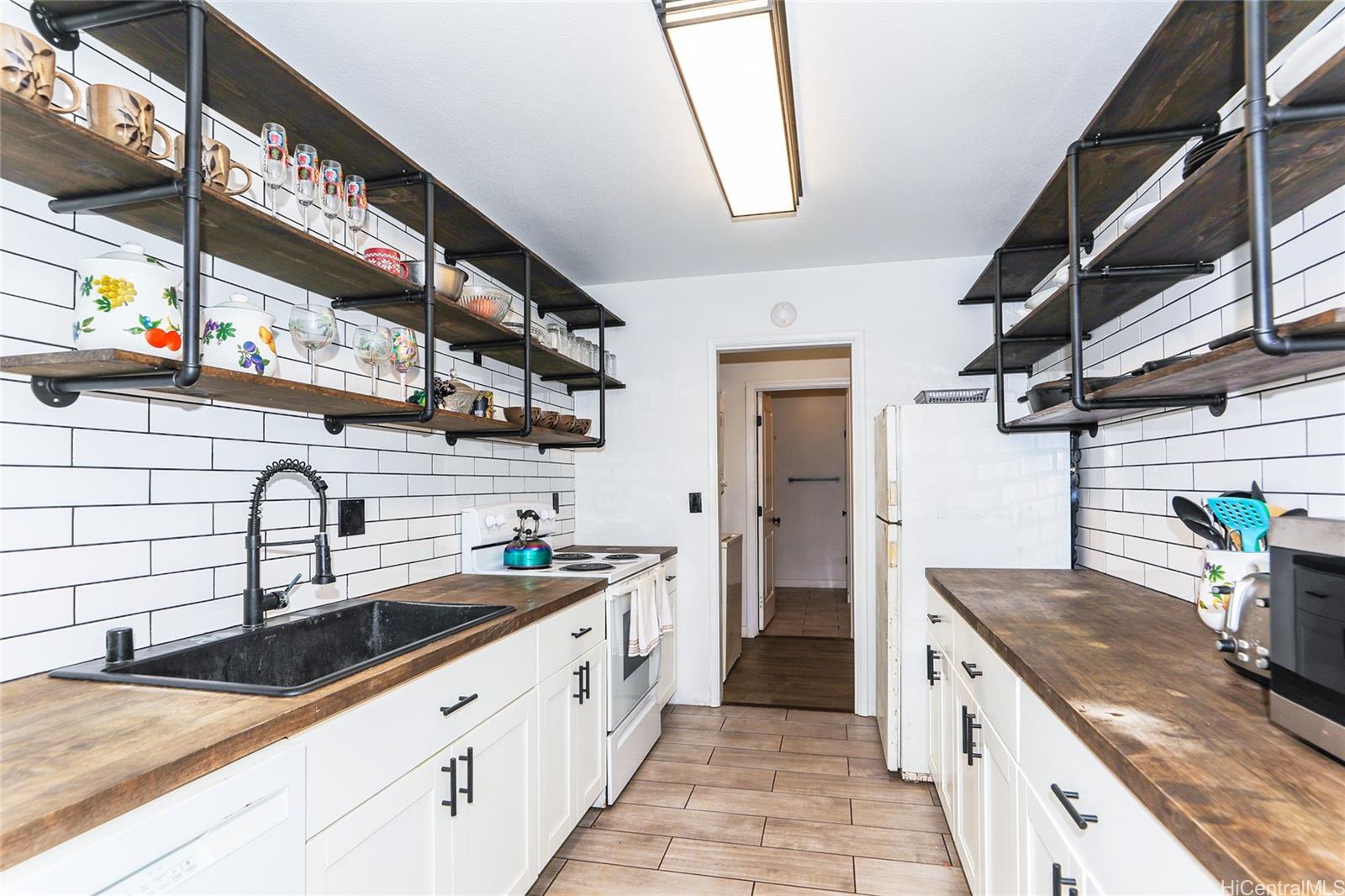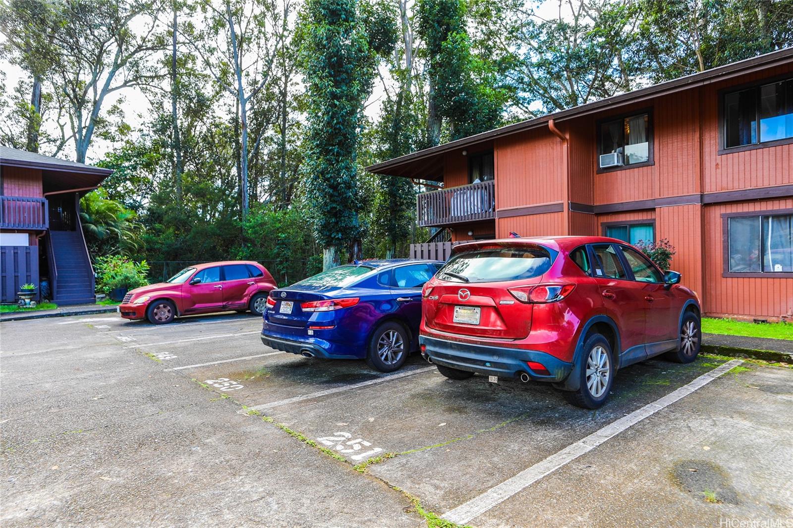 Wahiawa Heights, Oahu, Hawaii, at its best! Feel the Central Oahu coolness of Hidden Valley Estates. Pet friendly development to call home. This ground floor, 2-bedroom, 1-bath single level dwelling comes with two deeded parking stalls. Kitchen and bathroom renovated. As a bonus: The living room leads to a private enclosed patio. This corner/end unit is surrounded by mature trees that provides year-round shade. Located a short drive to Wheeler, Schofield, and Kunia military complexes.