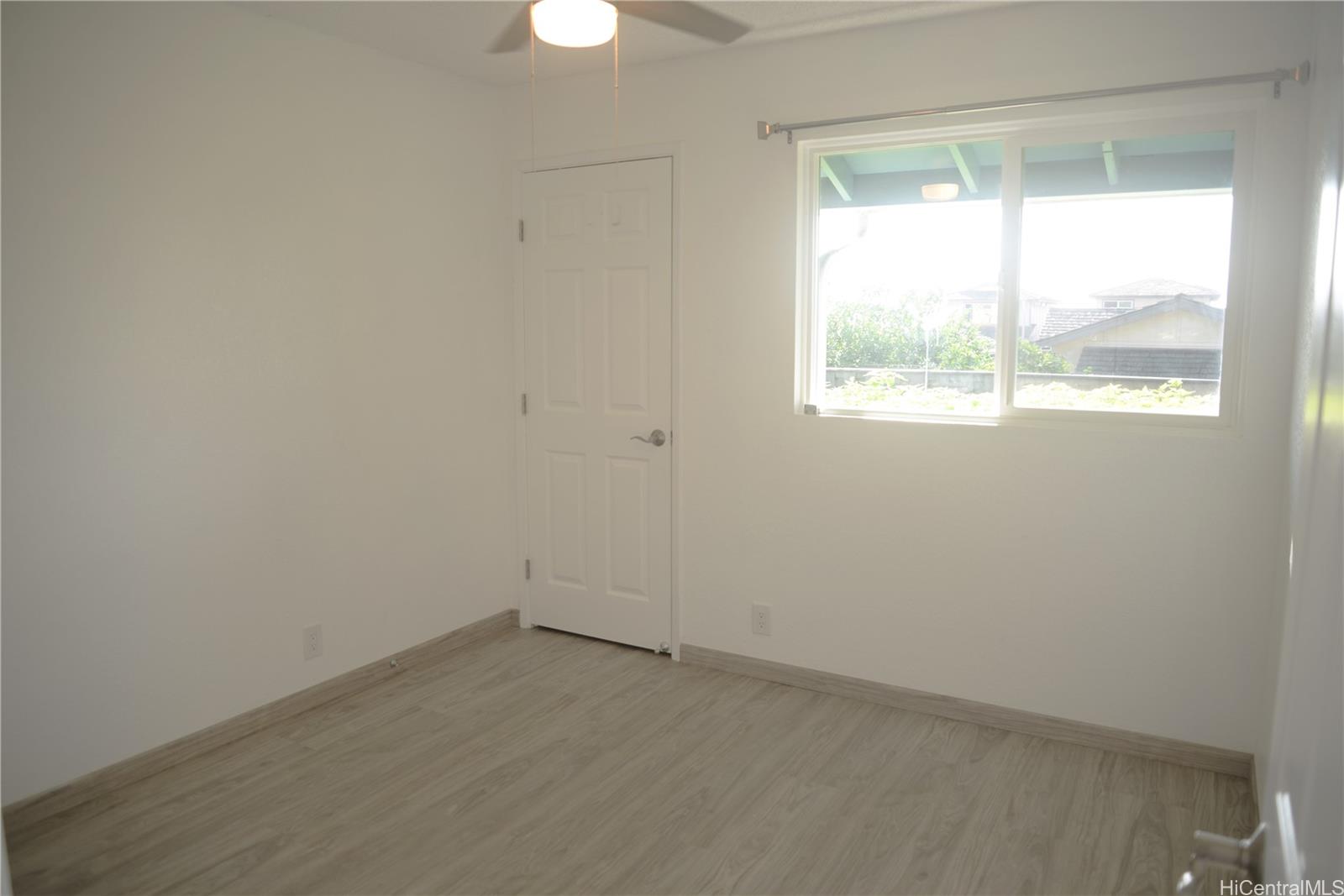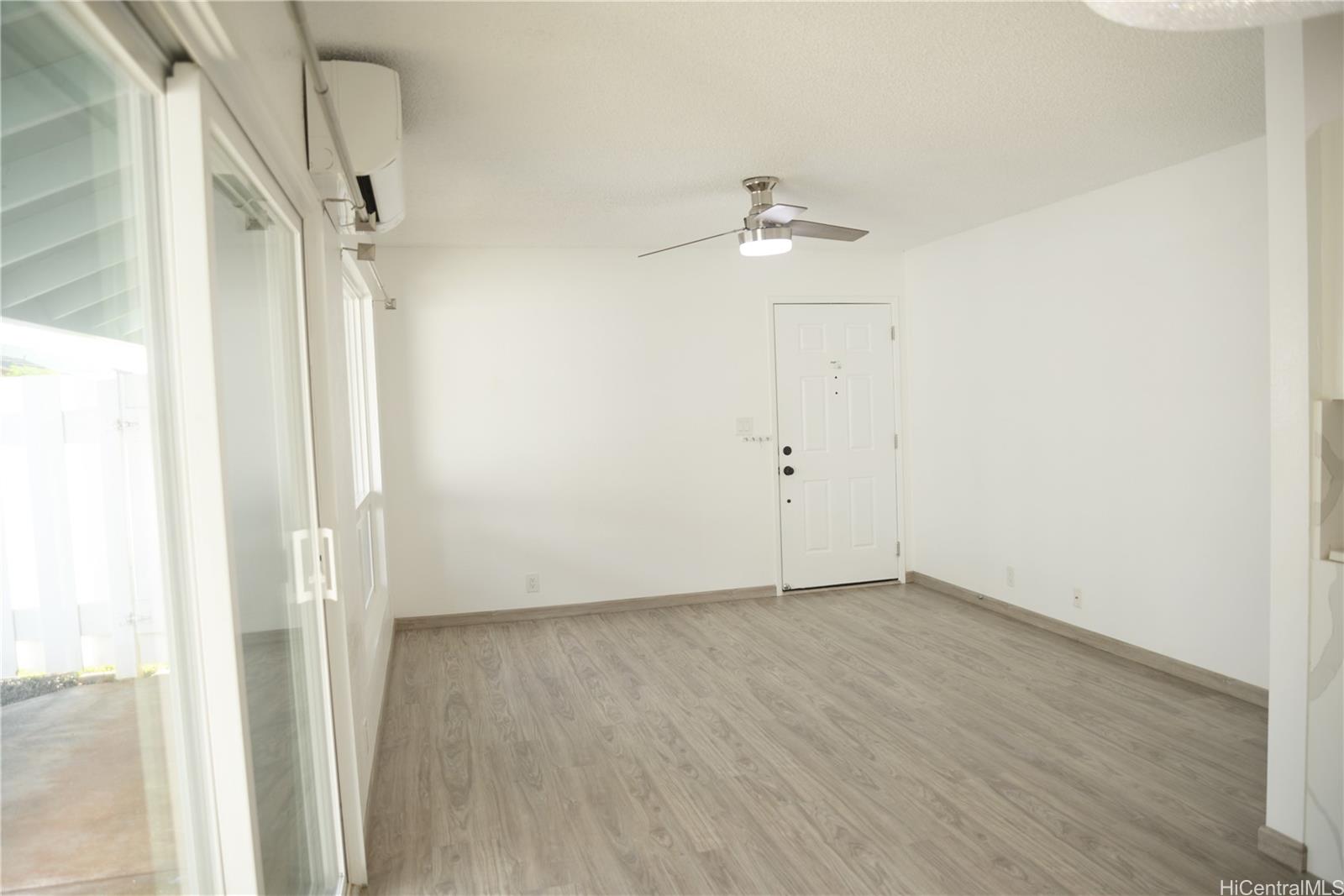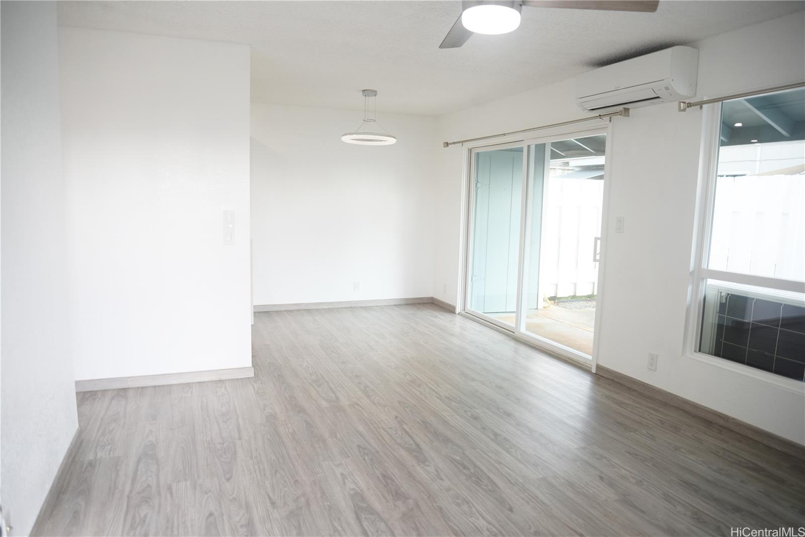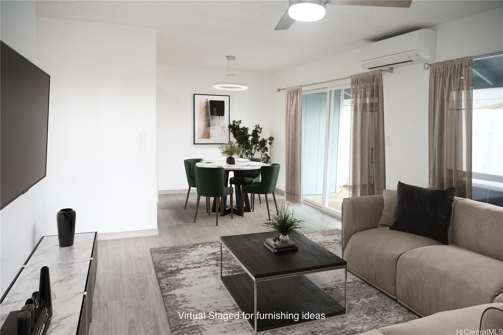 No Upstairs unit, rarely listing single level apartment upgraded in 2024 with new windows, new split air conditioning, new cabinets and counter tops, new electrical fixtures, and much more. Even the bathroom was totally redone in 2024. Flooring was installed in 2023. Apartment is positioned to catch the trade winds. The enclosed patio has a large concrete slab added to the small, covered lanai.