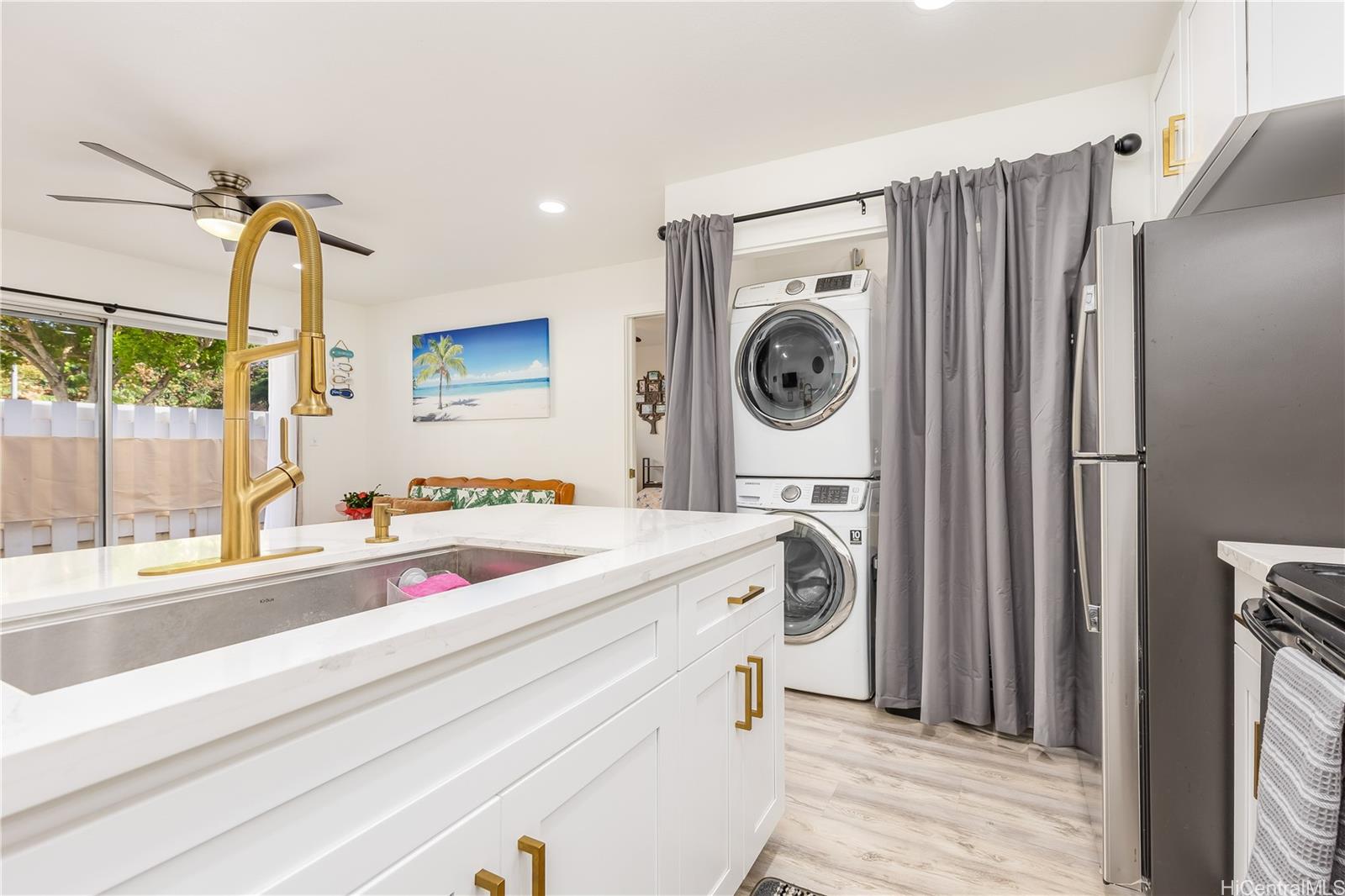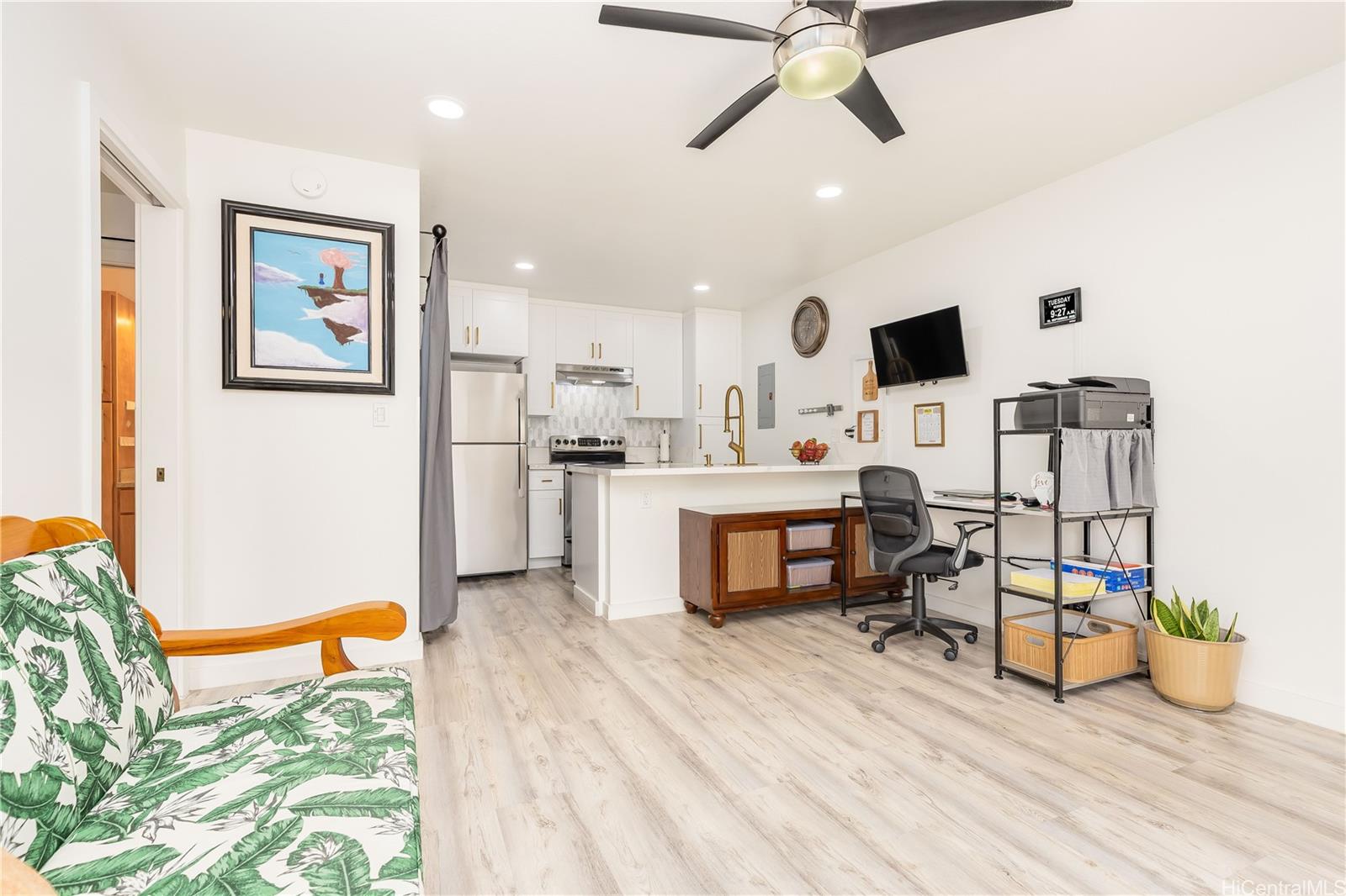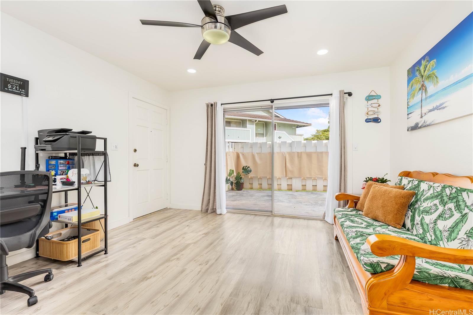 Ground floor 1-bedroom unit in Waipio Gentry featuring two assigned parking stalls plus plenty of nearby street parking. This fully renovated townhome offers an updated kitchen, luxury vinyl plank flooring, a full-size washer and dryer, a spacious walk-in closet, and a beautifully updated bathroom. Step outside to your own private fenced outdoor space perfect for your potted plants or for entertaining! Directly across the street, enjoy Waipio Neighborhood Park and walking paths throughout the community. You’ll enjoy the convenience of being located just minutes from shopping, restaurants, banks and freeway on/off ramps.