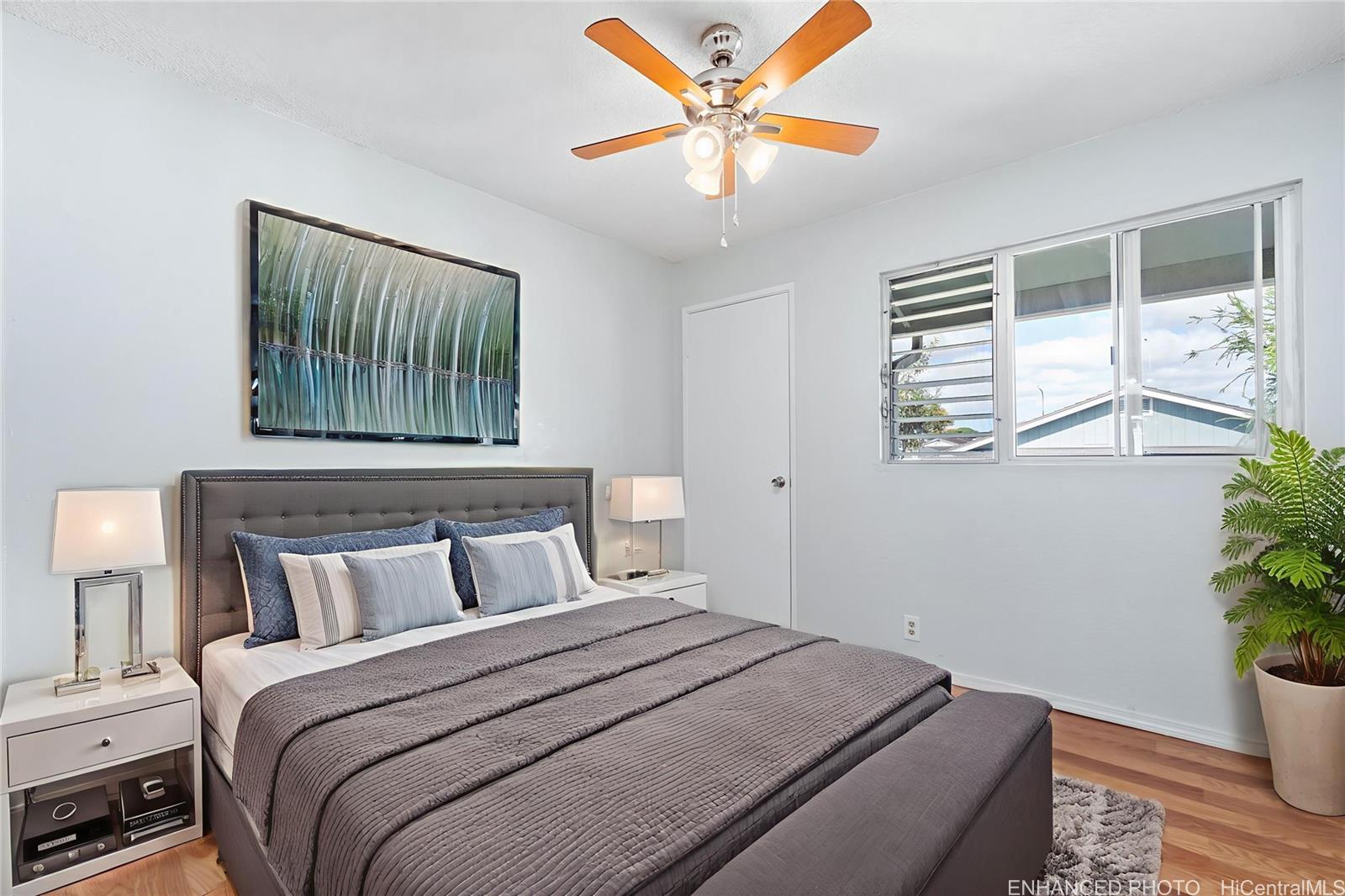 A rare combination of space, affordability, and unbeatable convenience at Hikino in Waipio Gentry. Spacious yet affordable 2-bed, 1-bath corner unit features 717 sq. ft. of living space plus a 52 sq. ft. lanai, additional storage, updated appliances, side-by-side washer/dryer, nearby street parking for additional vehicles, and plenty of guest parking. Best of all, the monthly fees are low, the community is VA approved and fully insured! Living in Waipio Gentry means having the best of Central Oahu at your fingertips. Conveniently located near Costco, neighborhood parks, Waikele Premium Outlets, restaurants, and quick freeway access. A few photos have been virtually staged(enhanced).