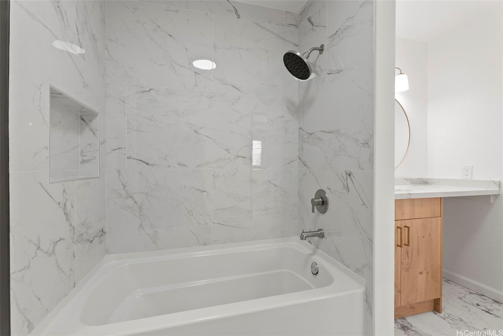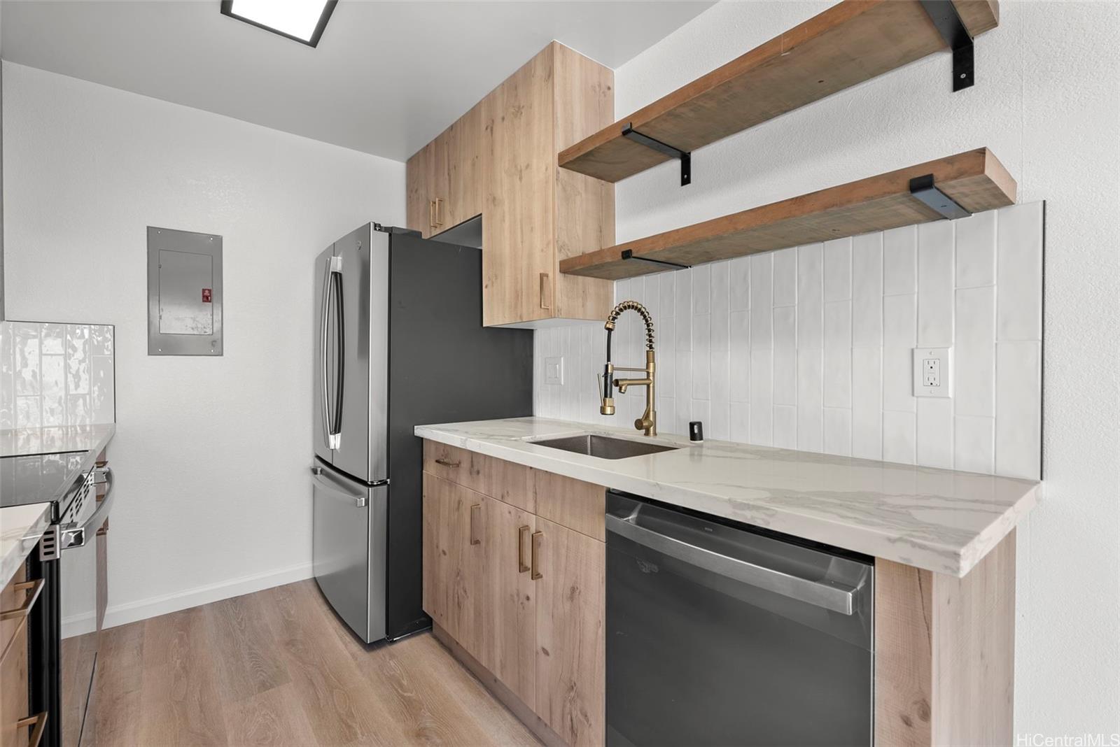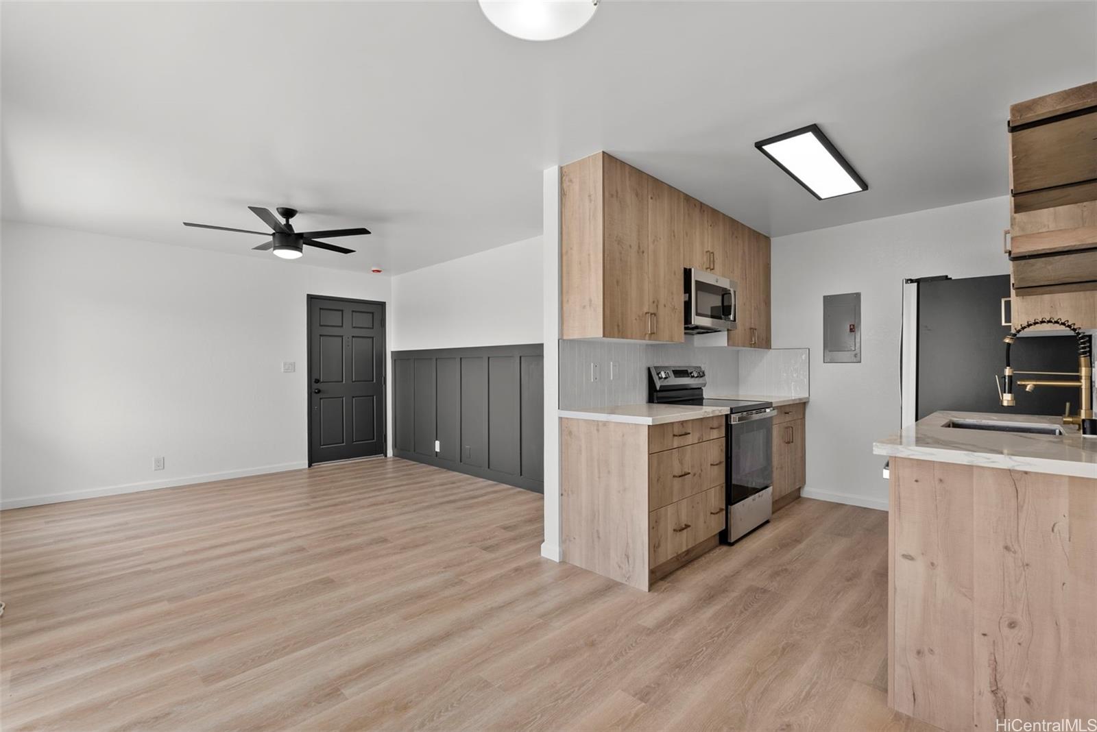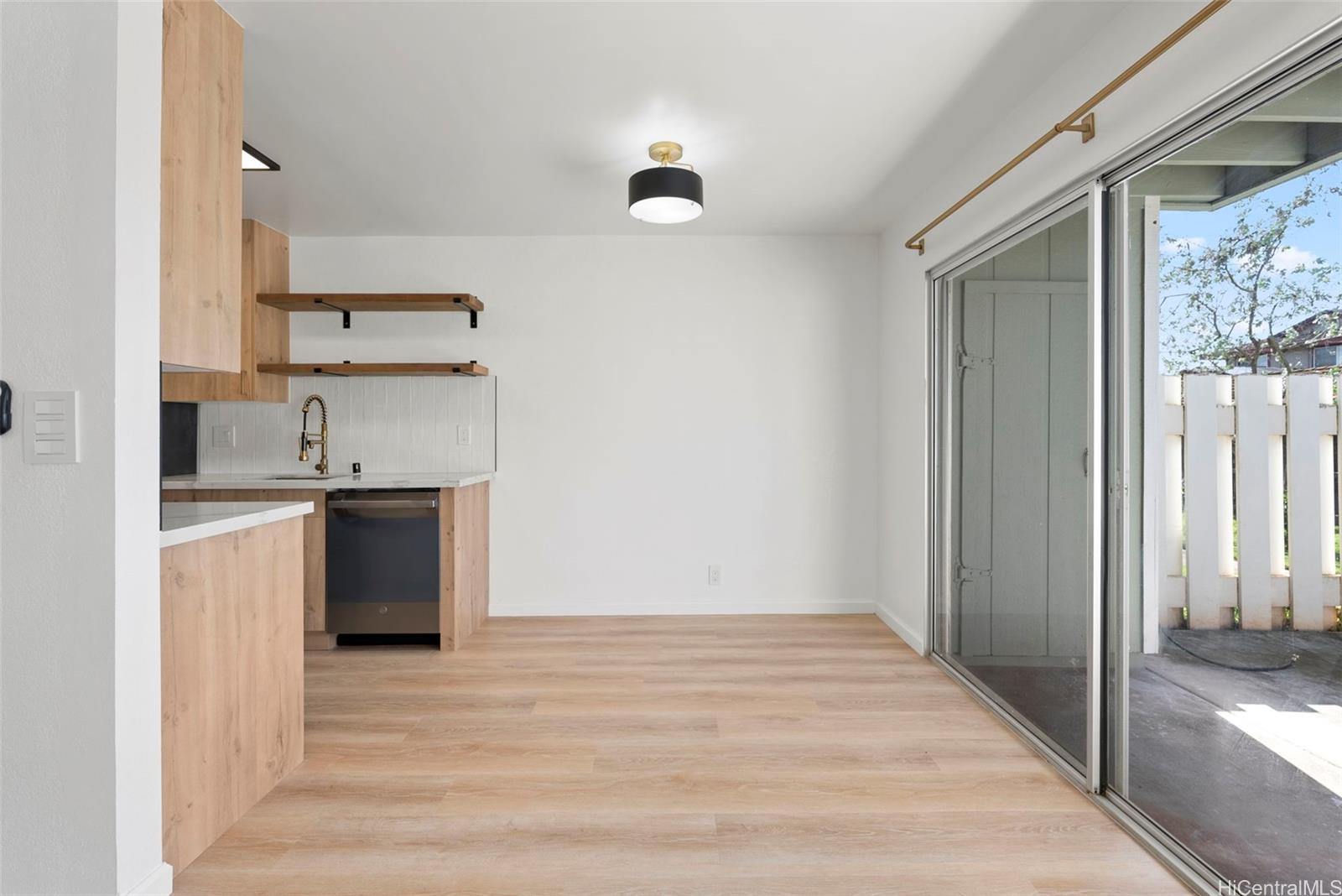 NEW LISTING!! Don’t miss this beautifully renovated 2 bdrm/1 bath ground-floor corner unit in Hikino 3. Recently updated with a modern touch, the home features luxury vinyl plank flooring, an updated bathroom and kitchen with all new appliances, and a clean, contemporary design. Enjoy the rare bonus of a spacious, fully fenced outdoor lanai—perfect for entertaining, relaxing, or creating your own private outdoor retreat. The corner location offers added privacy and natural light, while the ground-floor setting provides easy access and indoor-outdoor living. Tastefully renovated and truly move-in ready, this home is an excellent opportunity for comfortable island living. A few photos have been virtually staged(enhanced).