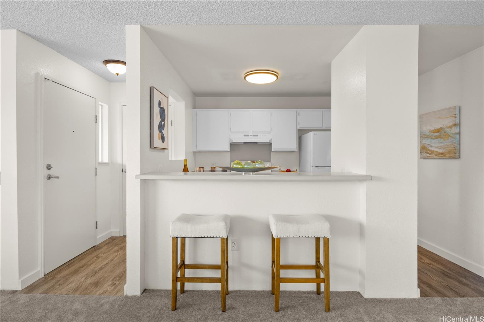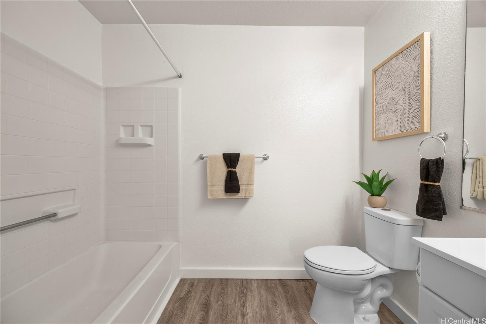 広々としたエンド・ユニットのレジデンスは、静かな緑の眺めと優れた自然の風通しが特徴。 最近、全館フローリング(カーペットとビニール)、シーリングファンを新しくし、フレッシュで引っ越し準備の整った雰囲気を醸し出している。 キッチンには新しいレンジフードが付いている。 この2階住戸は機能的なレイアウトで、階段の真正面に2台分の駐車スペースがあり便利です。 ペットフレンドリーな複合施設はエントランスに近く、出入りも簡単だ。 小学校が徒歩圏内にあり、公園、ショッピング、軍事基地、H-2フリーウェイに近いという利便性をお楽しみください。 .