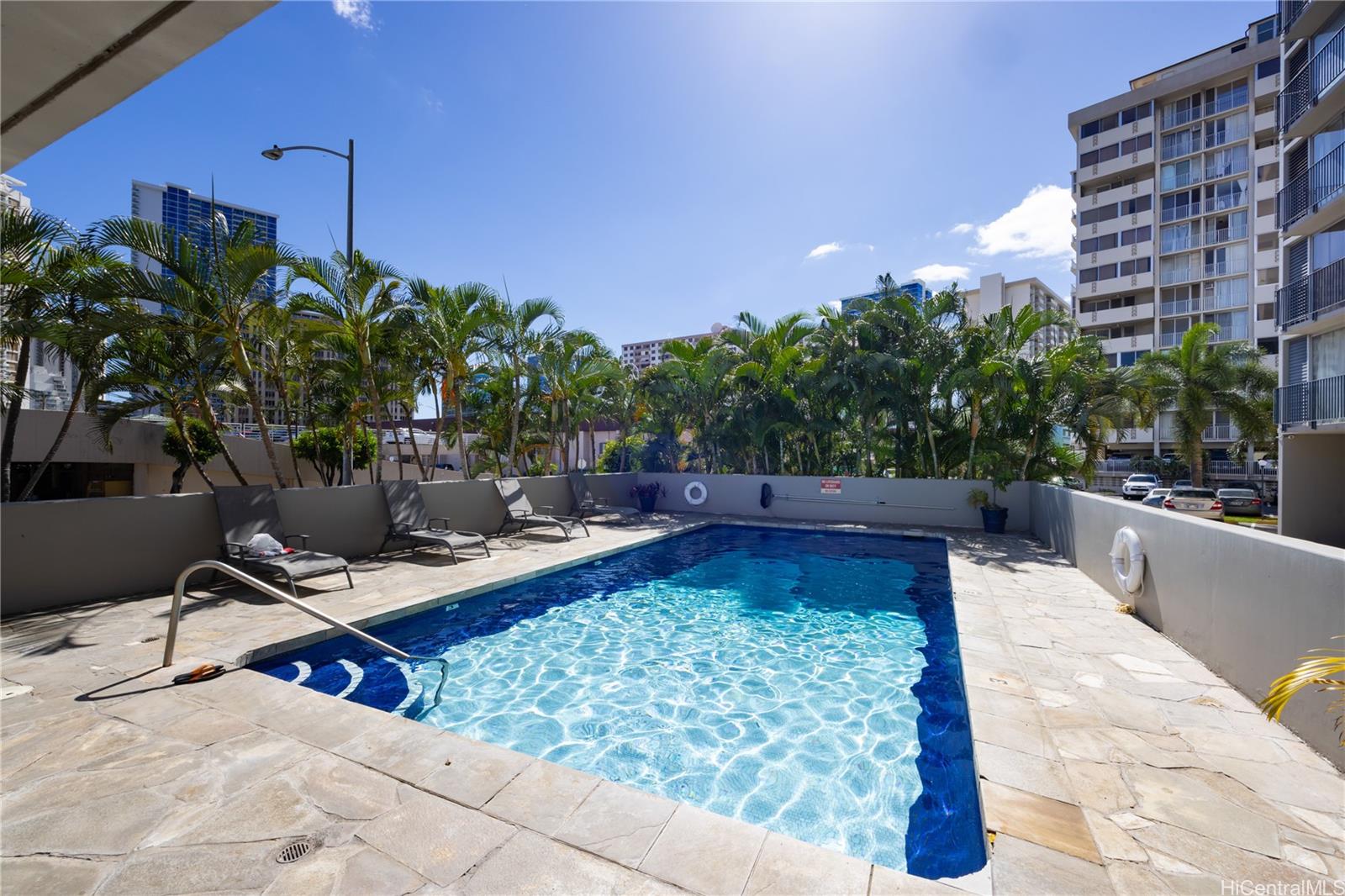 Nestled in the vibrant heart of Honolulu, this charming studio condo offers the perfect blend of convenience and island living. Just moments from the iconic Ala Moana Shopping Center, Waikiki’s sandy shores, and the University of Hawaii, this home places the best of Honolulu right at your doorstep. Step inside to find a thoughtfully designed space featuring newer shaker-style cabinets, luxury vinyl flooring, and a beautifully tiled bathroom. With plenty of closet space, staying organized is a breeze. Open your sliding door to a small lanai, ideal for stepping out to catch a breath of fresh air and enjoy the views and the tropical breeze. This building has been retrofitted with fire sprinklers. It comes with community laundry and a sparkling pool for relaxing under the Hawaiian sun. Parking is available for rent, adding extra convenience to this unbeatable location. Whether you’re looking for your own urban oasis or a smart investment opportunity, this studio condo delivers an incredible value in a great location. Don’t miss it!