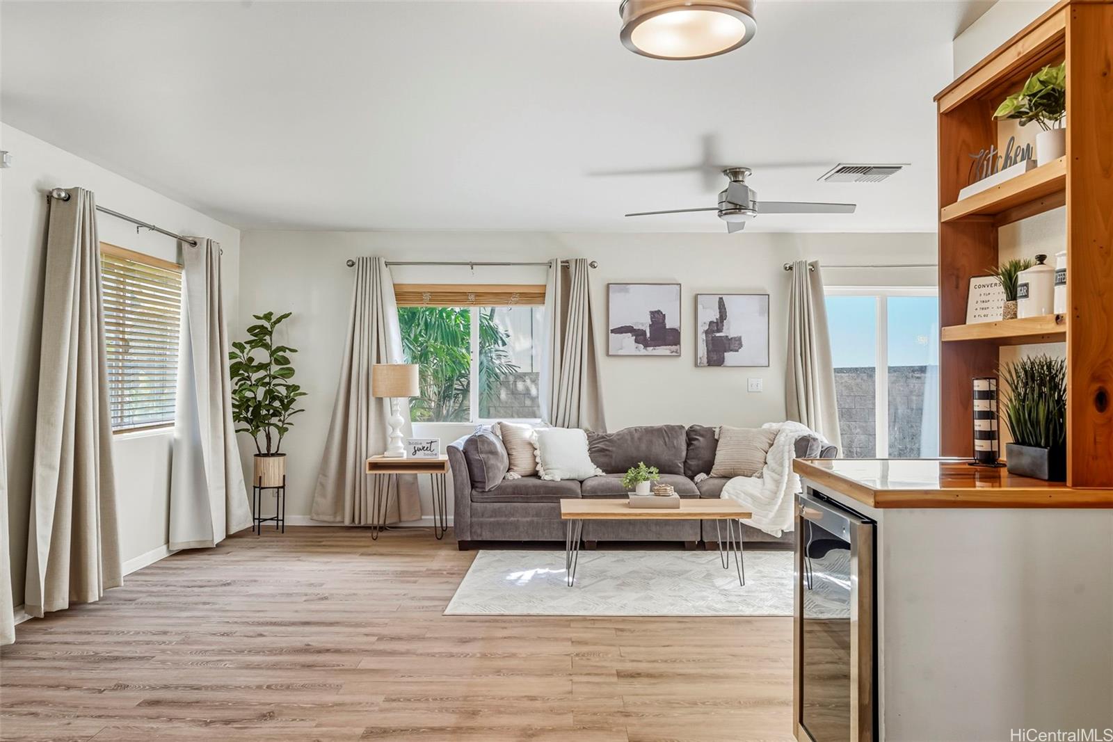 Best priced 3-bedroom home in all of Sea Country. Don’t wait, this one won’t last. This well-maintained two-story home offers comfort, convenience, and island living. Features include central AC, abundant natural light, a large sliding door opening to a private fenced yard, ceiling fans in every room, stainless steel appliances, and washer and dryer. Parking is effortless with an attached enclosed garage, a second parking space, and guest stalls nearby. This home sits on the corner with no direct neighbor on one side and an elevated rear neighbor making the home and yard feel extra private. Conveniently located minutes from the community pool with BBQ and gathering area, park with playground and courts, general store, and bus stops. Close to popular West Side spots like Pillbox Hike, Ma‘ili Beach, and many local eateries and beaches. A major bonus: Assumable VA loan with a 3.88% interest rate, a huge advantage in today’s market. Priced to sell and unmatched in value, this is currently the lowest priced 3-bedroom in all of Sea Country. Act fast before it’s gone!
