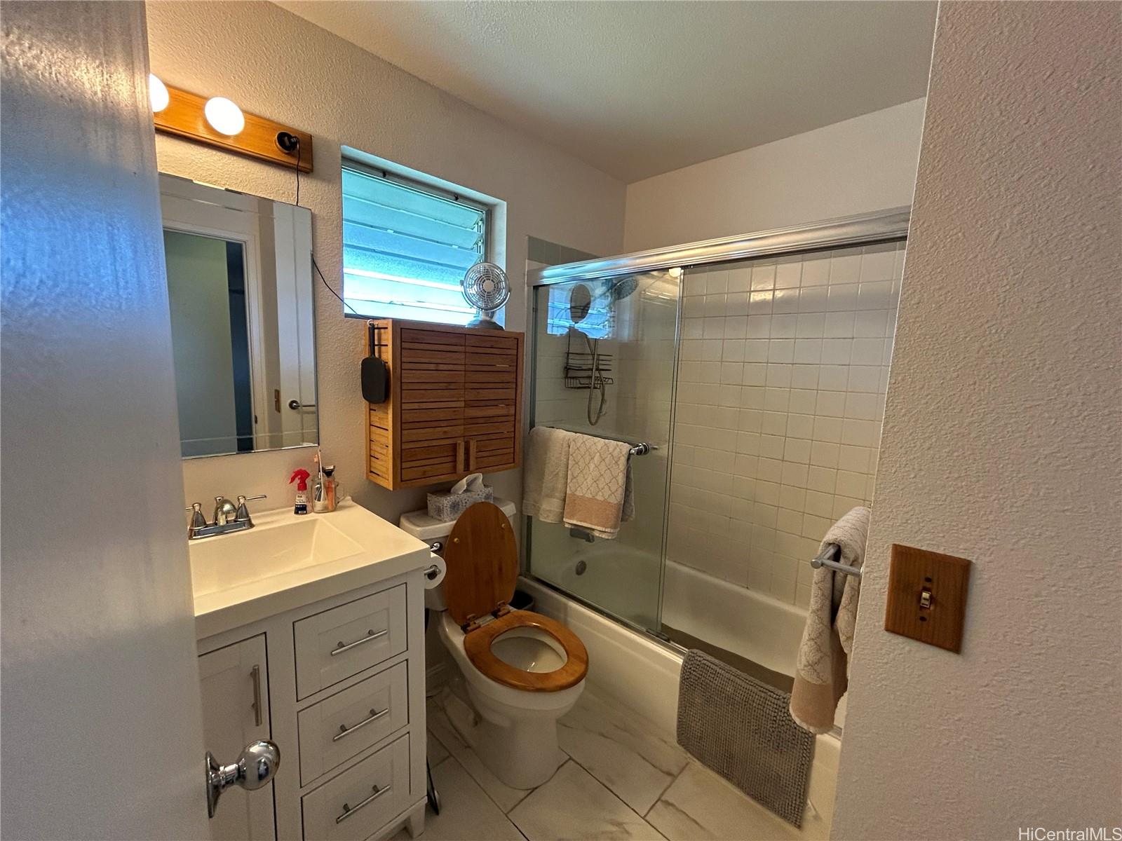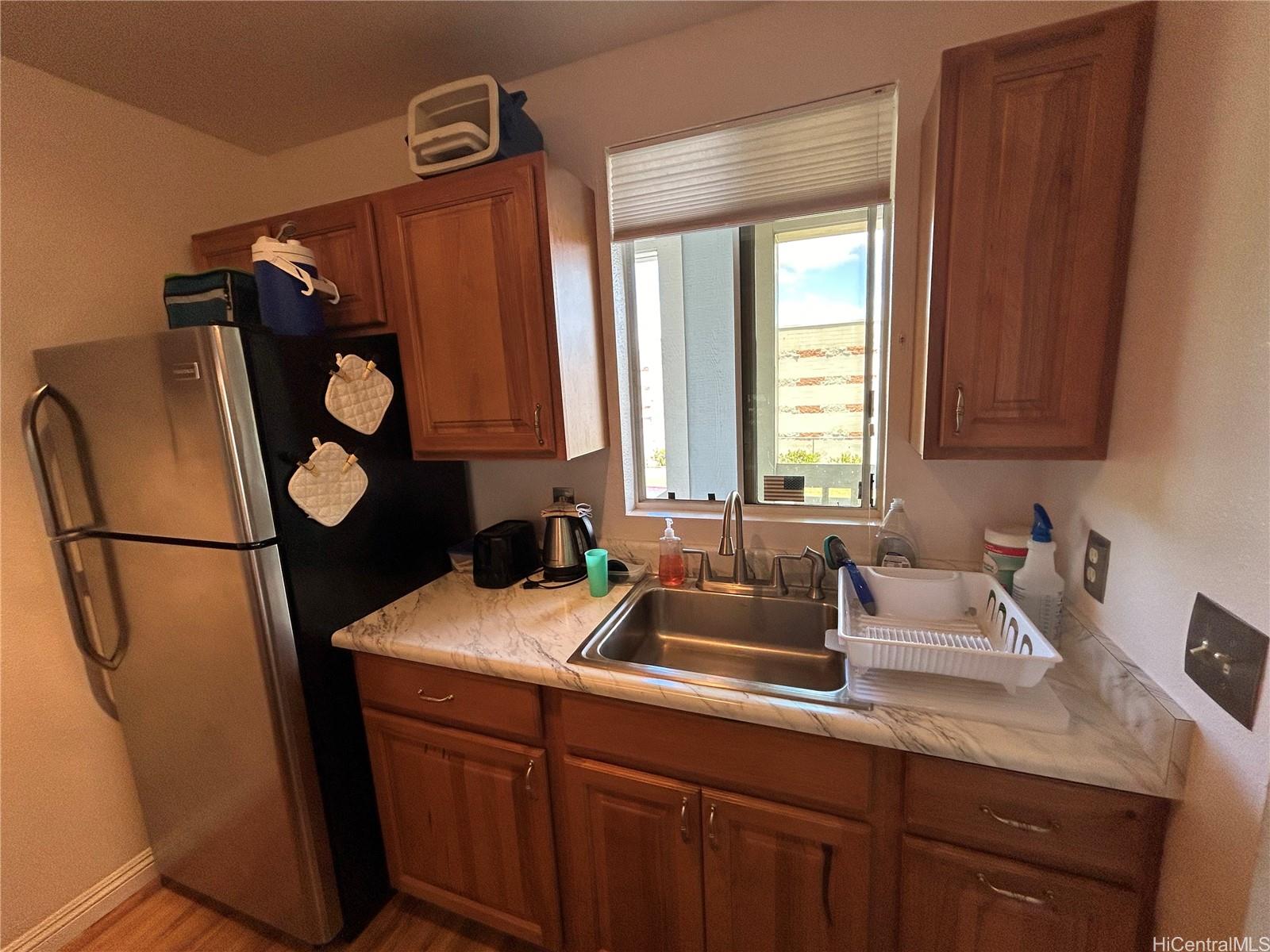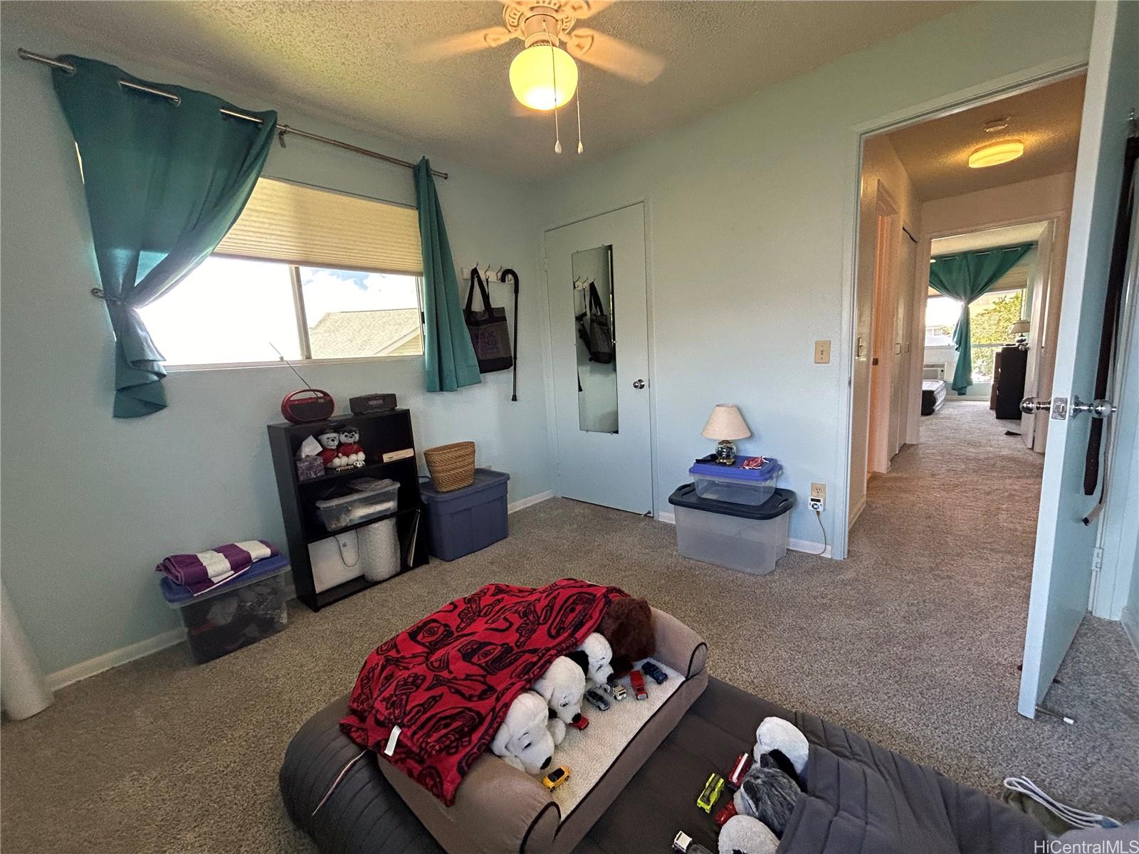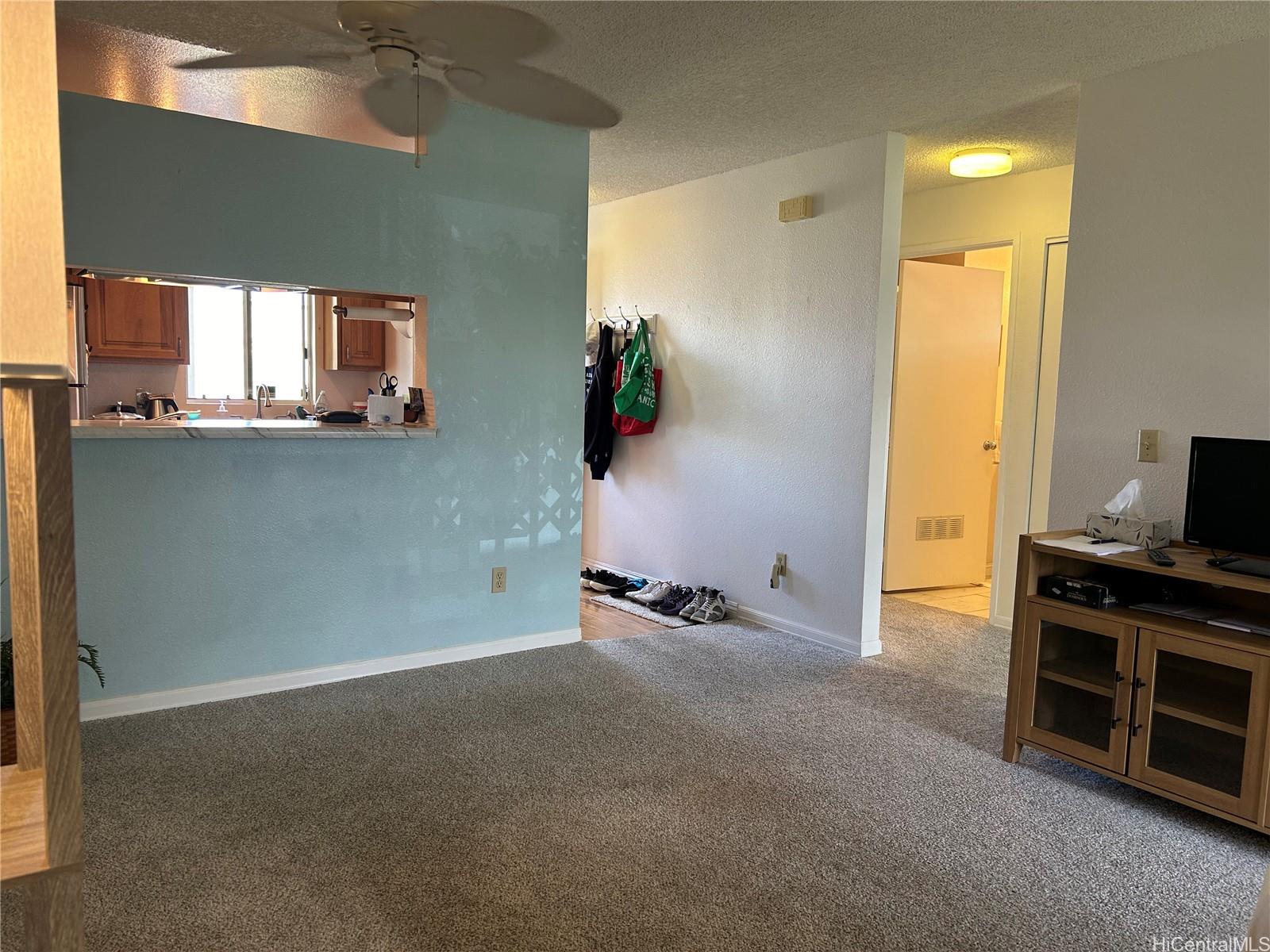 Well maintained move-in ready: Fee-simple, 2 bdrm/1ba 2nd floor end unit inquiet well maintained Ho’okumu at Waikele. The unit features plenty ofnatural light, west facing lanai for enjoyable sunset views. Bedrooms, living rmhave ceiling fans. The primary/main bedroom has a window mounted A/C, and mirroredcloset doors. New wall-to-wall carpet installed Oct. ‘24 in bdrms, hall, and livingrm. The bathroom has a tub/shower combo w/sliding glass doors, recentlyinstalled porcelain tile floor and alcove with the in-unit washer/dryer. Kitchen hasceramic top stove w/self-cleaning oven, garbage disposal, and refrigerator. Allcabinets are solid wood, a pass-through bar, and custom countertops. Kitchen andentryway has laminated wood flooring. Other features; EcoNet water heater lessthan 3 yrs old, RING doorbell system, electronic programmable front door lock,tinted windows with honeycomb style light filtering blinds, Hawaiian Telcom fiber-optic internet and cable access. 1 assigned parking stall, uncovered, guest parking availwith restrictions, nearby street parking. Complex offers car wash areas.