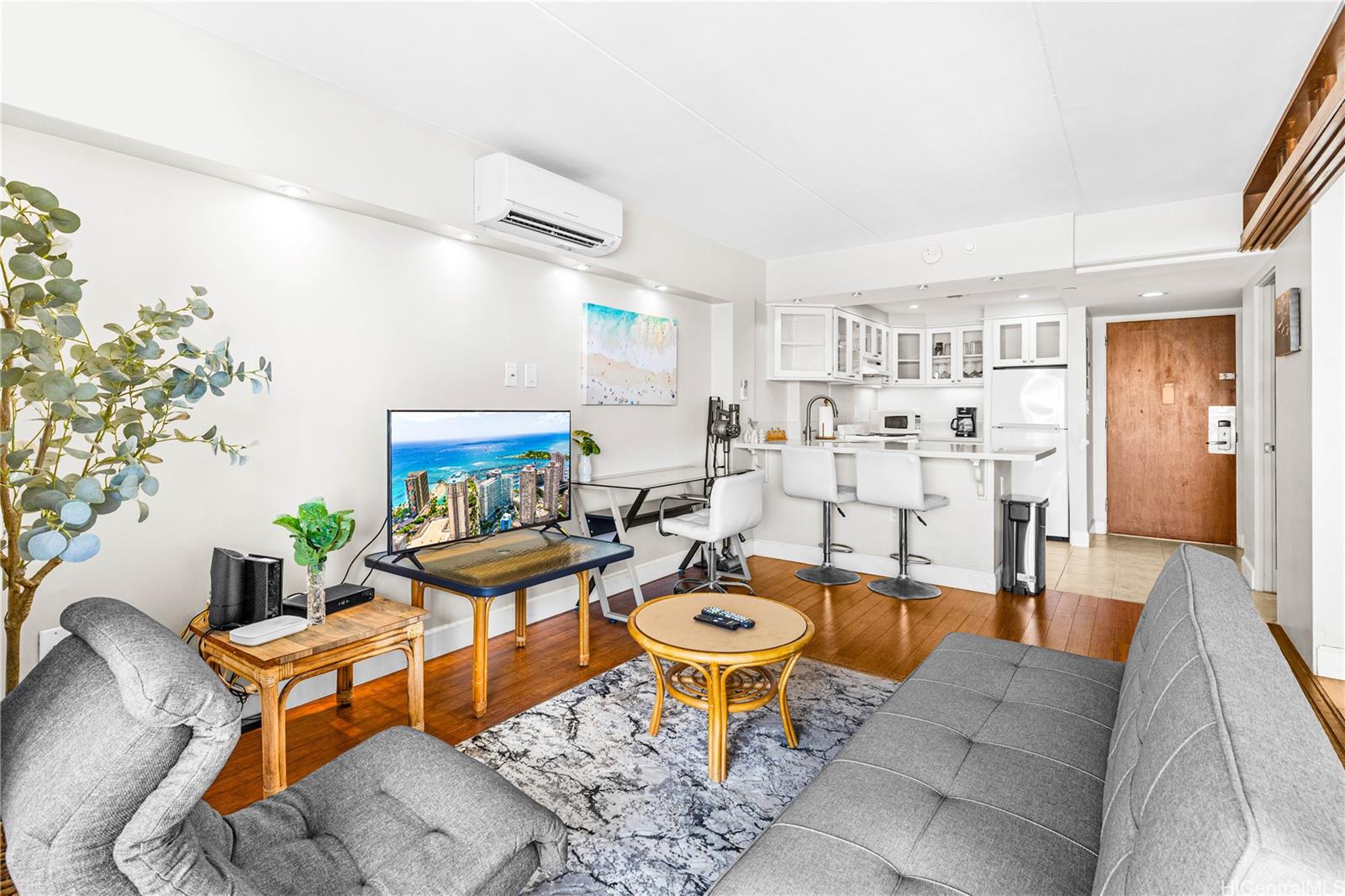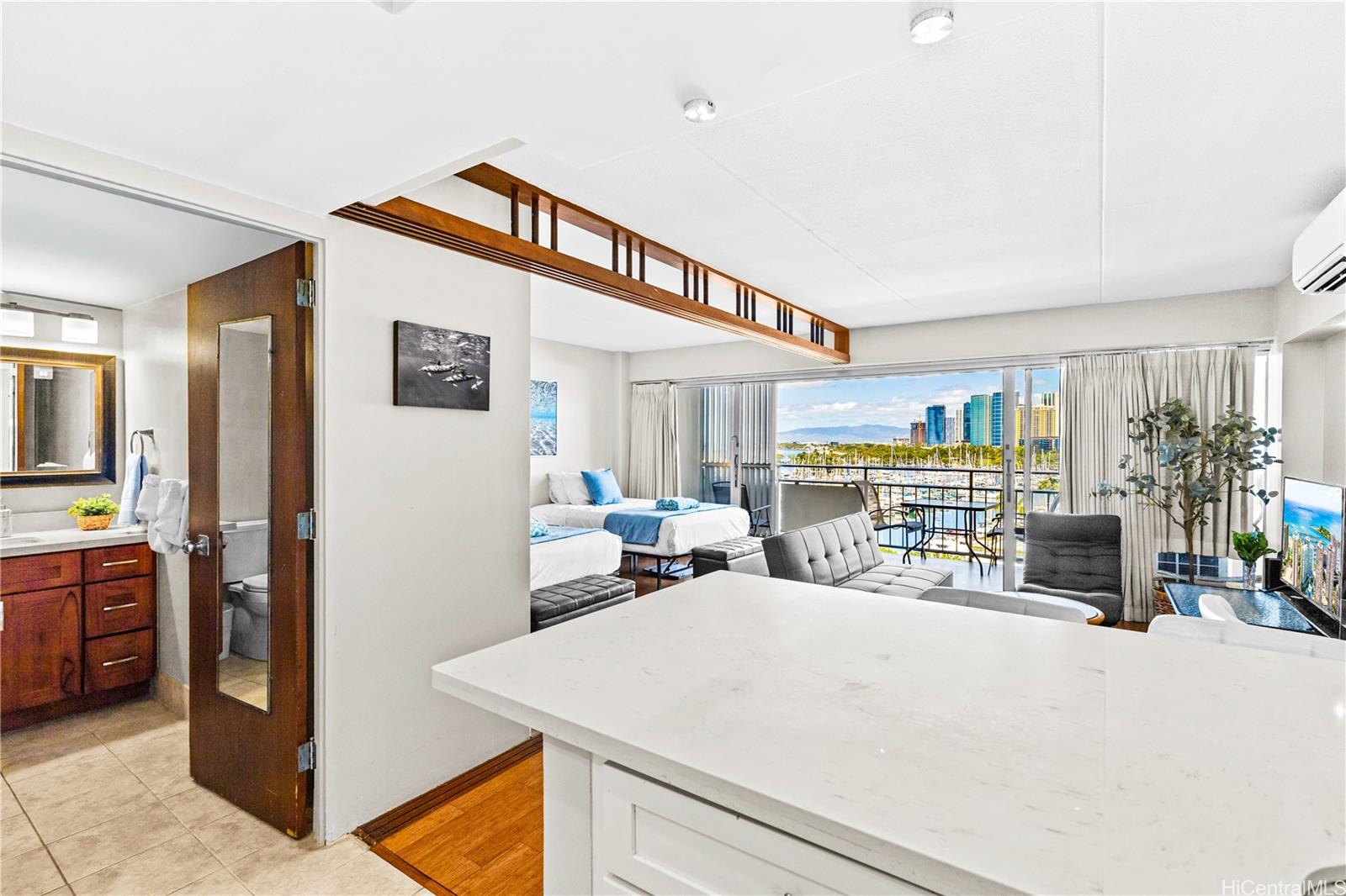 This beautifully remodeled one bedroom unit at the world-famous Ilikai features an open-concept layout with a large lanai with gorgeous panoramic views of the Ala Wai Harbor, Pacific Ocean, and beyond. The thoughtfully upgraded interior showcases a renovated kitchen and bathroom in 2016, along with abundant cabinetry, providing both modern style and exceptional storage rarely found in similar units. Enjoy resort-style amenities including two swimming pools, on-site dining, retail shops, and inviting lounge areas. Whether you’re seeking a primary residence, vacation retreat, or income-producing legal short term rental, this move-in-ready unit offers a rare opportunity to own in one of Honolulu’s most recognizable and desirable buildings. This unit also has no union restriction on the cleaning and therefore has more flexibility for an owner to use an outside management company. The Ilikai Hotel & Luxury Suites is at the gateway to Waikiki, just moments from world-famous Waikiki Beach, the Hilton Lagoon and the Friday night fireworks, Ala Moana Beach Park, and exceptional shopping and dining, the iconic Ilikai offers the ultimate island lifestyle.