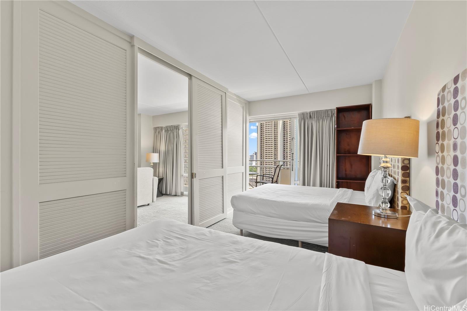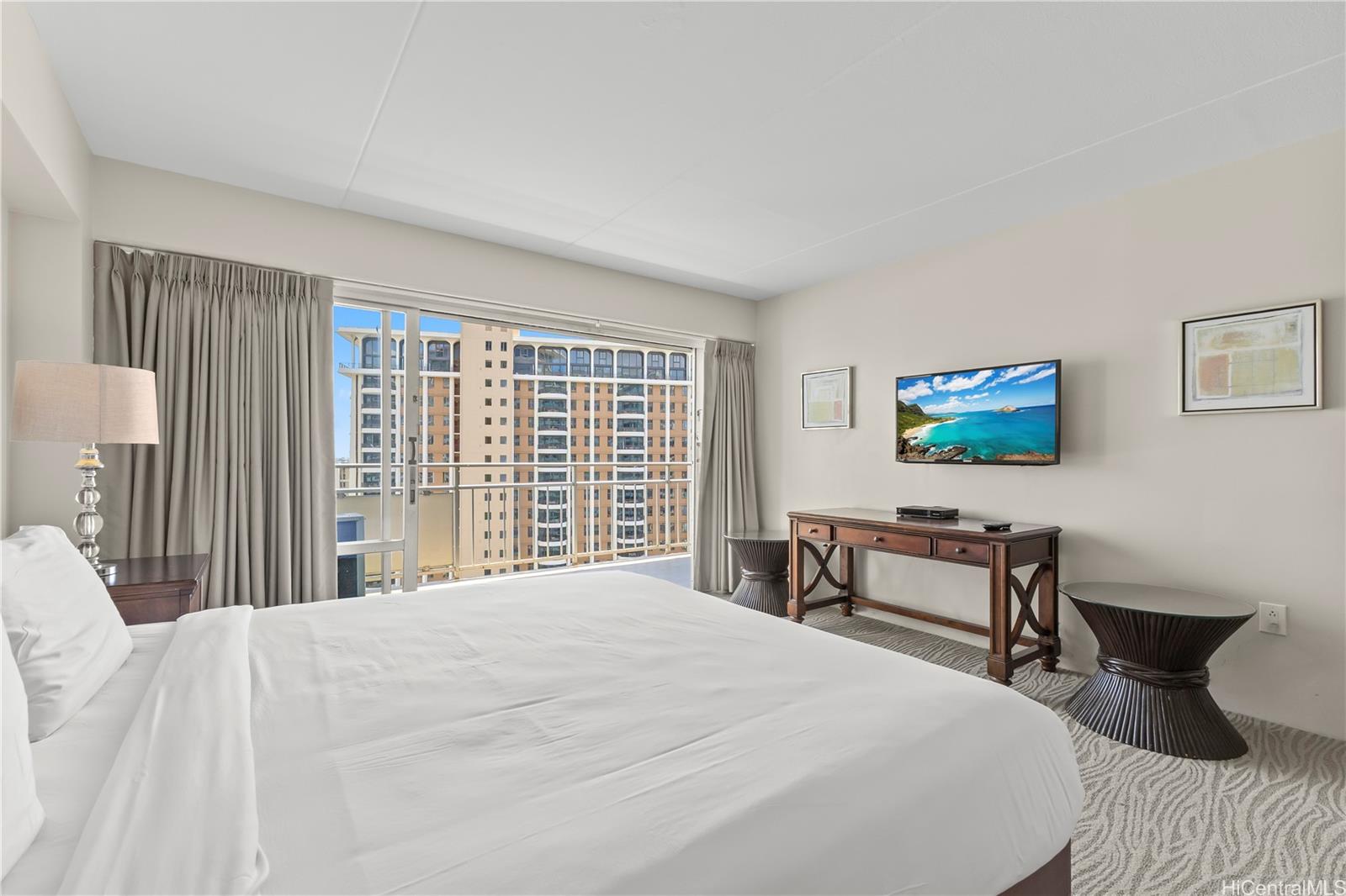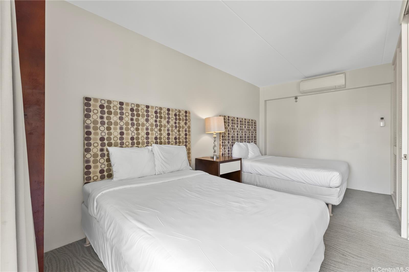 The Ilikai Hotel is one of the closest hotels to the beach on Oahu. It’s located within easy walking distance of both Waikiki and the Ala Moana shopping center. This unit is a 1,000-square-foot, two-bedroom condo that is fully furnished and offers a beautiful view of Diamond Head and the beach.