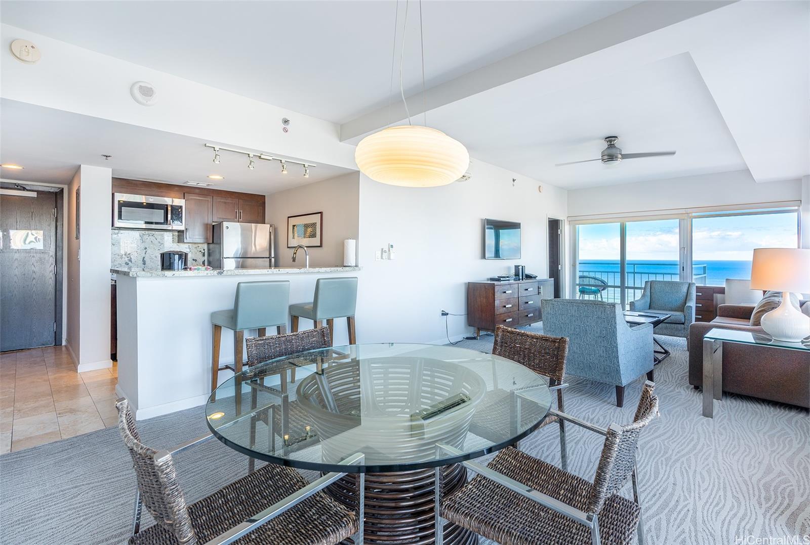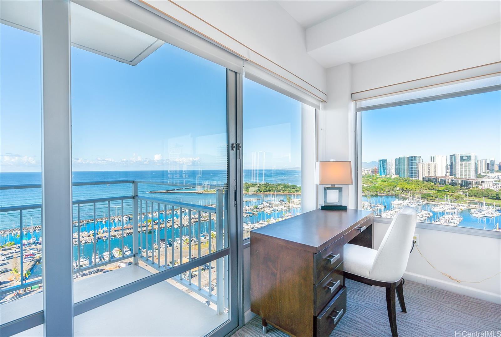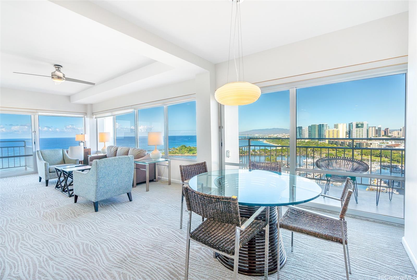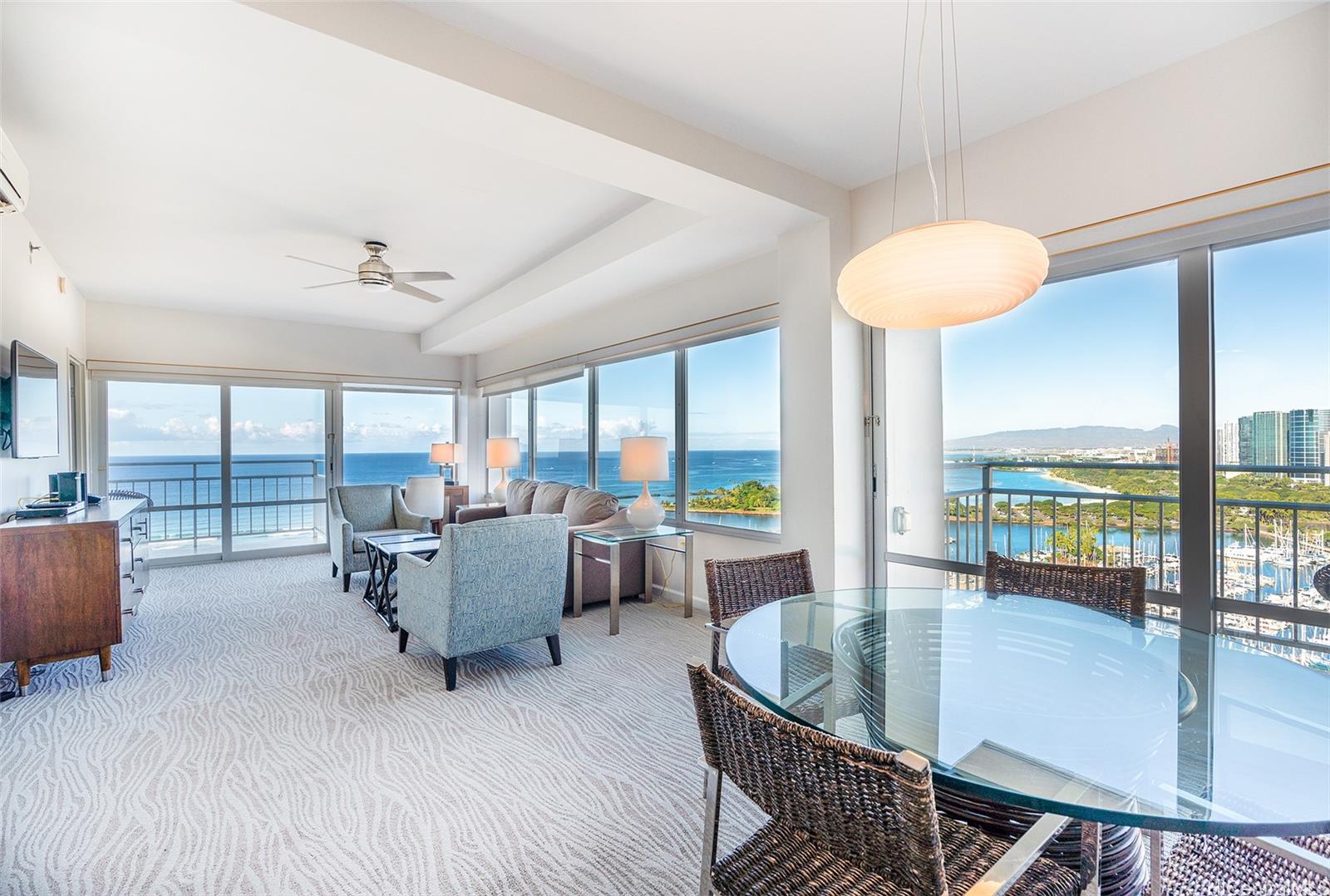 The Ilikai Apartment Building is one of the iconic and legendary hotels in Waikiki. Fully remodeled in 2014, this two bedroom, twobathroom is preferred at the ocean front-corner unit of the building along the Ocean and Marina side. Unit offers a spacious floor plan with large lanai too. Panoramic views of ocean, marina and beautiful sunset. Fully furnished. Currently in the Aqua-Aston Ilikai Hotel Pool Program. This unit is move in ready or ready to be rented out. Enjoy the Waikiki lifestyle!