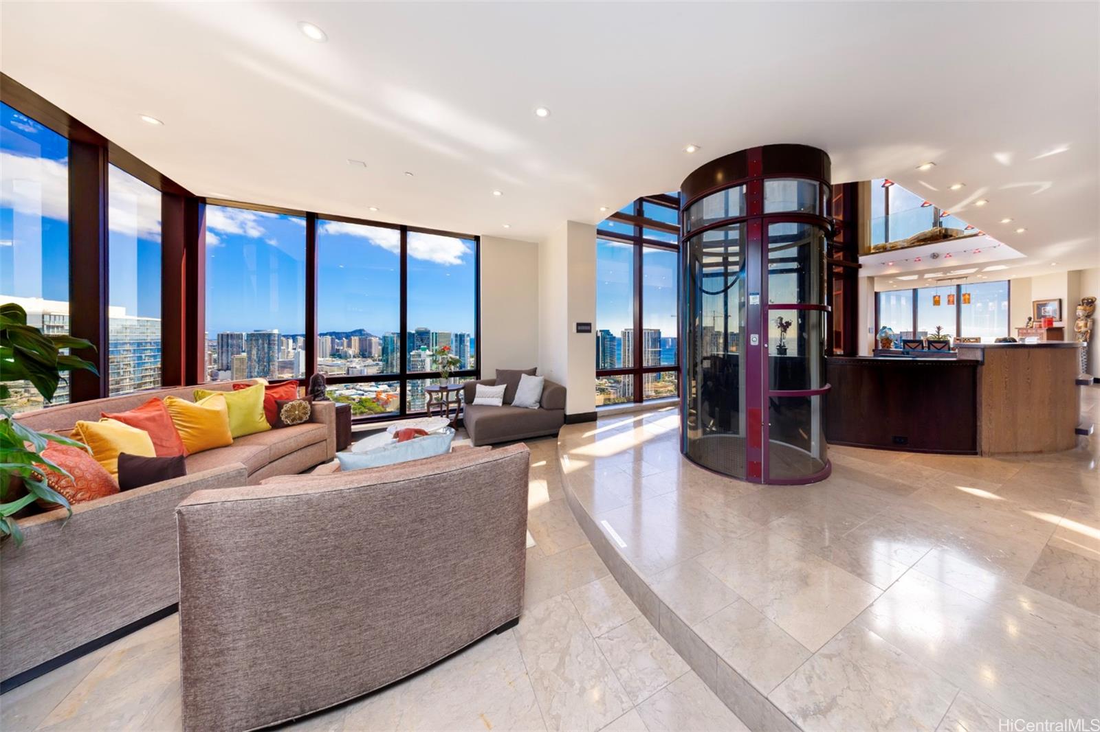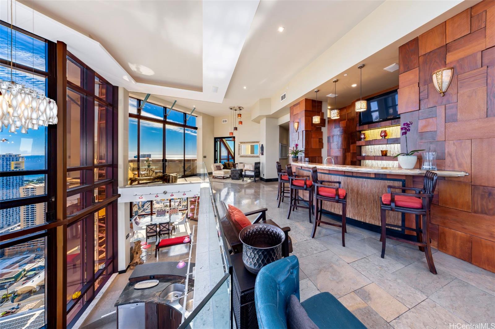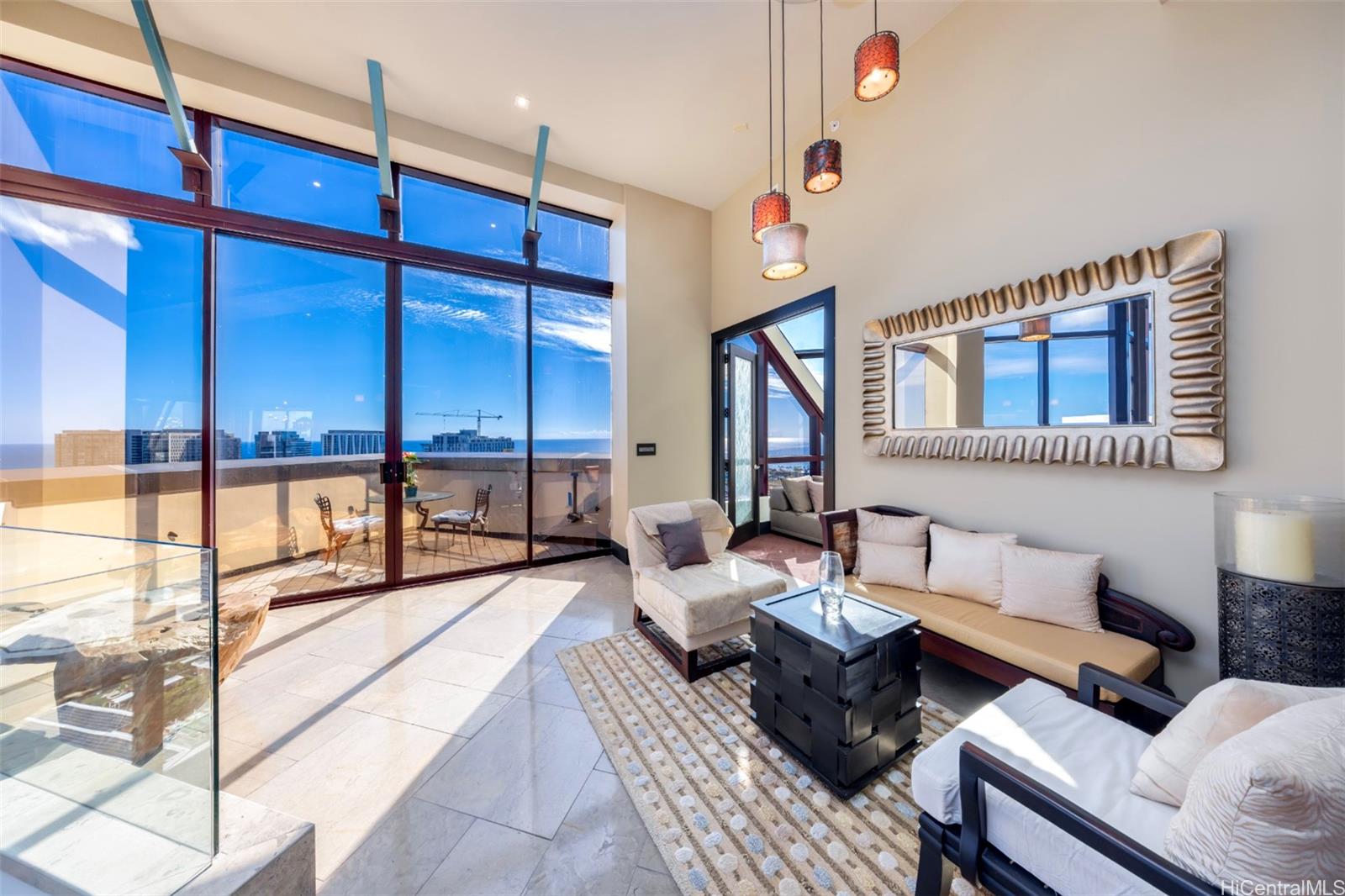 Dramatic, sophisticated, and undeniably breathtaking: experience the Pinnacle of Penthouse living in this architecturally stunning two-story residence. Spanning over 3,800sqft of living space, this residence redefines elegance with soaring 23-foot ceilings framed by floor-to-ceiling windows, dramatic design elements, and impeccable attention to detail. The open-concept primary living space combining living, kitchen, and dining areas creates an unparalleled setting for entertaining, while expansive panoramic windows fill the space with breathtaking views stretching from the Koolau mountains, to Diamond Head, to the Pacific Ocean. The penthouse features a central gourmet kitchen anchoring the main living space, three generously sized bedrooms each with its own bath, flexible den and dining spaces, a full bar gracing the upper level while a convenient wet bar serves the entry level, plus thoughtfully curated details throughout that create a seamless blend of form and function. This stunning penthouse is more than a residence — it’s an expression of refined living. Don’t miss the opportunity to own this one-of-a-kind property at Imperial Plaza Penthouse #3901.