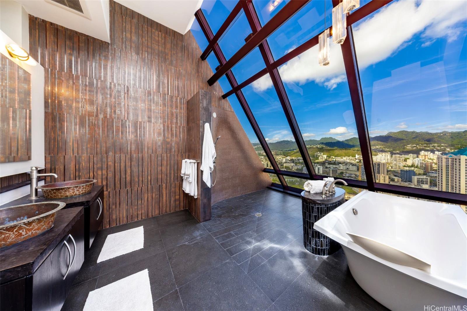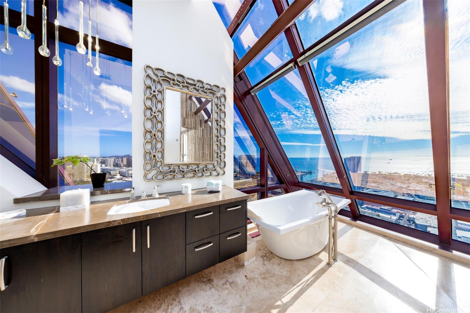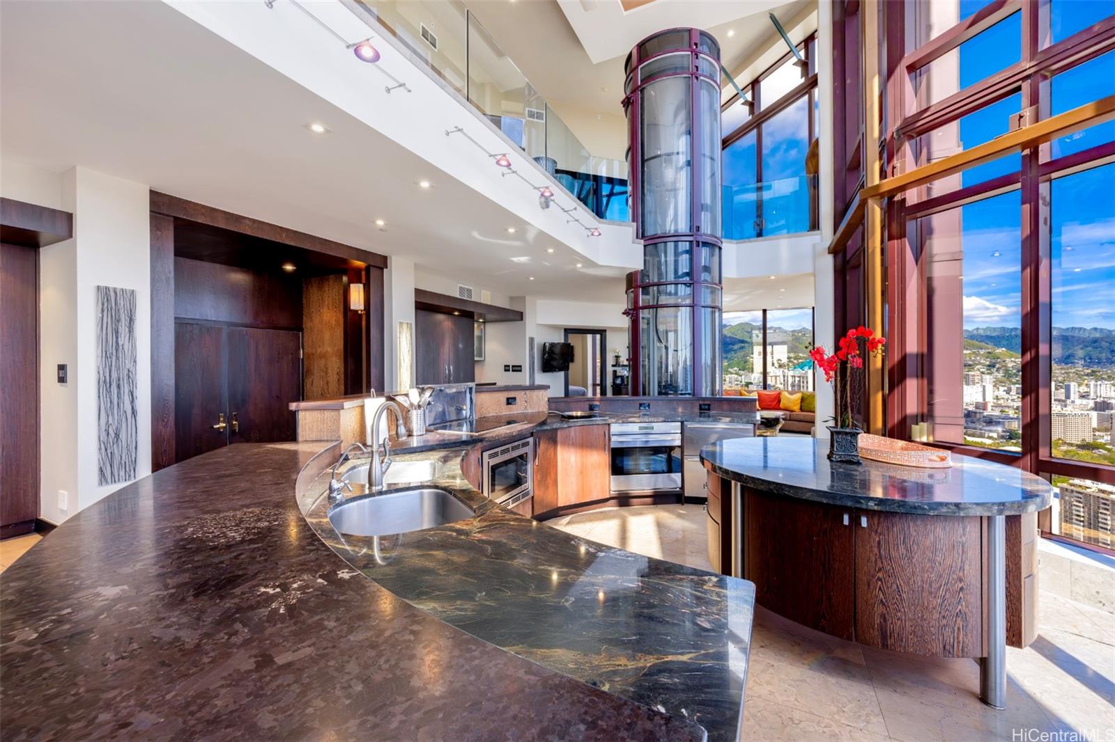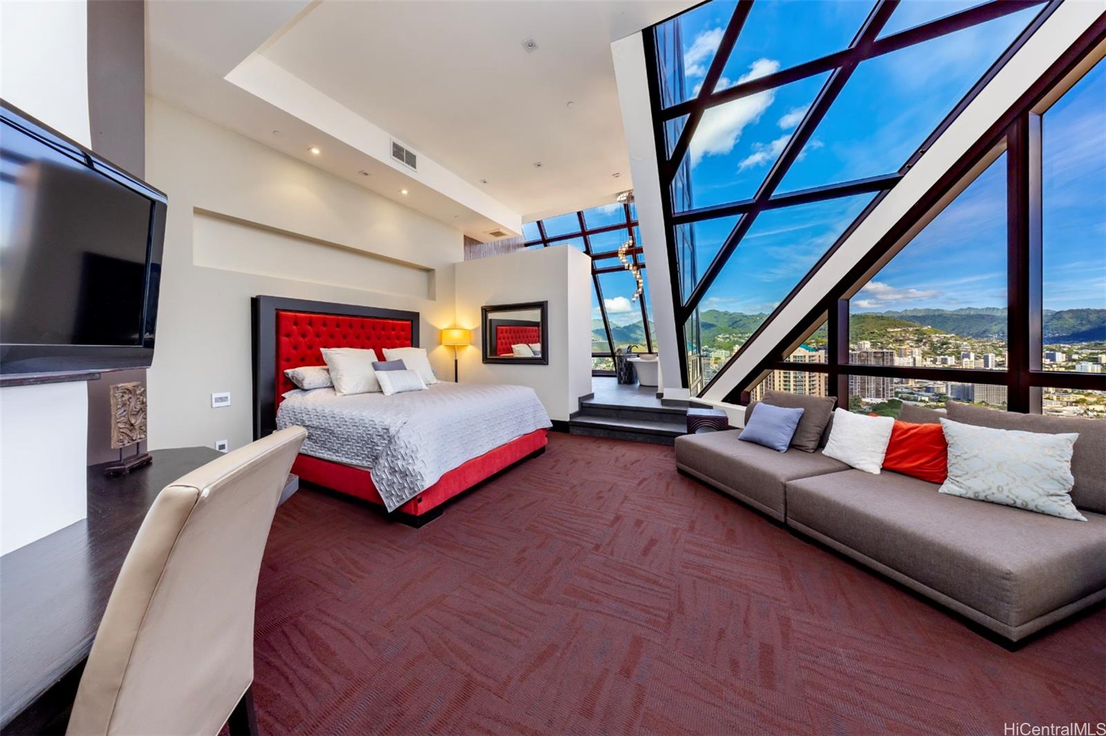 Dramatic, sophisticated, and undeniably breathtaking: experience the Pinnacle of Penthouse living in this architecturally stunning two-story residence. Spanning over 3,800sqft of living space, this residence redefines elegance with soaring 23-foot ceilings framed by floor-to-ceiling windows, dramatic design elements, and impeccable attention to detail. The open-concept primary living space combining living, kitchen, and dining areas creates an unparalleled setting for entertaining, while expansive panoramic windows fill the space with breathtaking views stretching from the Koolau mountains, to Diamond Head, to the Pacific Ocean. The penthouse features a central gourmet kitchen anchoring the main living space, three generously sized bedrooms each with its own bath, flexible den and dining spaces, a full bar gracing the upper level while a convenient wet bar serves the entry level, plus thoughtfully curated details throughout that create a seamless blend of form and function. This stunning penthouse is more than a residence — it’s an expression of refined living. Don’t miss the opportunity to own this one-of-a-kind property at Imperial Plaza Penthouse #3901.
