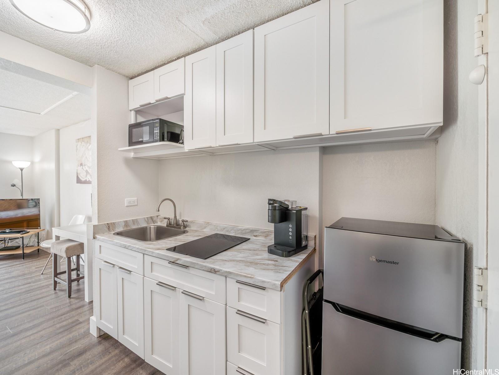 RARE LEGAL SHORT-TERM RENTAL! Prime location at the mouth of Waikiki and close to Ala Moana Shopping Center, Magic Island, and many shops/restaurants within walking distance! Take advantage of this fully furnished studio at the Inn on the Park Building, which comes with great amenities, including a condo pool, two community laundry rooms (one for residents and one for guests), a recreational area, and BBQ grills. The unit has a kitchenette and also an open lanai that’s overlooking the pool. Make great income from renting out for daily vacation rentals or even enjoy living in it yourself!