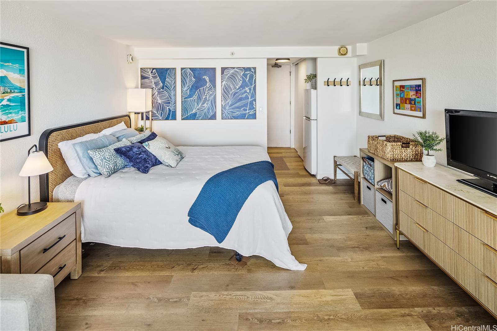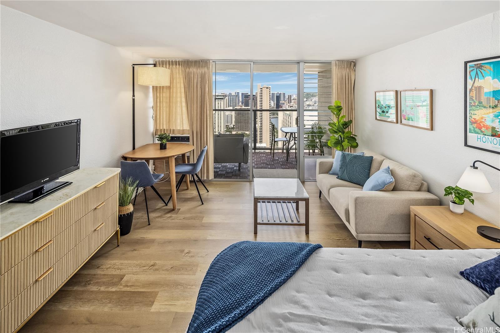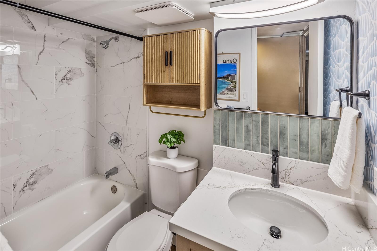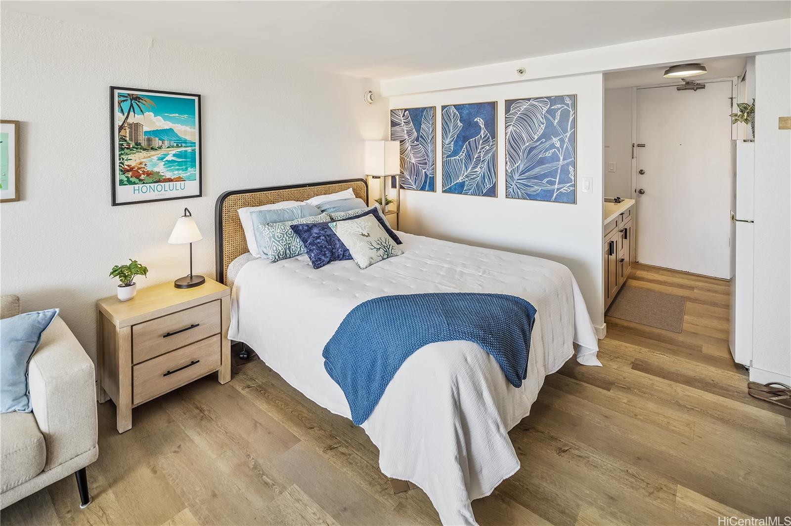 Perched on the 39th floor in the desirable Island Colony, Unit 3916 offers ocean, city and marina views and a beautifully refreshed interior. This newly renovated studio is thoughtfully designed to maximize space, light, and comfort, featuring modern finishes and a clean, contemporary aesthetic. Fully furnished and completely turnkey, this unit is ready for immediate enjoyment or rental use. The open layout flows seamlessly to a private lanai where you can take in stunning views of the Pacific Ocean and city skyline—perfect for relaxing mornings or sunset evenings. Ideal as a primary residence, vacation getaway, or investment property, Unit 3916 combines convenience, style, and breathtaking scenery in one of Waikiki’s most sought-after buildings. Island Colony is located in the center of Waikiki, just two blocks from world-famous Waikiki Beach and a stone’s throw from International Marketplace, Royal Hawaiian Shopping Center, night life, shopping and restaurants galore. Building amenities include a swimming pool, hot tub, sauna, fitness room, barbecue area, community laundry, sundry store and 24-hour security desk. Check out the virtual tour!