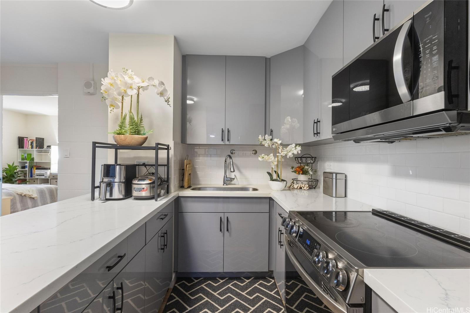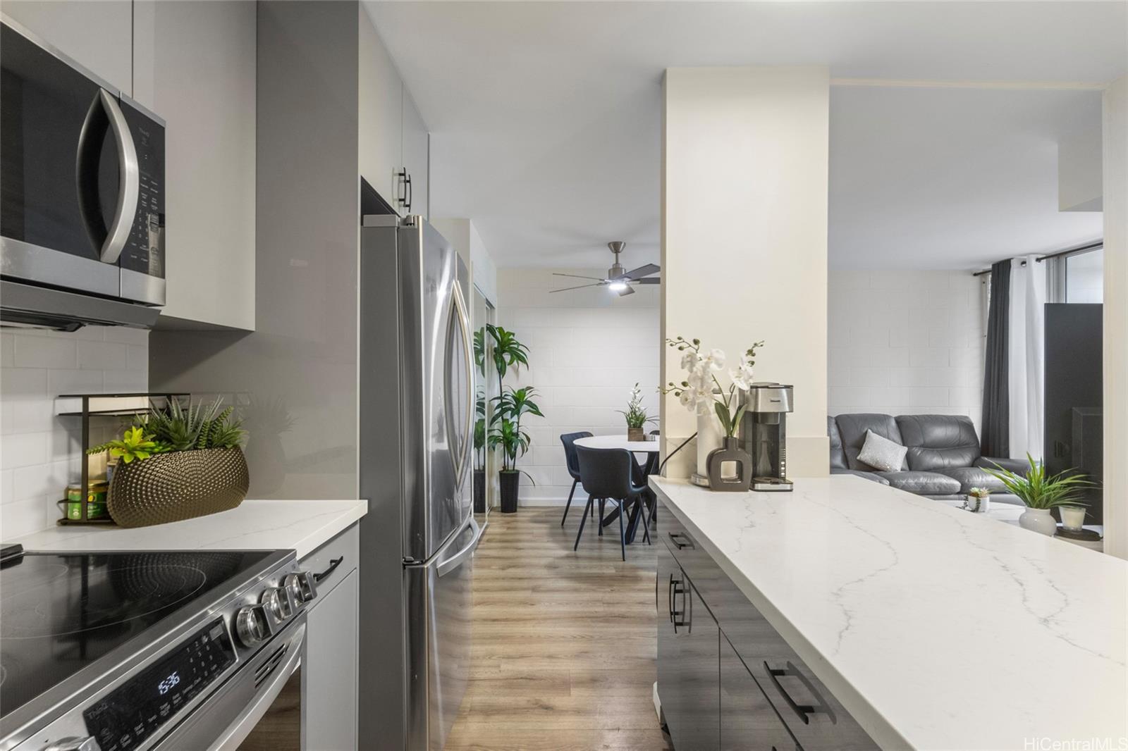 初めての住宅購入者や投資家にとって絶好の機会です。 プナホウ校やハワイ大学に近く、高速道路へのアクセスも便利な立地です。 この入居可能なユニットは、新しいキッチン、ビニール板フローリング、内装の塗装が施され、ポップコーン天井も撤去されるなど、全面的に改装済みです。 建物のマウカ側(山側)から都市の景色をお楽しみください。 効率的な間取りには、2つの寝室、ラナイ、そしてユニット内洗濯機・乾燥機が含まれています。 セキュリティ強化のため、屋根付きゲート付き駐車場付き。 学校、高速道路、病院に近く、手入れの行き届いた住まいを求めるオーナー居住者にも投資家にも理想的な立地です。 .