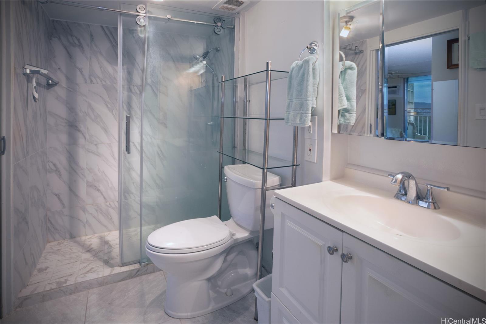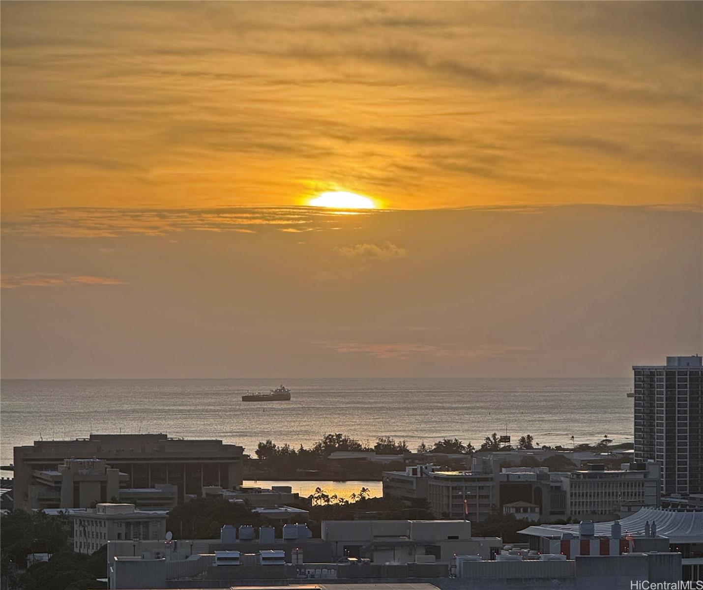 Beautiful studio condo in the heart of Honolulu. Offering city living with convenience and views of the ocean and way out to the WestWaianae Mountains. The unit features an open layout with a remodeled kitchen. Granite counters and wooden cabinets throughout. Full bathroom and walk-in closet add to the appeal. Enjoy your own private lanai with storage while taking in the sweeping views of the Honolulu city lights. The building includes a pool for residents and is located just minutes from shopping, dining, and entertainment. Walking distance to Queens Medical Center