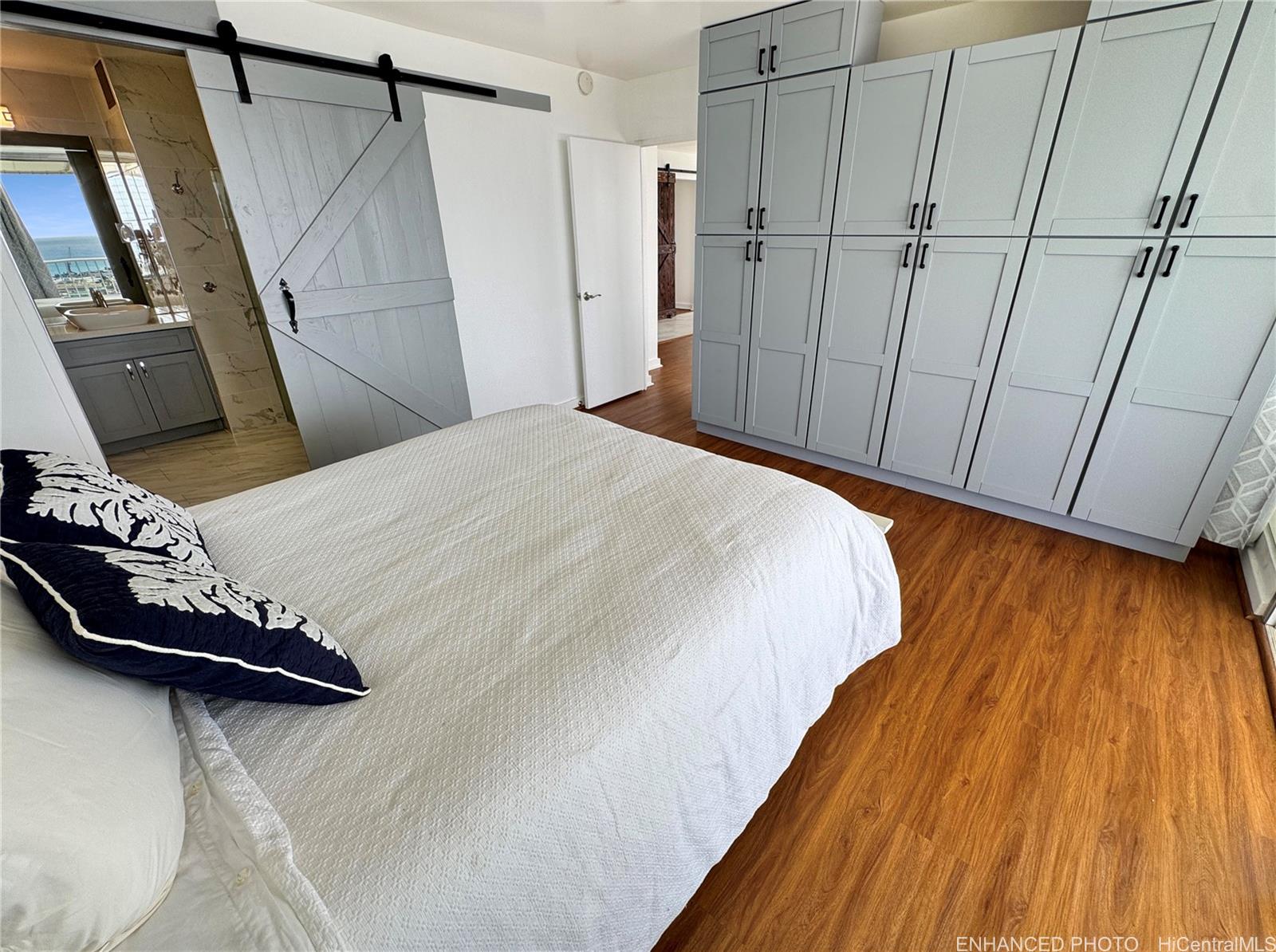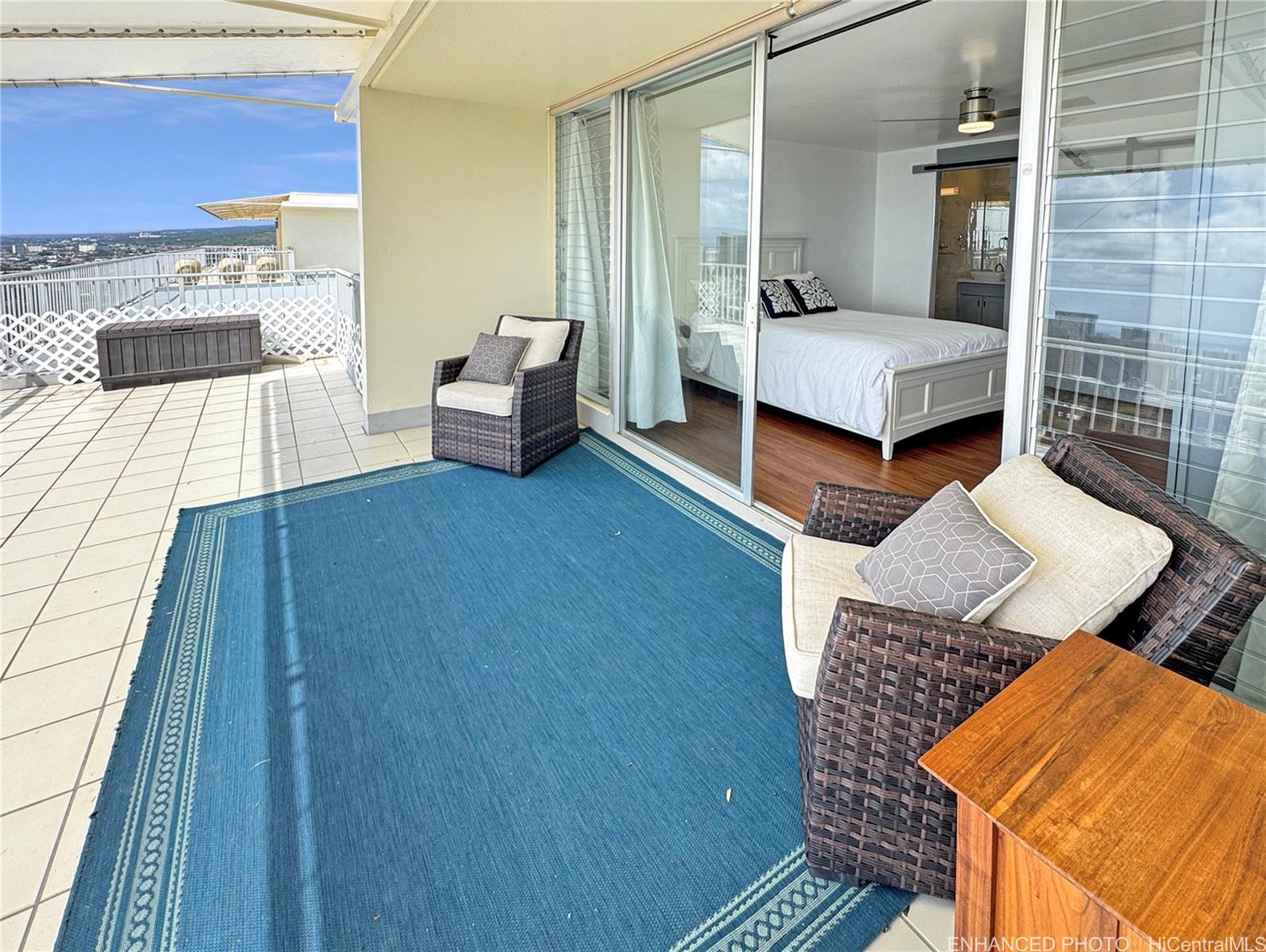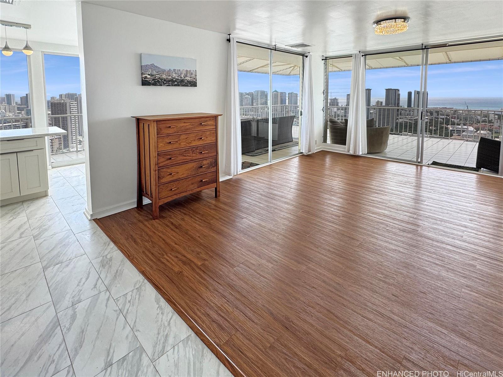 カ・ハレ・モイ「王の住まい」へようこそ。角部屋の一番奥に位置するプレジデンシャル・ペントハウスからは、街と海のパノラマビューが広がります。 わずか2戸のみの一戸建てペントハウスの一つであるこの希少な物件は、卓越したプライバシー、ラグジュアリー、そして真の屋内と屋外の生活空間を提供します。 明るく広々としたリビングエリアに入ると、息をのむような眺めが広がっています。 ガラス壁の向こう側、広大な900平方フィートの空間へ足を踏み入れよう。 フィート ラナイには周囲を覆う日除け付き—おもてなしや食事、また息をのむような夕日を眺めるのに最適です。 シェフ仕様のキッチンには、美しいキャビネット、クォーツカウンター、高級家電パッケージ、そして屋外屋根付きダイニングエリアへとシームレスにつながる朝食バーが備わっています。 主寝室には素晴らしい眺望、特注の造り付け収納、専用パティオ、専用バスルームが備わっています。 追加の2つの寝室にはフルサイズのクローゼットが備わり、共用のホールバスを利用します。 セントラルエアコン、セラミックタイル、高級ビニール板フローリングを全室に完備。 このペット同伴可能な建物には、セキュリティ付きエレベーター、リゾート風のプール、屋根付き駐車場2台分が備わっています。 主要なショッピング、飲食店、娯楽施設、高速道路へのアクセスに便利な立地です。 管理組合費には、高速インターネット、給湯、ケーブルテレビ、下水道、水道、現地管理、警備が含まれます。 .