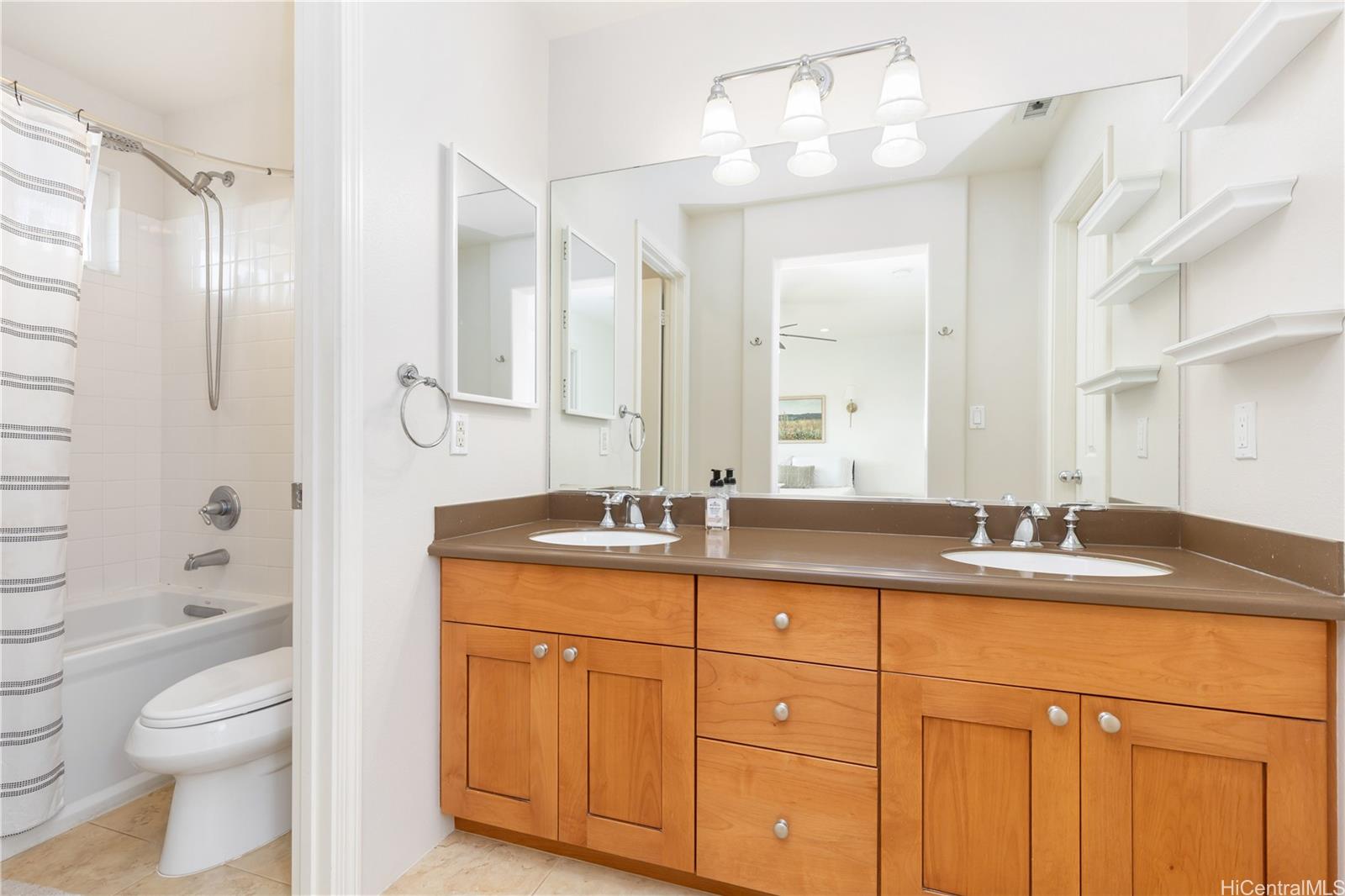 VA ASSUMABLE available to eligible VA buyers! Discover this well-maintained townhome in the sought-after Ka Makana @ Hoakalei community. On the ground floor, you’ll find a bedroom with a full bathroom, as well as the kitchen, dining, and living areas. Step outside to your private covered lanai and yard, which lead to a two-car enclosed garage and a separate laundry room. A walking/jogging path is conveniently accessible right from your front door. Inside, enjoy the comfort of central AC, while the new vinyl plank flooring throughout the living, dining, and kitchen areas adds a modern touch. Upstairs, two additional bedrooms each feature their own ensuite bathrooms, with the primary bathroom offering dual vanity sinks and a walk-in closet. This home is located minutes from Wai Kai Lagoon, Ka Makana Ali‘i Mall, shopping centers, restaurants, banks, and grocery stores. Monthly fees cover Spectrum Internet, Cable, and Phone services, along with sewer/water, common area maintenance, and access to the swim club/fitness center. Ka Makana at Hoakalei also offers multiple parks and green spaces, perfect for outdoor recreation.