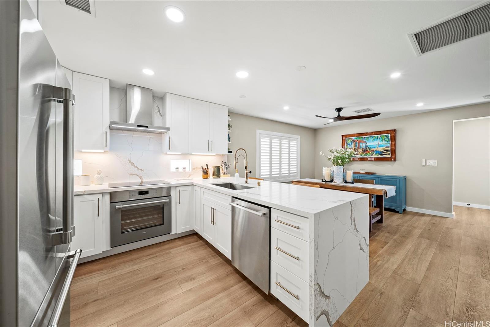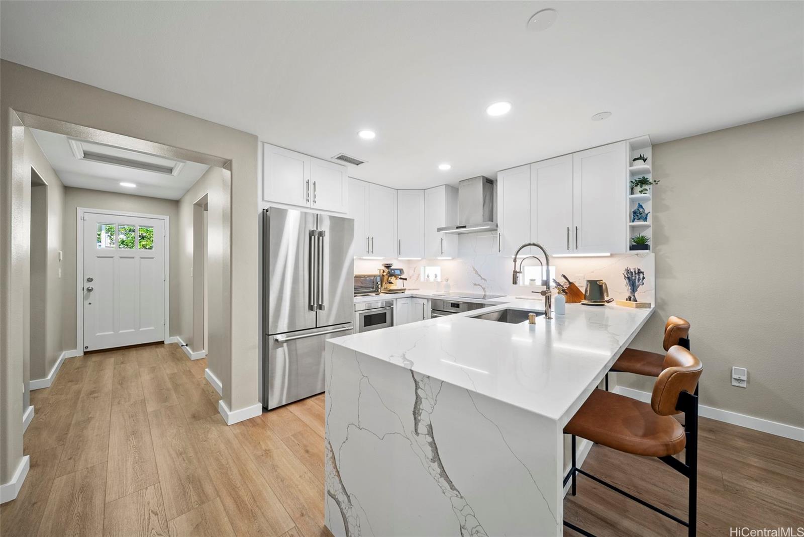人気のホアカレイ・カマカナコミュニティで島暮らしを体験してください。 この改装済みの平屋建て3ベッドルーム・2バスルーム住宅は、購入後に行われた大規模な改修とカスタム改造が特徴です。 快適性を追求した設計で、広幅板のラグジュアリービニールフローリング、デザイナー照明、そして明るいオープンコンセプトのレイアウトが特徴。おもてなしに最適な住まいです。 シェフ仕様のキッチンには広々としたウォークインパントリー、十分な収納スペース、そして誘導加熱コンロを備えた高級サーマドール製家電が備わっています。 各寝室は独立した空調システムと特注のクローゼットを備えたプライベートな空間です。 完成した2台収容ガレージには、エポキシ樹脂床、埋め込み照明、EV充電器に加え、3台分の追加駐車スペースが設けられています。 省エネ意識の高いアップグレードには、リース契約の太陽光パネル20枚、テスラ製バッテリー、および太陽熱温水器が含まれます。 外装の特徴には、フルレインガターと自動化された前庭・裏庭の散水システムが含まれます。 リゾートスタイルのアメニティをお楽しみください。プール、フィットネスセンター、ジャグジー、テニス・ピックルボールコートに加え、スペクトラムケーブルとインターネットが利用可能です。 理想的な立地で、ワイカイのラインアップやチャンピオンシップゴルフコースまで数分。この住宅は、ラグジュアリー、効率性、そして島暮らしを融合させています。