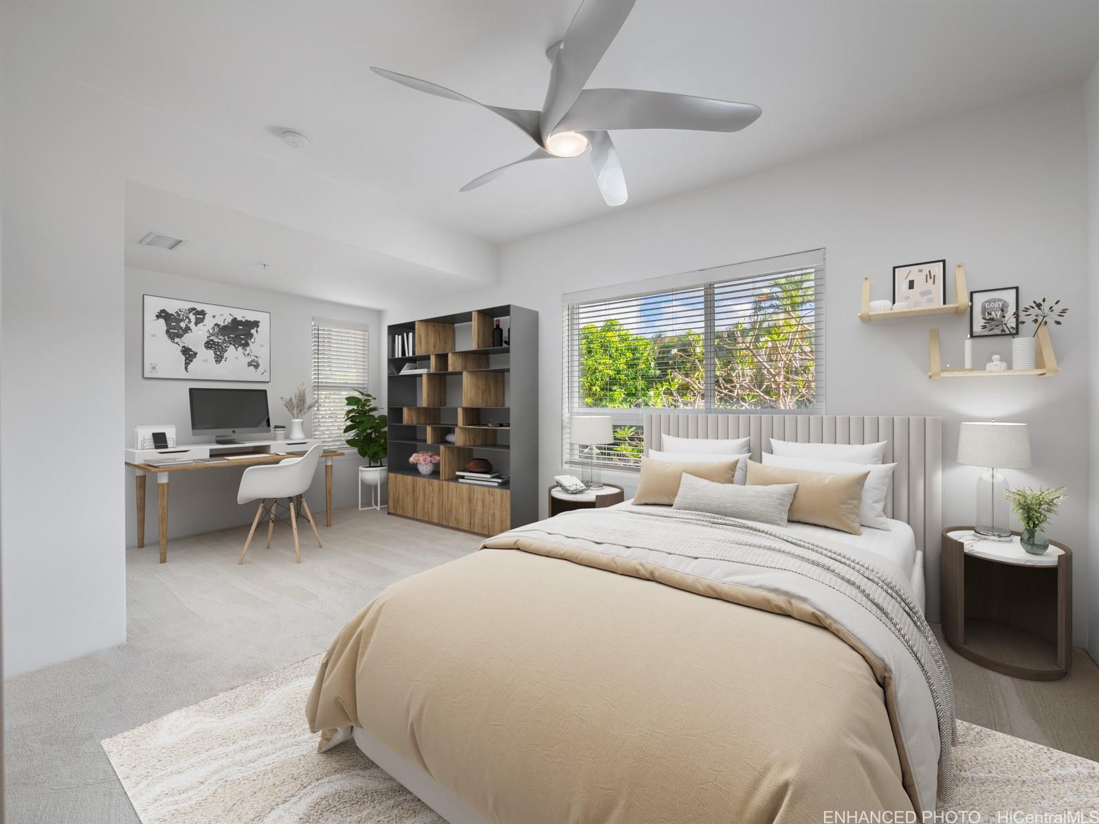 Aloha and Welcome Home to this pretty Jewel Box of Ka Malanai at Kailua on the Windward side of Oahu. This special 1 bedroom / 1 bath / 2 parking unit has been freshly painted and upgraded with new appliances and new custom living room slatted blinds. The carpeting in the bedroom with nook and walk-in closet are brand new as well. The extra parking spot is a highly valued perk. Spot # 74 is covered and located at the bottom of the exit stairs. Spot # 82 is uncovered and near the surfboard storage area and the “back door” entrance to Target.The treats that make Kailua Town so special are all nearby. The Kailua Rec Center & Pool is across the baseball field and the magic ofWorld Famous Kailua Beach is a bike ride away. Photos are virtually staged. This unit was previously a rental bringing in $3,000/mo.Maintenance fees are very low at $549/mo. Come explore the secrets of this special location. Do call listor for private showings or visit our Sunday Open Houses from 2-5 p.m. This is the only one-bedroom available; do not wait!!!