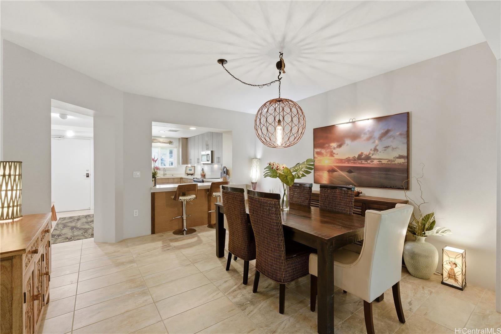 Enjoy island living in this beautifully upgraded 2 bedroom, 2 bathroom condo in the heart of Kailua with 2 full size covered parking stalls. This bright, open pet-free home features central AC, stainless steel appliances, soft close cabinets, upgraded tile flooring, backsplash, pantry, under-cabinet lighting, ceiling fans, dimmers, upgraded light fixtures, custom wallpaper, and high end carpet with upgraded pad. The home is professionally decorated and furniture is negotiable.The spacious primary suite includes a large closet and spa inspired bath with a soaking tub and a separate shower. A full size washer and dryer and generous storage add convenience. Enjoy Kailua’s indoor-outdoor lifestyle on the large lanai overlooking a beautiful garden. Pet friendly community allowing up to 2 pets with no size restriction. Amenities include BBQ areas, landscaped courtyards, secure bike & board storage, guest parking, and security patrol. HOA includes Spectrum cable, internet, water, sewer, and other common expenses. Located minutes from Kailua Beach Park, Whole Foods, shops and restaurants of Kailua Town, with a convenient gate access to Target. This one is a gem. Furnishings negotiable.