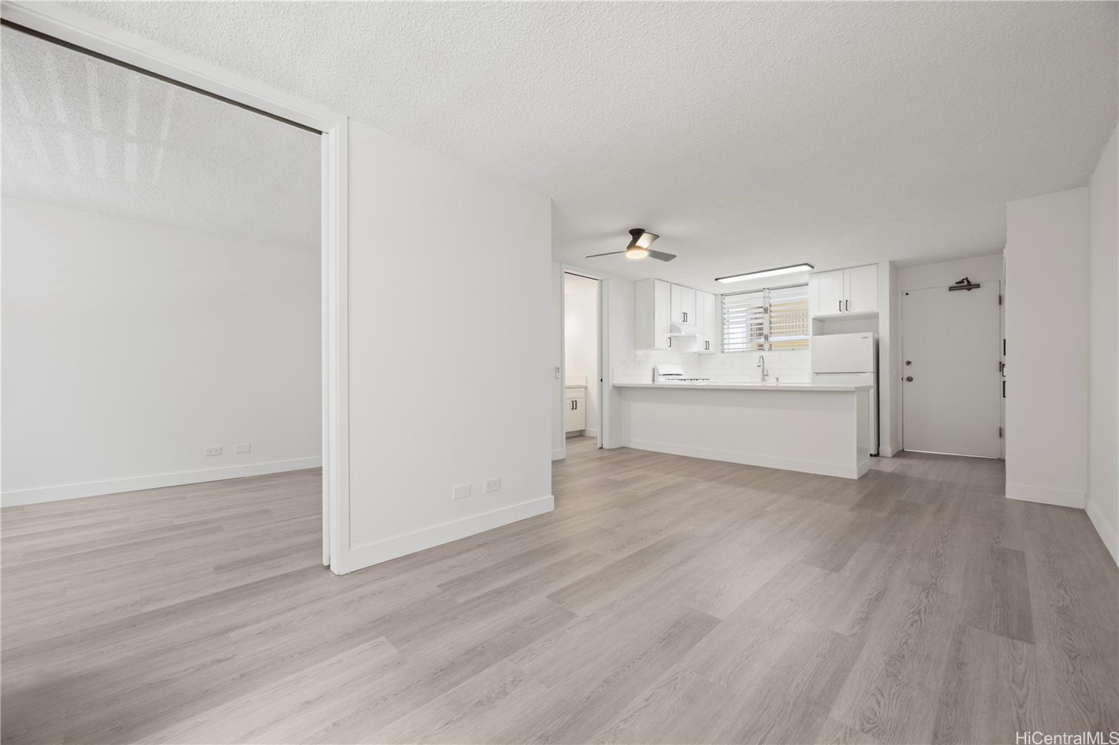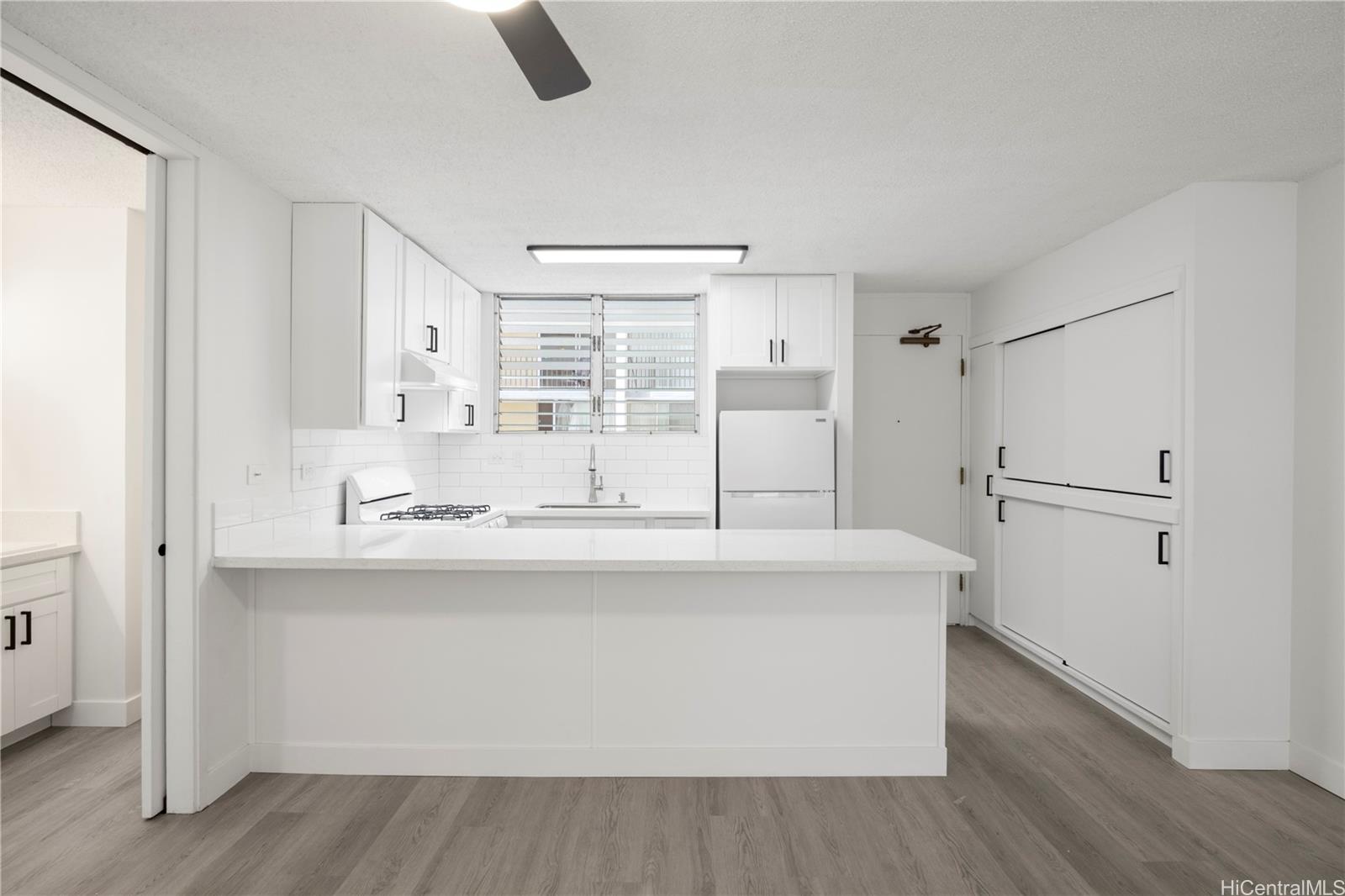 Newly renovated condominium in a prime location in the heart of Honolulu! This move-in ready unit features a brand-new kitchen with quartz countertops, modern cabinetry, and new appliances. Enjoy luxury vinyl flooring throughout, providing both style and durability, along with air conditioning for year-round comfort. The bathroom has been tastefully updated with a new vanity and contemporary finishes.Located in a well-managed, low-maintenance building offering great amenities including a swimming pool and community laundry. Maintenance fees conveniently include all utilities, adding exceptional value and ease of ownership. This unit also includes one open parking stall.Conveniently situated just minutes from Ala Moana Shopping Center, popular restaurants, grocery stores, and everyday essentials. Ideal for first-time homebuyers or investors seeking a centrally located opportunity. One or more photos have been enhanced.