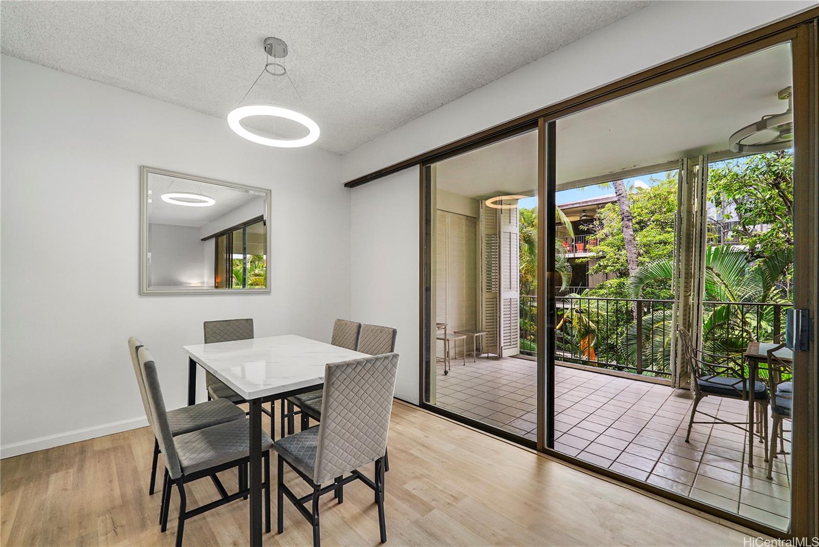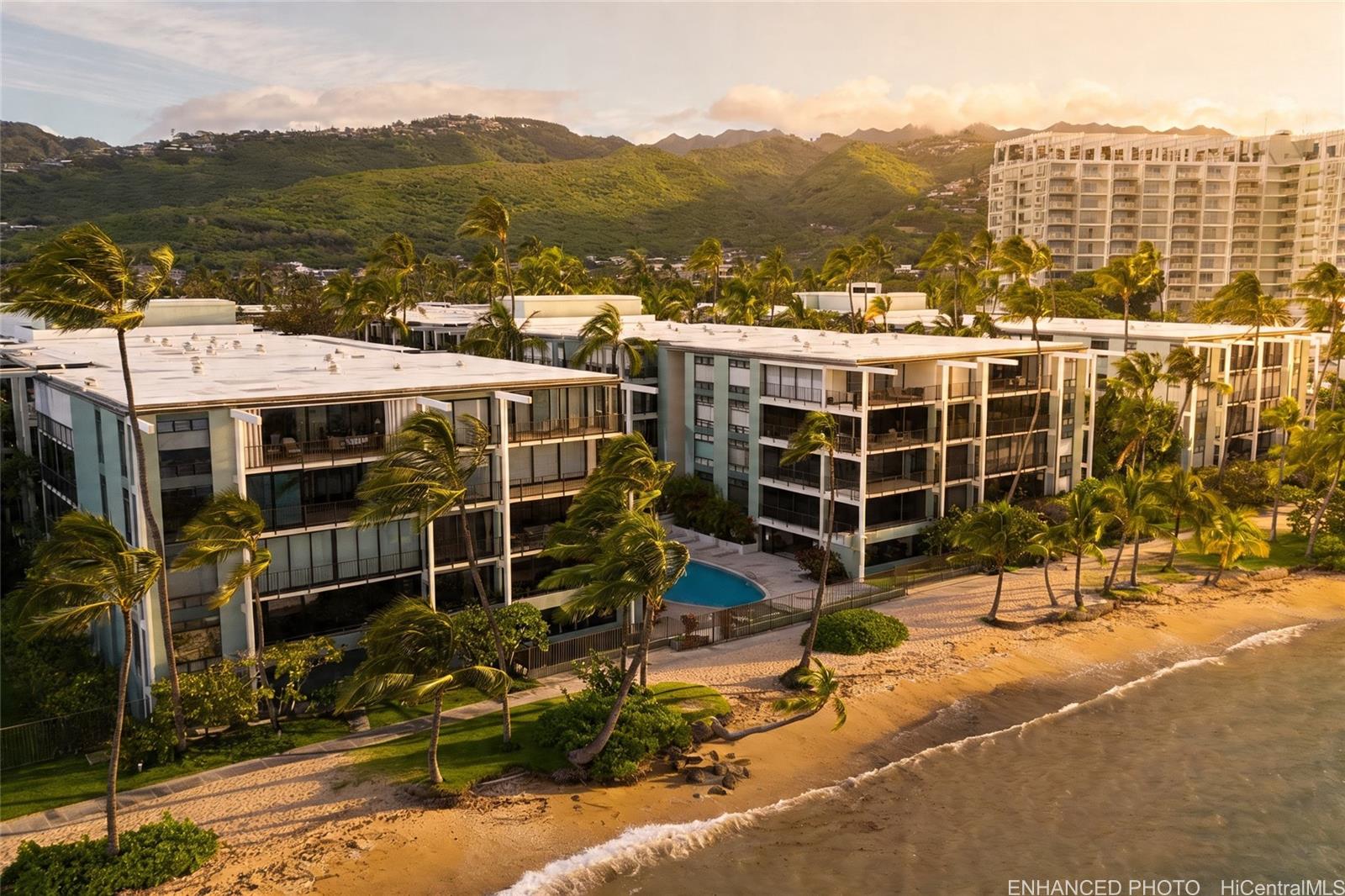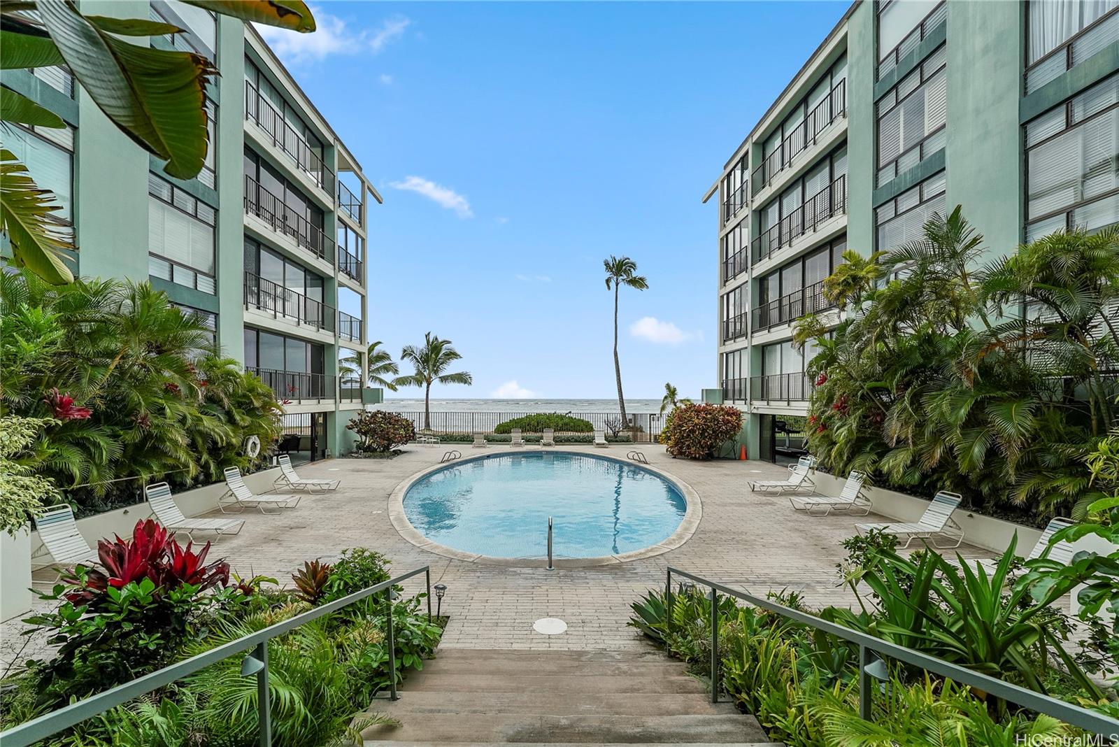 Welcome to beautiful Kahala Beach! The vacation destination many people dream of, can be your home! You will fall in love with the beautifully landscaped grounds, koi fish ponds, and ocean views throughout. Enjoy lounging by the pool with the sound of the ocean, use the gym, relax in the library or watch the sunset on the beach. This renovated unit comes with upgrades that include luxury vinyl flooring in the living room, kitchen and bedrooms. Each room is light filled with garden views. The bathrooms are also spacious and renovated. The lanai is the perfect place to dine and entertain overlooking the garden greenery. This lovely unit is fully furnished and move in ready. Feel like you’re on vacation every day here at Kahala Beach! The Leasehold expires July 15th 2027, with no fee options.