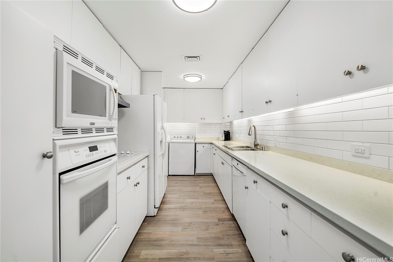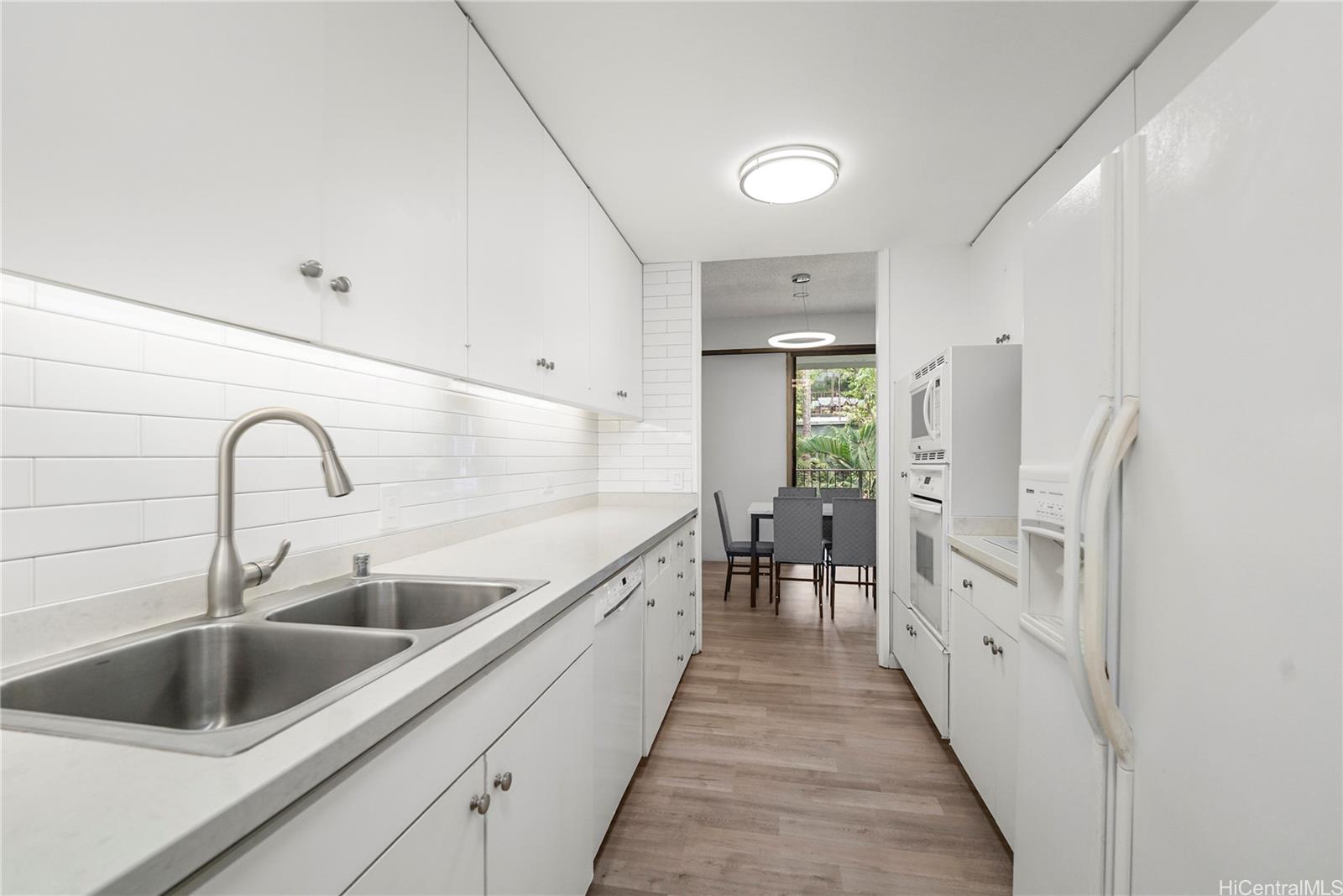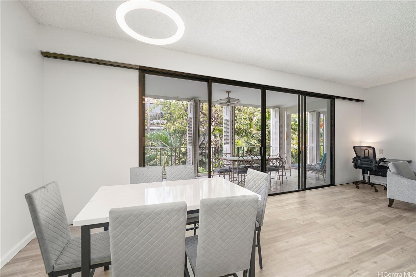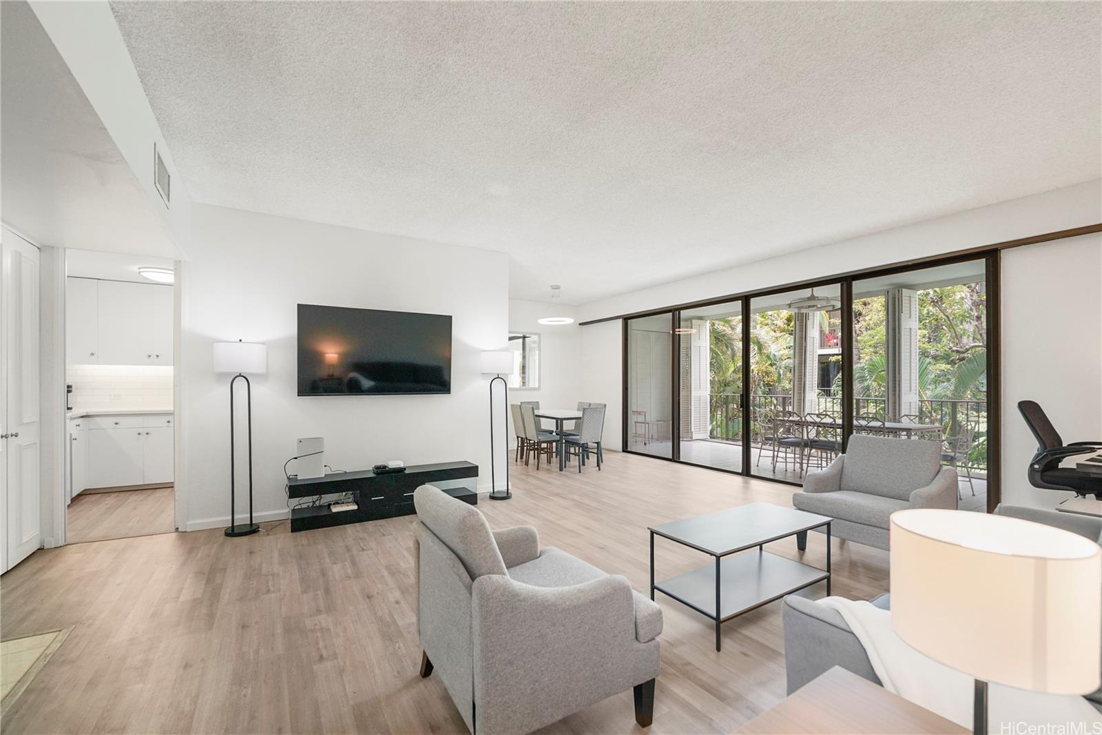 Welcome to beautiful Kahala Beach! The vacation destination many people dream of, can be your home! You will fall in love with the beautifully landscaped grounds, koi fish ponds, and ocean views throughout. Enjoy lounging by the pool with the sound of the ocean, use the gym, relax in the library or watch the sunset on the beach. This renovated unit comes with upgrades that include luxury vinyl flooring in the living room, kitchen and bedrooms. Each room is light filled with garden views. The bathrooms are also spacious and renovated. The lanai is the perfect place to dine and entertain overlooking the garden greenery. This lovely unit is fully furnished and move in ready. Feel like you’re on vacation every day here at Kahala Beach! The Leasehold expires July 15th 2027, with no fee options.